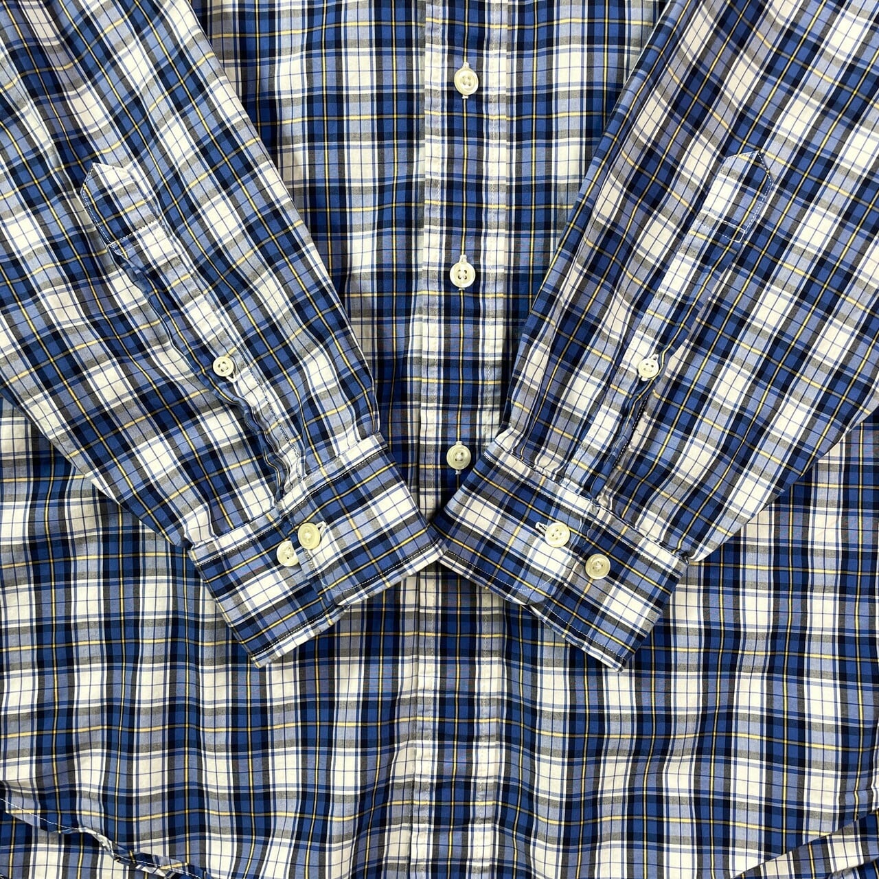 ■Brooks Brothers 346 ブルックスブラザーズ チェックシャツ メンズL 古着 アメカジ ボタンダウン ブルー ホワイト イエロー 青 白 黄色【長袖シャツ】/マルチカラー 【ブランド】 Brooks Brothers ブルックスブラザーズ 【サイズ】 表記 L ※計測値をご確認ください。 着丈…84 身幅…65 肩幅…52 袖丈…62 【生産国】中国製 【素材】コットン100% 【状態】 多少の使用感は御座いますが、目立ったダメージや汚れは御座いません。 画像にてご確認ください。 【c250829010】 ※古着は洗濯、検品などのケアを行っております。(新品・デッドストックは洗濯していません。) ※モニターの発色により実物と異なる場合がございます。予めご了承ください。 ※ 海外直輸入USED品になります。