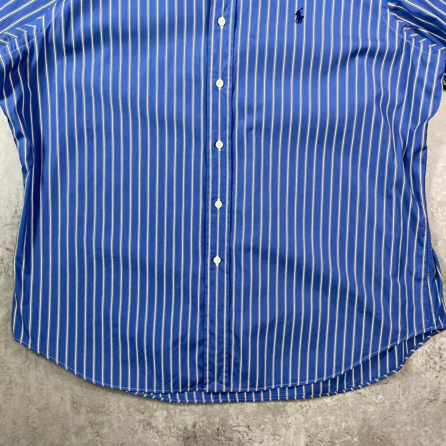 ■Ralph Lauren ラルフローレン CLASSIC FIT ストライプシャツ メンズXL 古着 90s ヴィンテージ VINTAGE B.D ボタンダウンシャツ ワンポイントロゴ刺繍 ブルー ホワイト【長袖シャツ】/ブルー 【ブランド】Ralph Lauren ラルフローレン 【サイズ】表記 XL(実寸メンズXL~XXL相当) ※計測値をご確認ください。 着丈…82 身幅…69 肩幅…51 袖丈…67 【素材】コットン100% 【生産国】中国製 【状態】使用感はありますが、目立った汚れ等はございません。 画像にてご確認ください。 【c250828154】 ※古着は洗濯、検品などのケアを行っております。(新品・デッドストックは洗濯していません。) ※モニターの発色により実物と異なる場合がございます。予めご了承ください。 ※ 海外直輸入USED品になります。