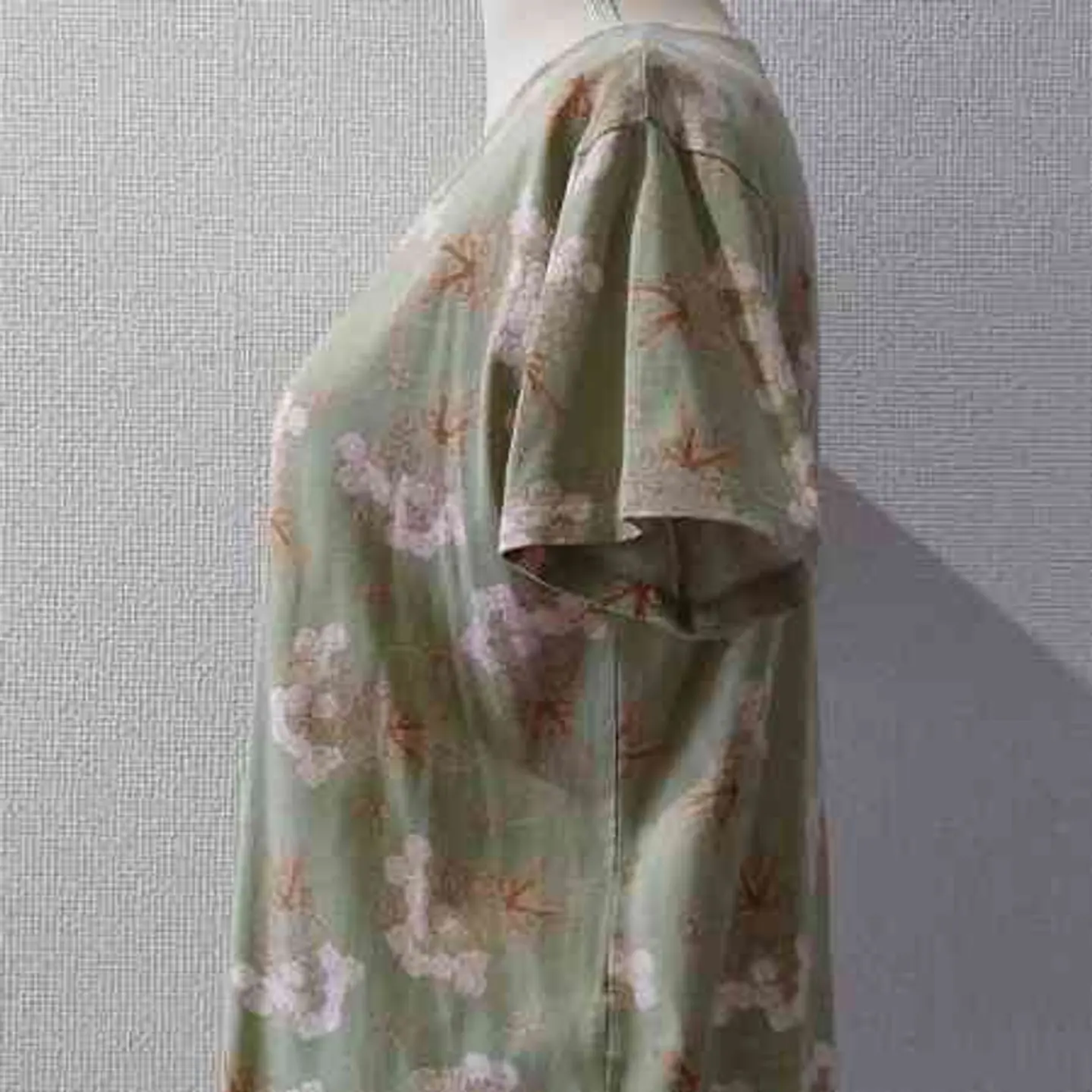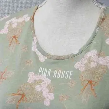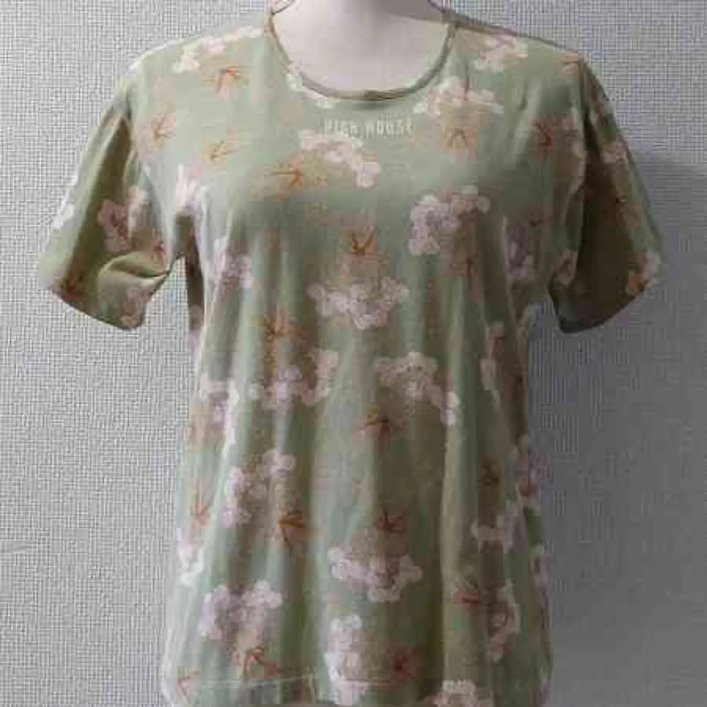 90’s PINK HOUSE 花柄 Tシャツ ダスティーグリーン S-M相当 半袖 総柄 ピンクハウス
