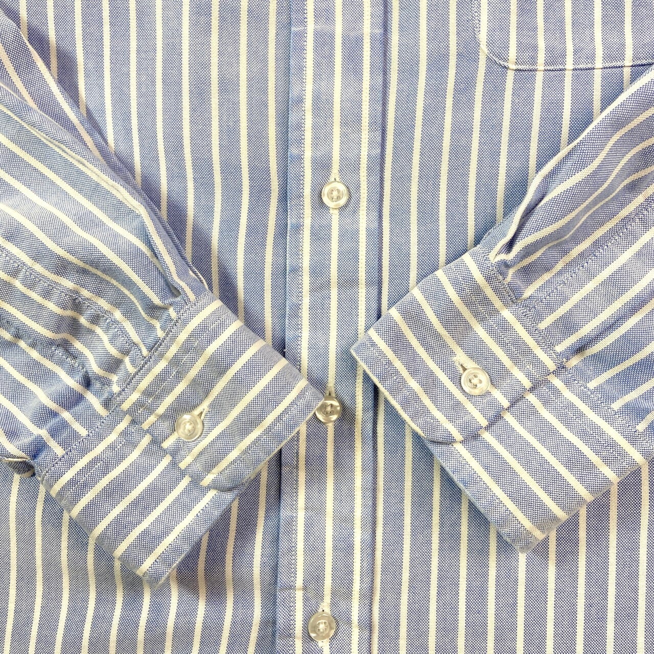 ■90年代 USA製 L.L.Bean エルエルビーン ストライプシャツ メンズL 古着 90s VINTAGE ヴィンテージ アウトドア ボタンダウン オックスフォード ライトブルー ホワイト【長袖シャツ】/マルチカラー 【ブランド】L.L.Bean エルエルビーン 【サイズ】 表記 16 1/2-35 ※計測値をご確認ください。 着丈…84 身幅…64 肩幅...49 袖丈…64 【生産国】USA製 【素材】コットン60% ポリエステル40% 【状態】左袖にアタリがございます。 画像にてご確認ください。 【c250826016】 ※古着は洗濯、検品などのケアを行っております。(新品・デッドストックは洗濯していません。) ※モニターの発色により実物と異なる場合がございます。予めご了承ください。 ※ 海外直輸入USED品になります。