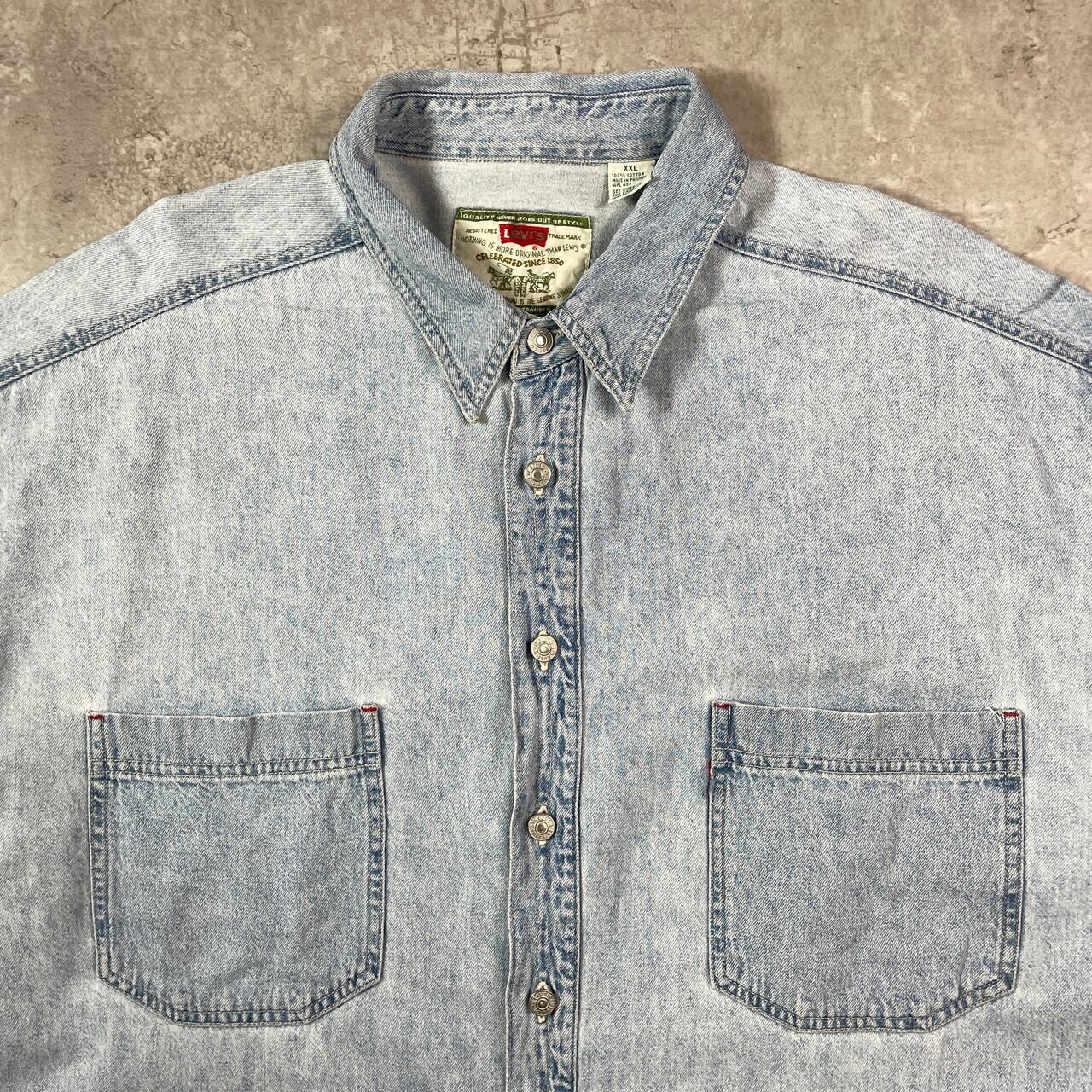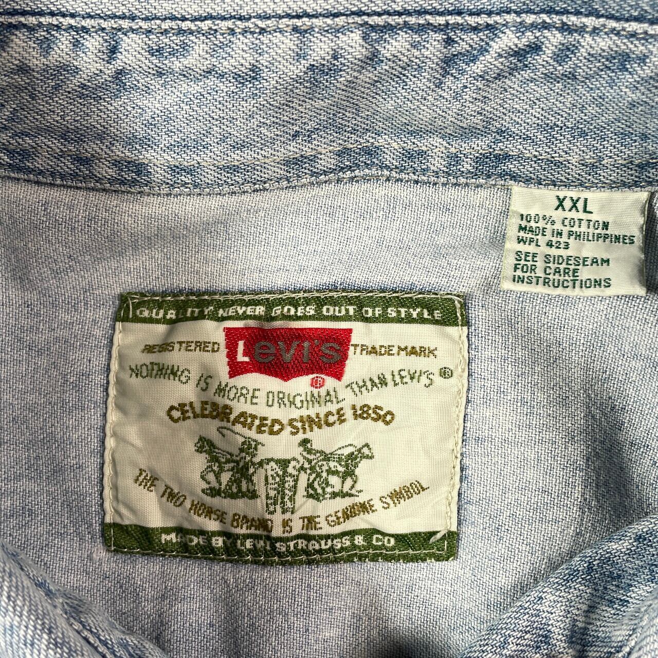 ■90年代 Levi's リーバイス 長袖 デニムシャツ メンズ2XL 古着 90s アメカジ ヴィンテージ VINTAGE ビッグサイズ 大きいサイズ【長袖シャツ】/ブルー 【ブランド】Levi's リーバイス 【サイズ】 表記 XXL ※計測値をご確認ください。 着丈…90 身幅…72 肩幅…63 袖丈…65 【素材】コットン100% 【生産国】フィリピン製 【状態】多少の使用感は御座いますが、目立ったダメージや汚れは御座いません。 画像にてご確認ください。 【c250824007】 ※古着は洗濯、検品などのケアを行っております。(新品・デッドストックは洗濯していません。) ※モニターの発色により実物と異なる場合がございます。予めご了承ください。 ※ 海外直輸入USED品になります。