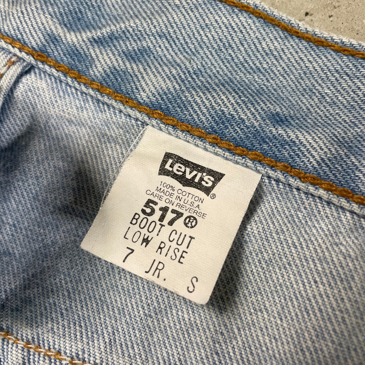 ■90年代 USA製 Levi's リーバイス 517 11517-4810 フレアデニムパンツ ブーツカット レディースW27相当 古着 90s 1999年製 ヴィンテージ VINTAGE ジーンズ 【デニムパンツ】/ブルー 【ブランド】Levi's リーバイス ボタン裏刻印:554 【サイズ】表記 7 JR. S ※計測値をご確認ください。 ウエスト(平置き×2)…68 ワタリ幅…28 股上…26 股下…76 裾幅…23 【生産国】USA製 【素材】コットン100% 【状態】全体的にシミ汚れ、色あせが御座います。 また裾や股部分、ポケットなどに擦れが御座います。 画像にてご確認ください。 【c250823168】 ※古着は洗濯、検品などのケアを行っております。(新品・デッドストックは洗濯していません。) ※モニターの発色により実物と異なる場合がございます。予めご了承ください。 ※ 海外直輸入USED品になります。