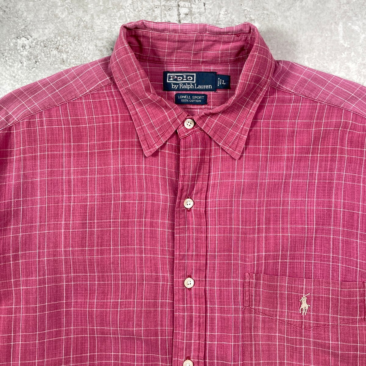 ■90年代 Polo by Ralph Lauren ポロバイラルフローレン LOWELL SPORT チェックシャツ メンズXL相当 古着 90s VINTAGE ヴィンテージ ワンポイントロゴ刺? ポケット付き コットンシャツ フェードレッド ホワイト【長袖シャツ】/レッド ◎LOWELL SPORT 薄手の生地感で、暑い時期でもさらっと着用できます。 【ブランド】Ralph Lauren ラルフローレン 【サイズ】表記 L(実寸メンズXL相当) ※計測値をご確認ください 着丈…87 身幅…69 肩幅…54.5 袖丈…65.5 【生産国】インド製 【素材】コットン100% 【状態】全体的に日焼けなどによるフェードがかっていますが、その擦れ具合が雰囲気のある一品です。 バックサイドに数か所若干のほつれがございます。 画像にてご確認ください。 【c250822106】 ※古着は洗濯、検品などのケアを行っております。(新品・デッドストックは洗濯していません。) ※モニターの発色により実物と異なる場合がございます。予めご了承ください。 ※ 海外直輸入USED品になります。