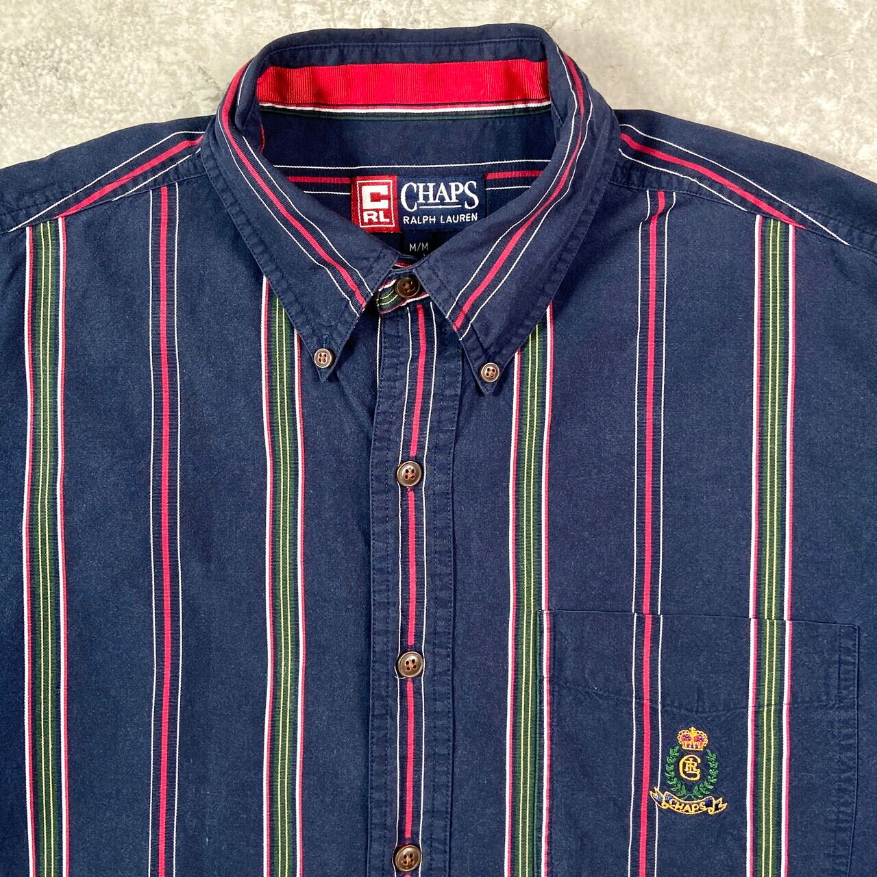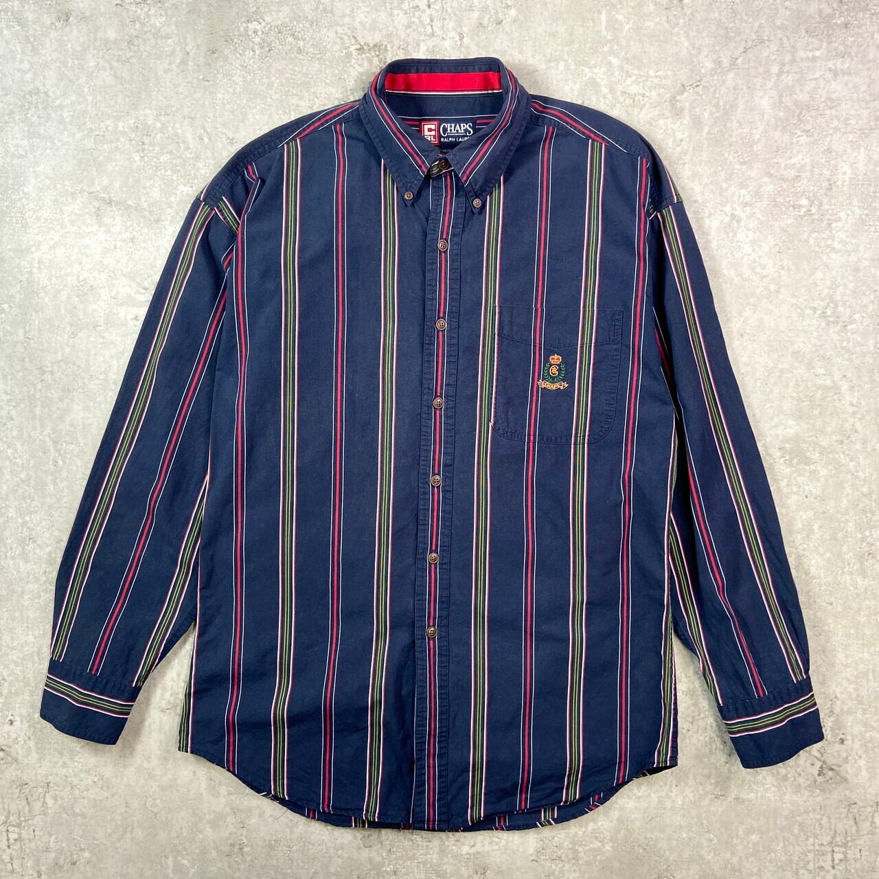 ■90年代 CHAPS Ralph Lauren チャップス ラルフローレン ストライプシャツ メンズL相当 古着 90s VINTAGE ヴィンテージ ボタンダウンシャツ ネイビー グリーン イエロー レッド ホワイト【長袖シャツ】/マルチカラー 【ブランド】 CHAPS Ralph Lauren チャップス ラルフローレン 【サイズ】表記 M(着用感メンズL相当) ※計測値をご確認ください。 着丈…82 身幅…58.5 肩幅…56.5 袖丈…58.5 【生産国】不明 【素材】不明 おそらくコットンかと思われます。 【状態】多少の使用感は御座いますが、目立ったダメージや汚れは御座いません。 画像にてご確認ください。 【c250821016】 ※古着は洗濯、検品などのケアを行っております。(新品・デッドストックは洗濯していません。) ※モニターの発色により実物と異なる場合がございます。予めご了承ください。 ※ 海外直輸入USED品になります。