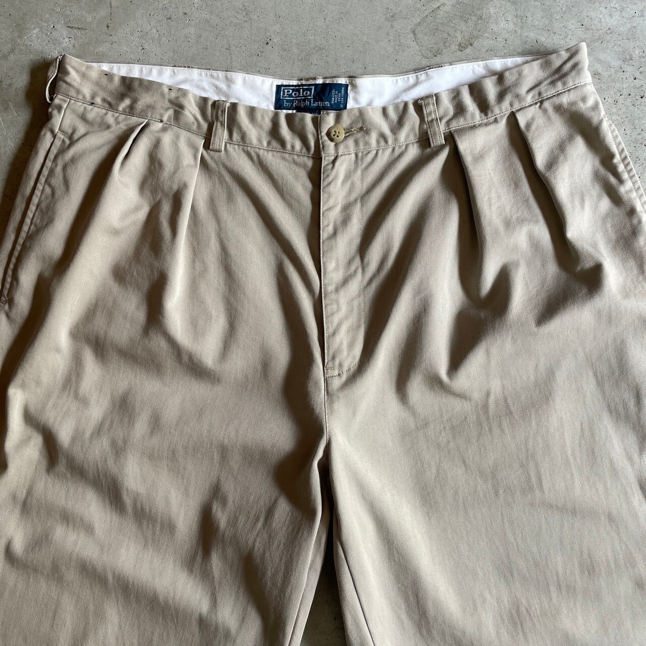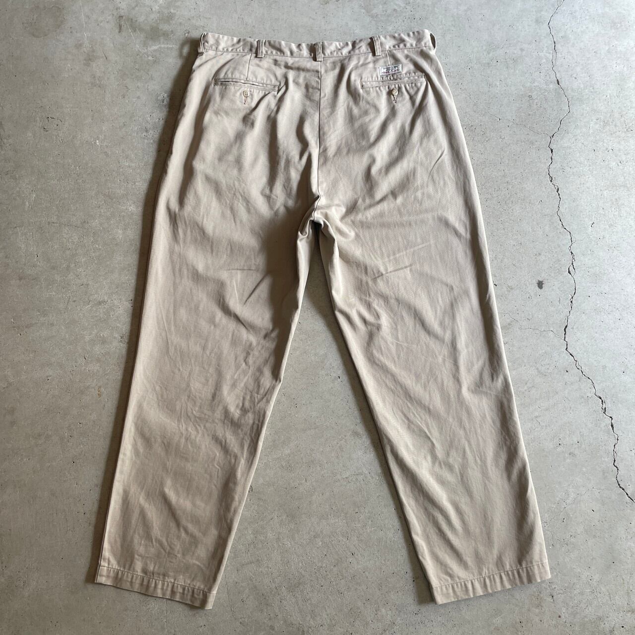 ■90年代 Polo by Ralph Lauren オールドラルフローレン 2タック ワイド チノパンツ ポロチノ ANDREW PANT メンズW40 古着 ポロバイラルフローレン 90s ヴィンテージ ビンテージ ベージュ【ロングパンツ】 【ブランド】Polo by Ralph Lauren ポロバイラルフローレン 【サイズ】表記 40/32 ※計測値をご確認ください。 ウエスト(平置き×2)…97 ワタリ幅…35 股上…32.5 股下…79 裾幅…22.5 【生産国】中国製 【素材】コットン100% 【状態】ベルト、裾等多少のスレ、全体的に使用感がございます。また裾に薄く汚れが御座います。 画像にてご確認ください。 【c250819154】 ※古着は洗濯、検品などのケアを行っております。(新品・デッドストックは洗濯していません。) ※モニターの発色により実物と異なる場合がございます。予めご了承ください。 ※ 海外直輸入USED品になります。
