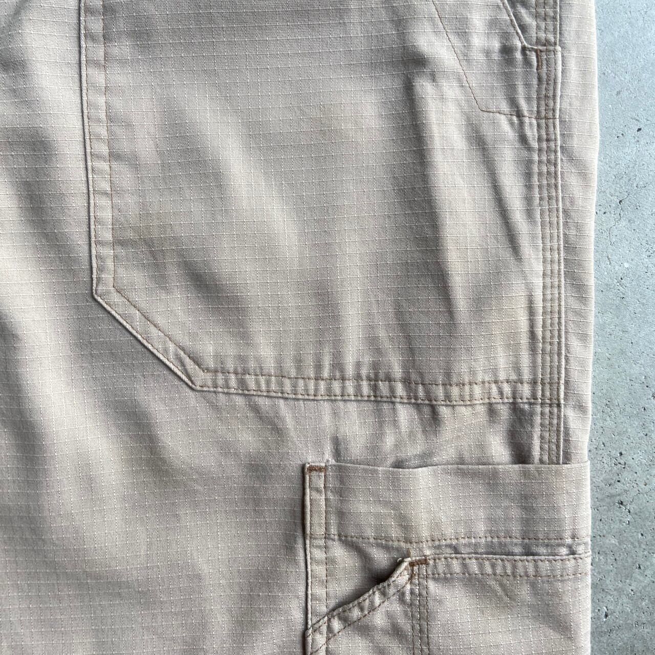 ■Carhartt カーハート コットン×ポリエステル リップストップ イージーパンツ ワークパンツ メンズM 古着 ベージュ【ロングパンツ】 【ブランド】Carhartt カーハート 【サイズ】表記 M REGULAR ※計測値をご確認ください。 ウエスト(平置き×2)…87-95(ウエストゴム:ドローコードで調節可) ワタリ幅…35.5 股上…27.5 股下…76 裾幅…25 【生産国】ベトナム製 【素材】コットン55% ポリエステル45% 【状態】数か所薄汚れ等多少の使用感はございますが、 目立った汚れやダメージ等は無くまだまだ長く愛用していただけます。 画像にてご確認ください。 【c250819151】 ※古着は洗濯、検品などのケアを行っております。(新品・デッドストックは洗濯していません。) ※モニターの発色により実物と異なる場合がございます。予めご了承ください。 ※ 海外直輸入USED品になります。