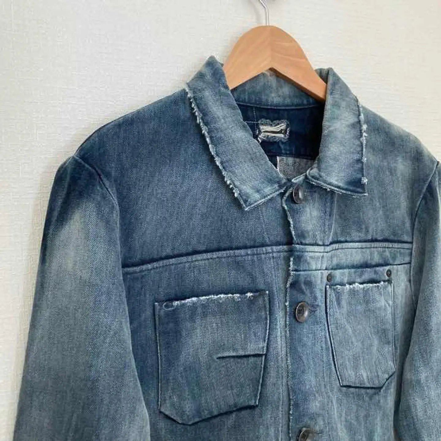 質の高いデニム素材で作られたアメリカ製のデニムジャケット! アメカジテイストとミリタリーデザインが融合した、男性にぴったりな一着です。ミリタリーライダースを彷彿とさせるスタイリングや、アメカジカジュアルスタイルにも相性抜群。 ブランド MATiAS マティアス 商品名 【MATias】 アメリカ製 デニムジャケット アメカジ カジュアル ダメージ加工 ミリタリー メンズ M サイズ Mサイズ 肩幅46㎝ 身幅53㎝ 袖丈63㎝ 着丈64㎝ カラー デニム 特記事項 ダメージ加工が施されたアメリカ製のデニムジャケット。今流行りのカジュアルトレンドに間違いなく合わせることができます。皮革部分にはムートンレザーを使用。 #ふくしるべのジャケット