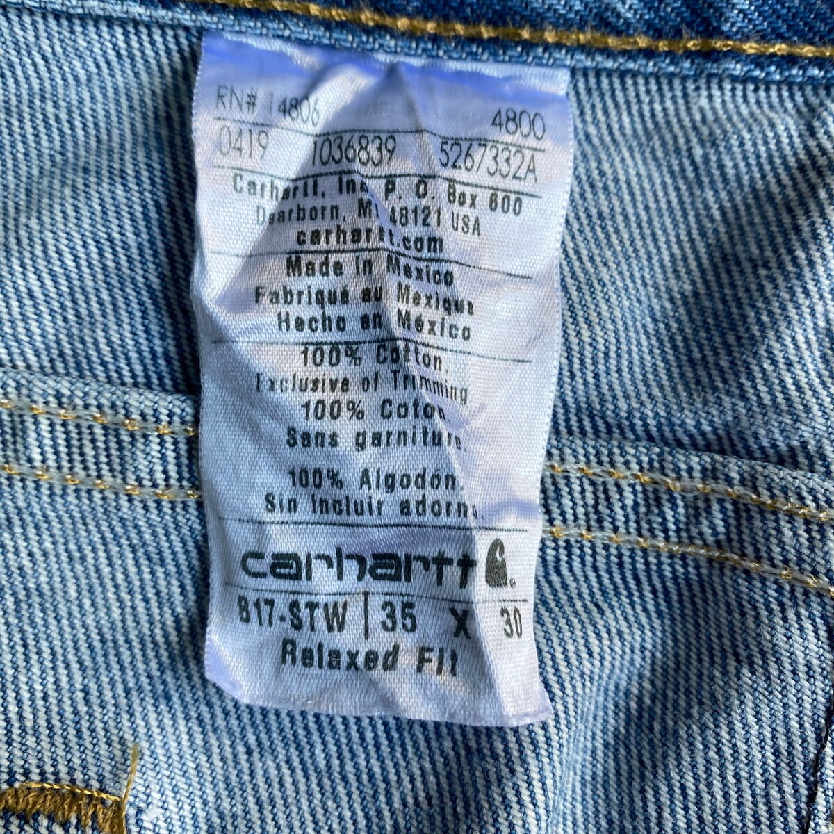 ■Carhartt カーハート Relaxed Fit デニムパンツ ワークパンツ メンズ W35 古着【デニムパンツ】 【ブランド】Carhartt カーハート 【サイズ】35×30 ※計測値をご確認ください。 ウエスト(平置き×2)…90 ワタリ幅…33 股上…30 股下…74 裾幅…19 【生産国】メキシコ製 【素材】コットン100% 【状態】全体的な色落ち,両ふとももに汚れがございます。画像でお確かめください。 【c250810157】 ※古着は洗濯、検品などのケアを行っております。(新品・デッドストックは洗濯していません。)
