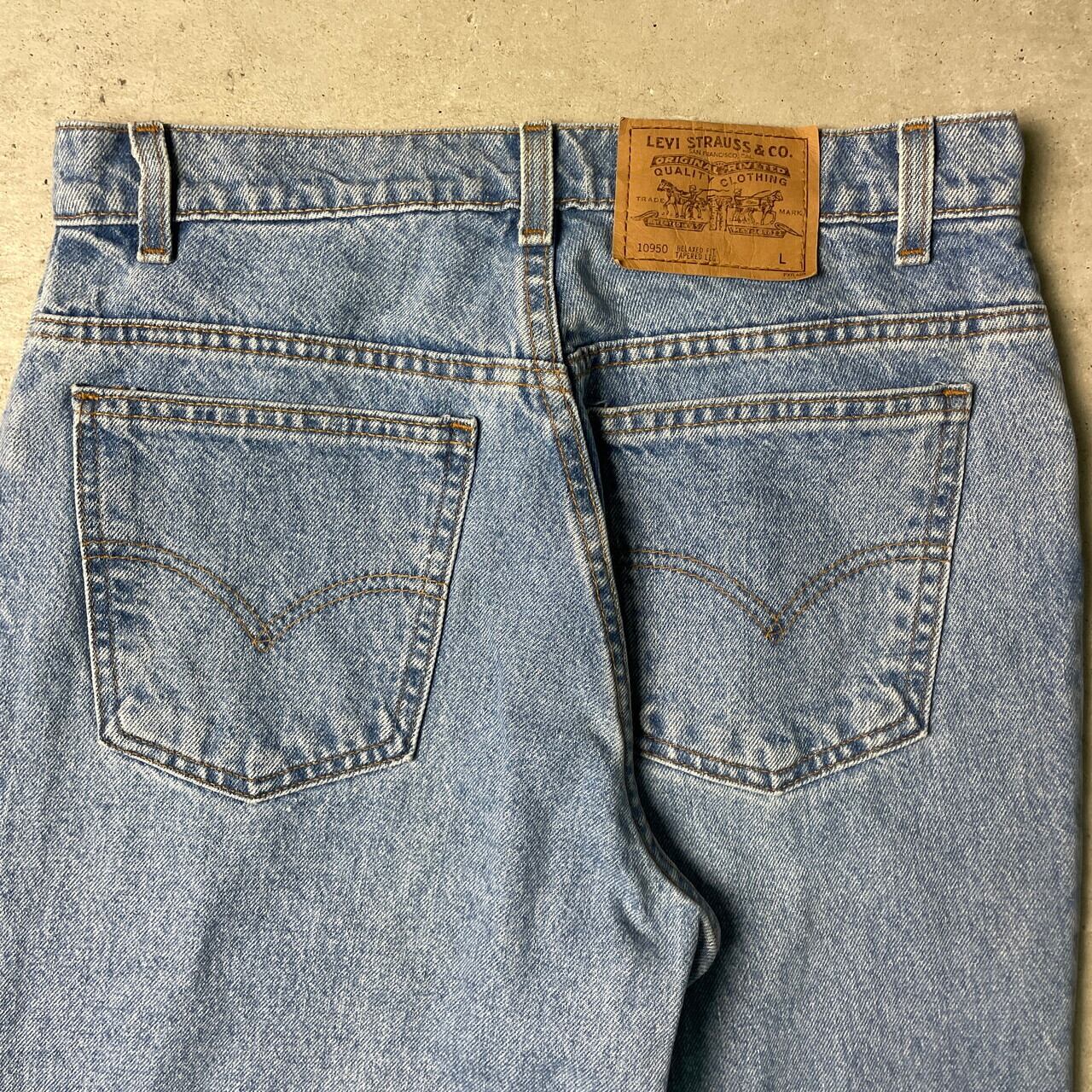 ■90年代 USA製 Levi's リーバイス 10950 テーパード デニムパンツ レディースW31 メンズ 古着 90s ビンテージ ヴィンテージ RELAXED FIT TAPERD LEG 薄色【デニムパンツ】 【ブランド】Levi's リーバイス 【サイズ】表記 13 JR. L(実寸約W31 L32) レディース規格ですがメンズにもおすすめなサイズ感です。 ※計測値をご確認ください。 ウエスト(平置き×2)…79 ワタリ幅…33 股上…30 股下...82 裾幅…17.5 【生産国】USA製 【素材】コットン100% 【状態】多少のスレ等の使用感はございますが、 目立った汚れやダメージ等は無くまだまだ長く愛用していただけます。 画像にてご確認ください。 【c250810153】 ※古着は洗濯、検品などのケアを行っております。(新品・デッドストックは洗濯していません。) ※モニターの発色により実物と異なる場合がございます。予めご了承ください。 ※ 海外直輸入USED品になります。