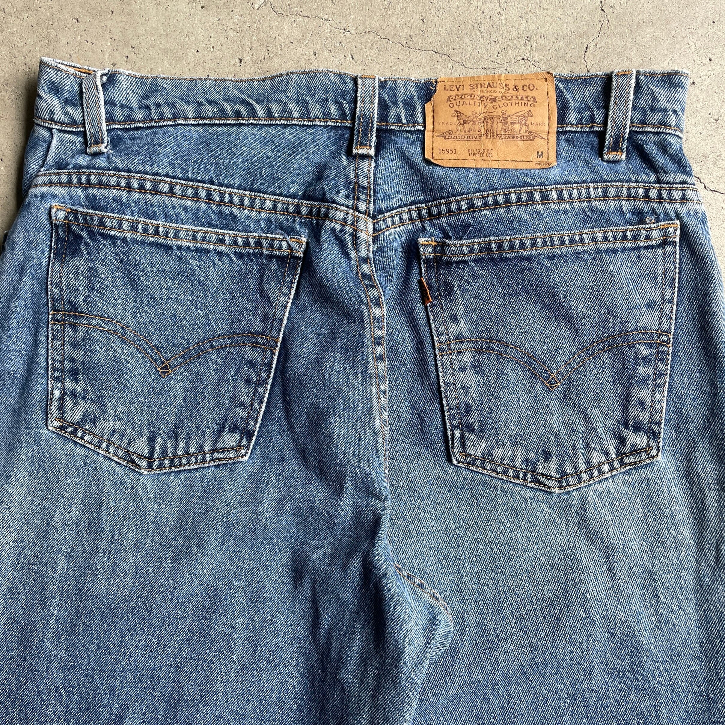 ■90年代 Levi's リーバイス 951 RELAXED FIT バギー テーパード デニムパンツ レディースM 古着 90s ヴィンテージ ビンテージ オレンジタブ ワイド【デニムパンツ】 【ブランド】Levi's リーバイス 【サイズ】表記 14 MED ※計測値をご確認ください。 ウエスト(平置き×2)…84(W33相当) ワタリ幅…34 股上…33 股下…77 裾幅…16.5 【生産国】ドミニカ共和国製 【素材】コットン100% 【状態】股や裾、ウエスト擦れ、パッチダメージ、色落ちなど使用感ございます。画像にてご確認ください。 【c250806155】 ※古着は洗濯、検品などのケアを行っております。(新品・デッドストックは洗濯していません。) ※モニターの発色により実物と異なる場合がございます。予めご了承ください。 ※ 海外直輸入USED品になります。