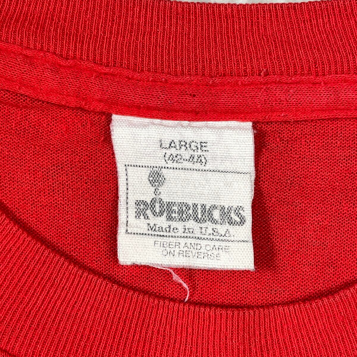 ■80年代 USA製 ROEBUCKS ローバックス ブランク ポケットTシャツ メンズL 古着 80s VINTAGE ヴィンテージ 袖シングルステッチ 耳付き SEARS シアーズ 赤色【Tシャツ】/レッド 【ブランド】 ROEBUCKS ローバックス 【サイズ】表記 LARGE ※計測値をご確認ください。 着丈…77.5 身幅…57 肩幅…55 袖丈…19.5 【生産国】USA製 【素材】コットン50% ポリエステル50% 【状態】多少の毛羽立ち、数か所小穴、裾に細かい薄汚れ等の使用感がございます。 画像にてご確認ください。 【c250804120】 ※古着は洗濯、検品などのケアを行っております。(新品・デッドストックは洗濯していません。) ※モニターの発色により実物と異なる場合がございます。予めご了承ください。 ※ 海外直輸入USED品になります。