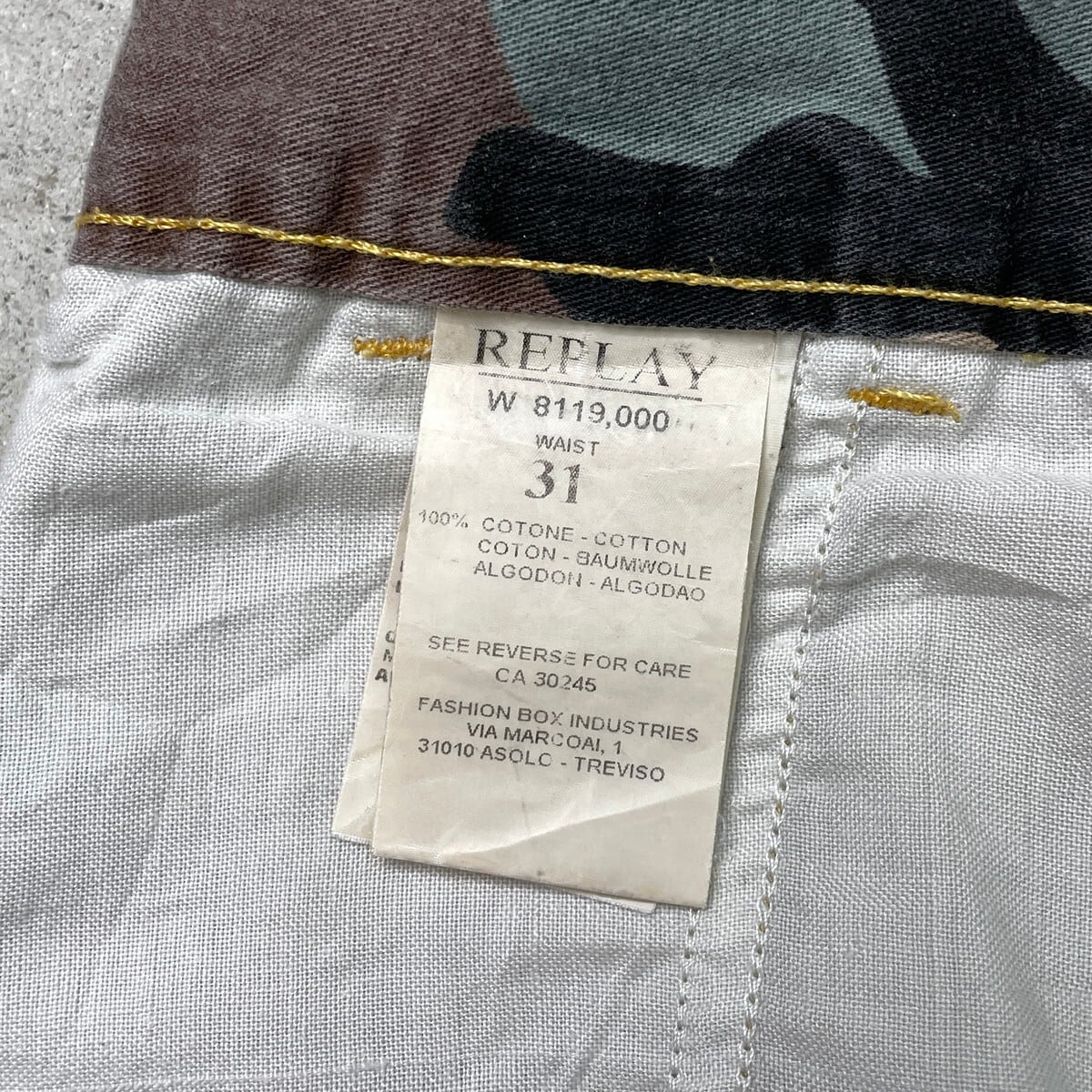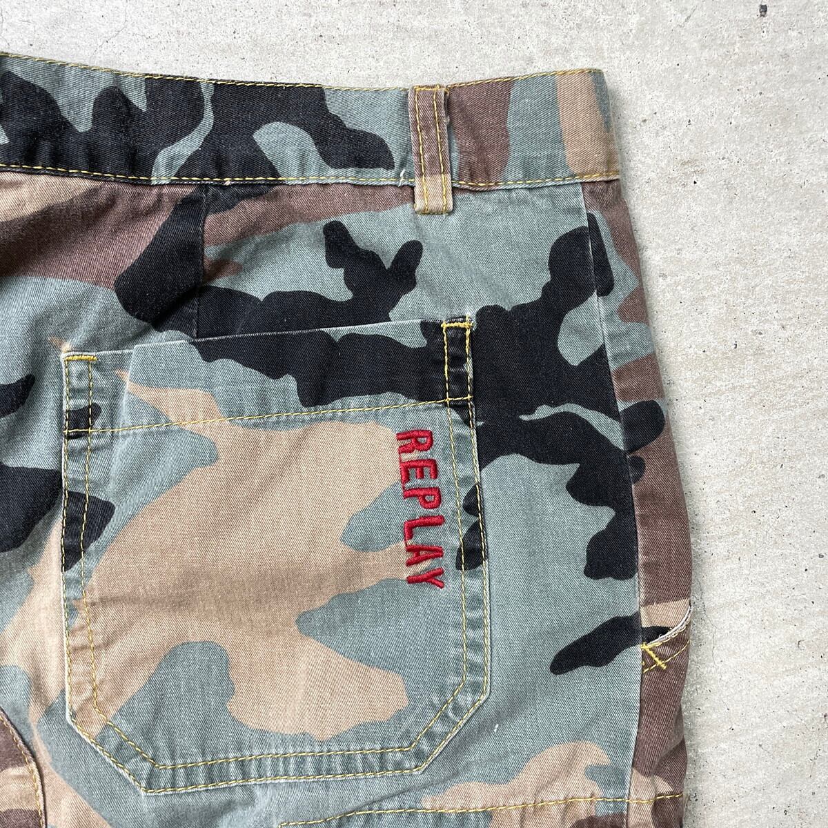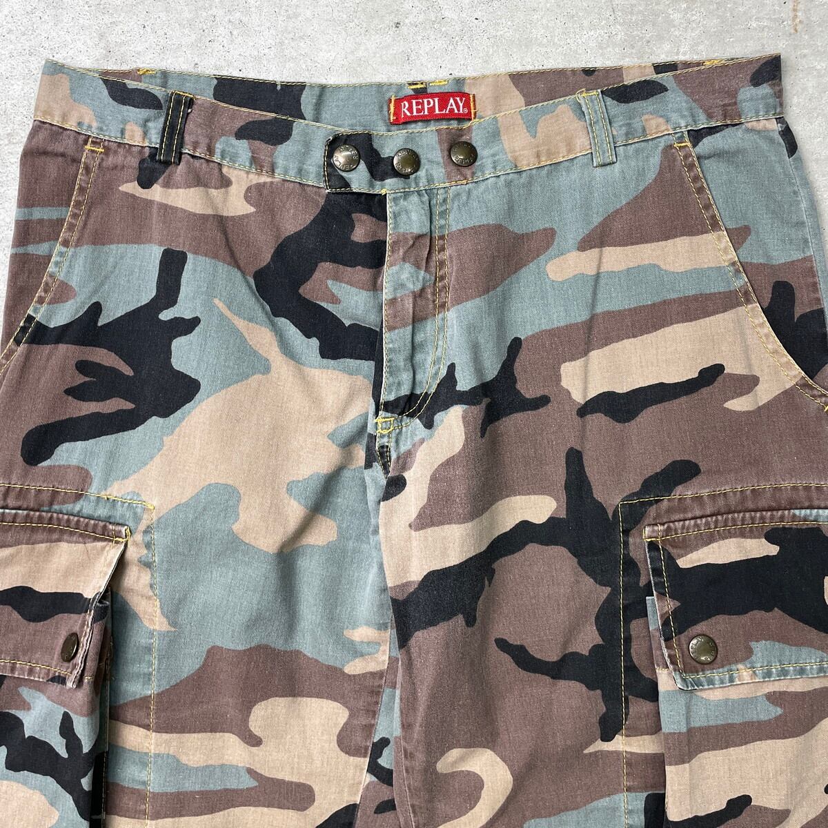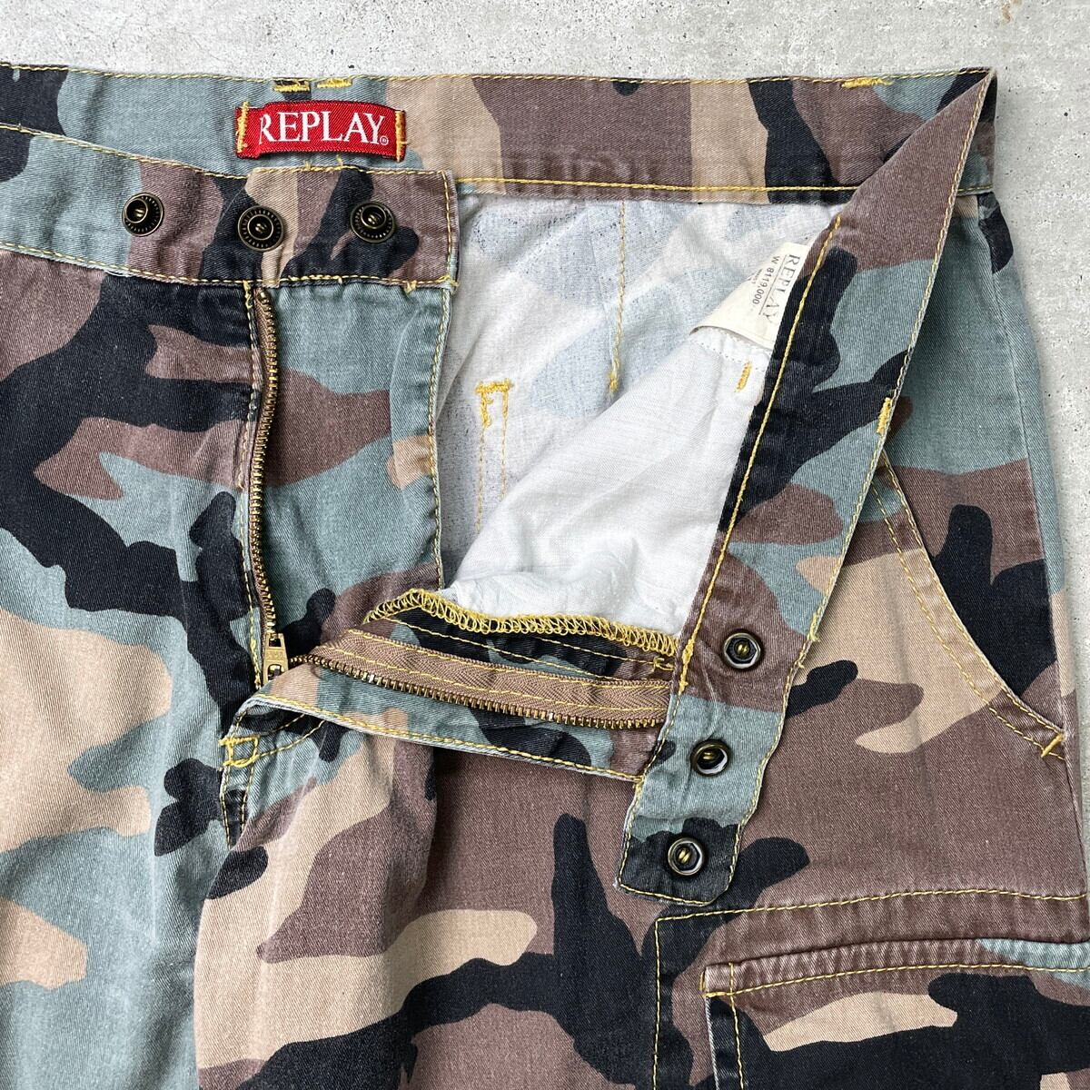 ■REPLAY カモフラ カーゴパンツ 七分丈 メンズW31 古着 ロゴ刺繍 クロップド【デニムパンツ】/マルチカラー 【ブランド】REPLAY 【サイズ】表記 W31 ※計測値をご確認ください。 ウエスト(平置き×2)…84 ワタリ幅…32.5 股上…22.5 股下…53 裾幅…23 【生産国】不明 【素材】コットン100% 【状態】全体的に使用感による色褪せがございます。 画像にてご確認ください。 【c250803108】 ※古着は洗濯、検品などのケアを行っております。(新品・デッドストックは洗濯していません。) ※モニターの発色により実物と異なる場合がございます。予めご了承ください。 ※ 海外直輸入USED品になります。