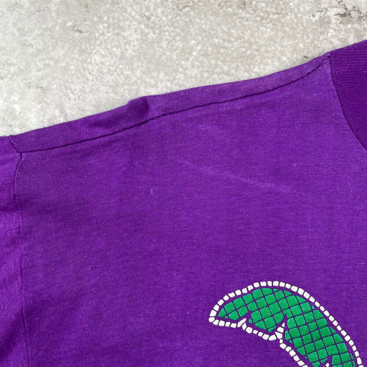 ■90年代 TROPIC TRADERS ”BAHAMAS” スーベニア プリントTシャツ メンズL相当 古着 90s VINTAGE ヴィンテージ シングルステッチ 紫【Tシャツ】/パープル 【ブランド】TROPIC TRADERS 【サイズ】表記 XL(実寸メンズL相当) ※計測値をご確認ください。 着丈…68.5 身幅…54.5 肩幅…59 袖丈…20 【生産国】表記不明 【素材】コットン100% 【状態】タグ一片取れ、裾糸ほつれ、左肩小穴、首ステッチ抜け、全体所々脱色、フロント下汚れ使用感ございます。 画像にてご確認ください。 【c250801114】 ※古着は洗濯、検品などのケアを行っております。(新品・デッドストックは洗濯していません。) ※モニターの発色により実物と異なる場合がございます。予めご了承ください。 ※ 海外直輸入USED品になります。