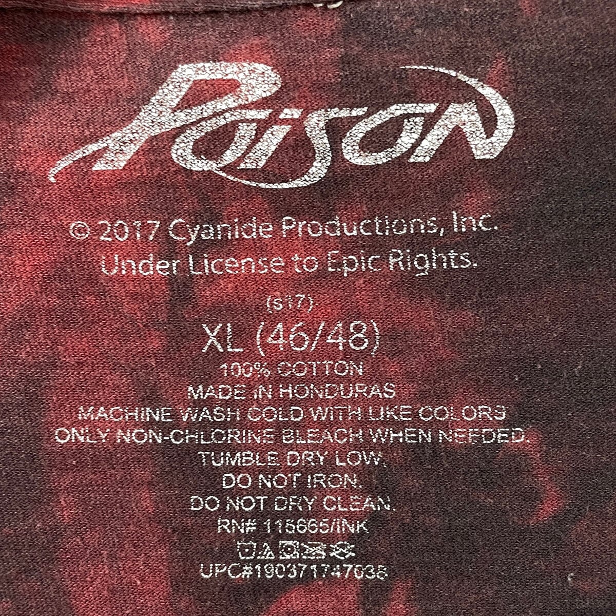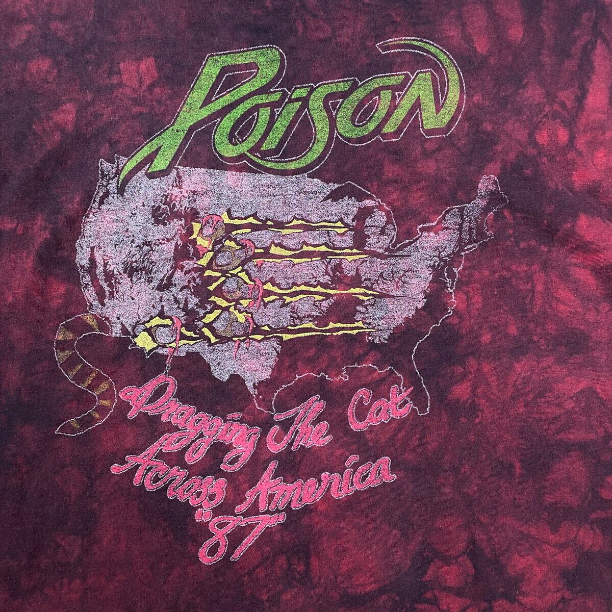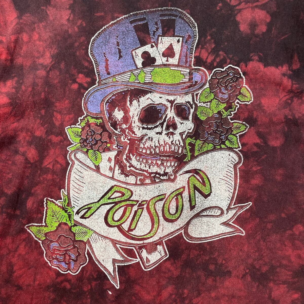 ■Poison バンドTシャツ バンT タイダイ プリントTシャツ メンズXL 古着 ポイズン ドクロ 両面プリント ワインレッド【Tシャツ】/レッド 【サイズ】表記 XL ※計測値をご確認ください。 着丈…71 身幅…61.5 肩幅…60.5 袖丈…20.5 【生産国】ホンジュラス製 【素材】コットン100% 【状態】フロントのプリント付近に色抜けした部分があります。 バックサイドのネックに小穴があります。 画像にてご確認ください。 【c250801111】 ※古着は洗濯、検品などのケアを行っております。(新品・デッドストックは洗濯していません。) ※モニターの発色により実物と異なる場合がございます。予めご了承ください。 ※ 海外直輸入USED品になります。