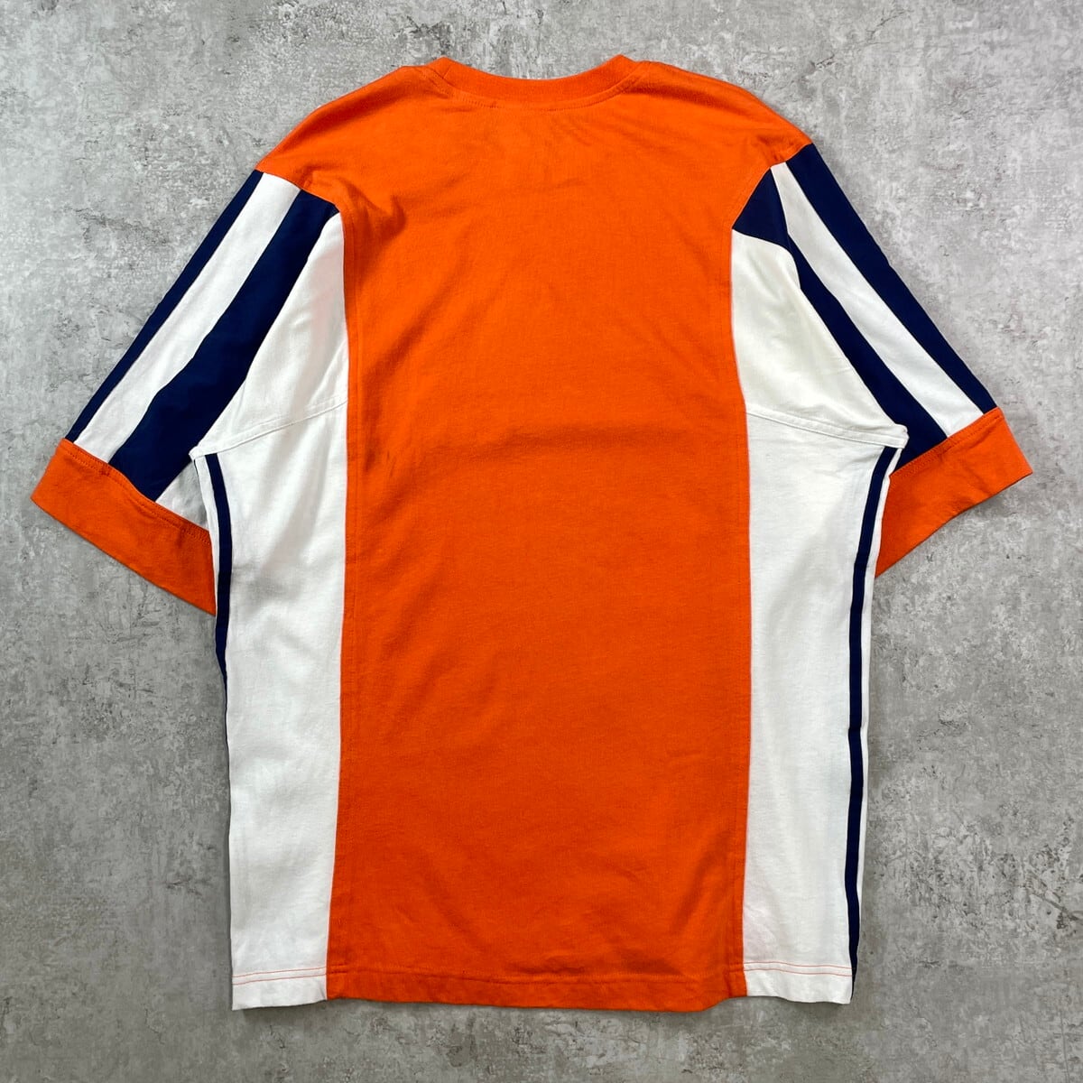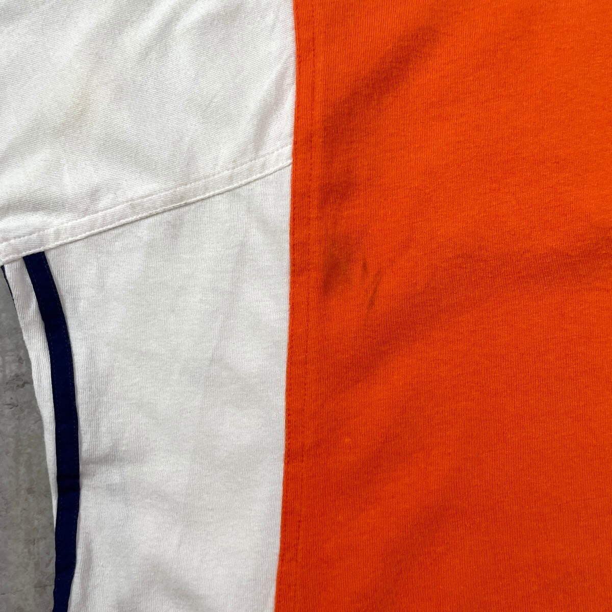 ■00年代 adidas アディダス パフォーマンスロゴ エンボス加工 Tシャツ メンズXL相当 古着 00s Y2K VINTAGE ヴィンテージ サイドライン 切り替えデザイン ネイビー×ホワイト×オレンジ【Tシャツ】/オレンジ 【ブランド】adidas アディダス 【サイズ】表記 L(着用感メンズXL相当) ※計測値をご確認ください。 着丈…75 身幅…64 肩幅…48.5 袖丈...33 【生産国】インドネシア製 【素材】コットン60% ポリエステル40% ライン部分 ポリエステル100% 【状態】バックサイド白部分に数か所薄汚れがございます。 画像にてご確認ください。 【c250801107】 ※古着は洗濯、検品などのケアを行っております。(新品・デッドストックは洗濯していません。) ※モニターの発色により実物と異なる場合がございます。予めご了承ください。 ※ 海外直輸入USED品になります。