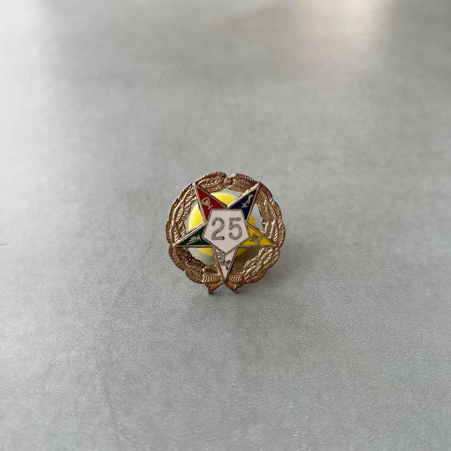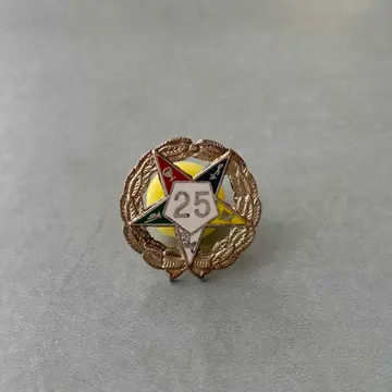 ◆30%OFFセール価格◆ フリーメイソンのUSAヴィンテージブローチです。逆五芒星に繊細なエナメルが施された小ぶりながら存在感のあるアイテムです。 □Materials メタル(ゴールドメッキ)、エナメル □Size 直径 約1.9㎝ パーツ厚み 約2㎜ □Condition【C】 経年によるメッキ変色やキャッチのフチ部分にわずかな欠けがみられます。中古品であることをご理解のうえお買い求めください。 【S】未使用 【A】未使用に近い 【B】やや使用感あり 【C】使用感あり Item No.2758