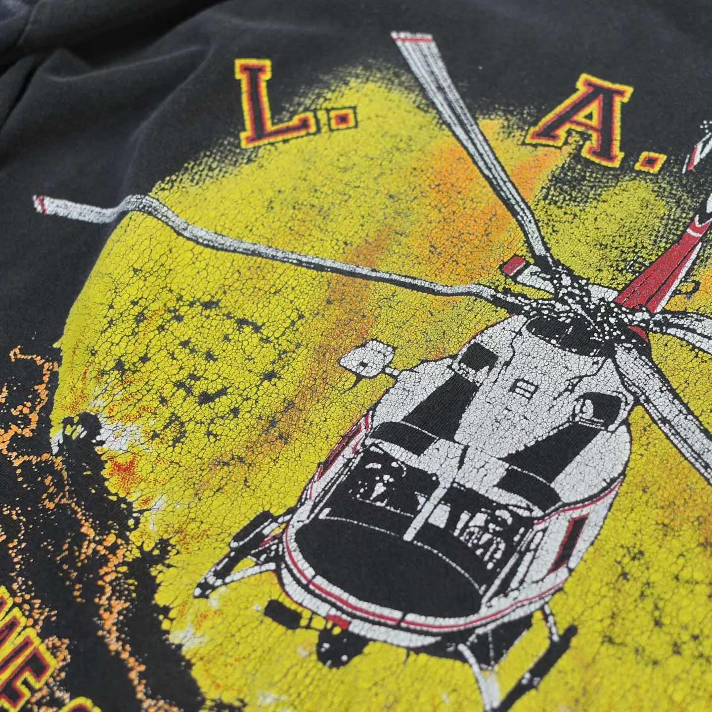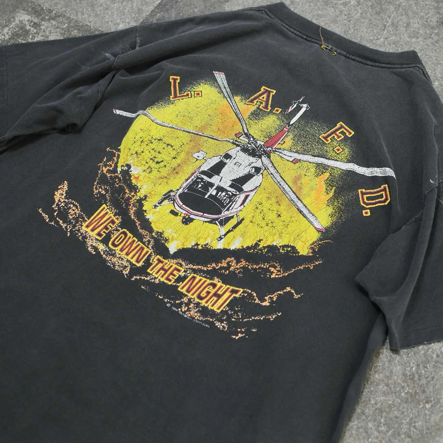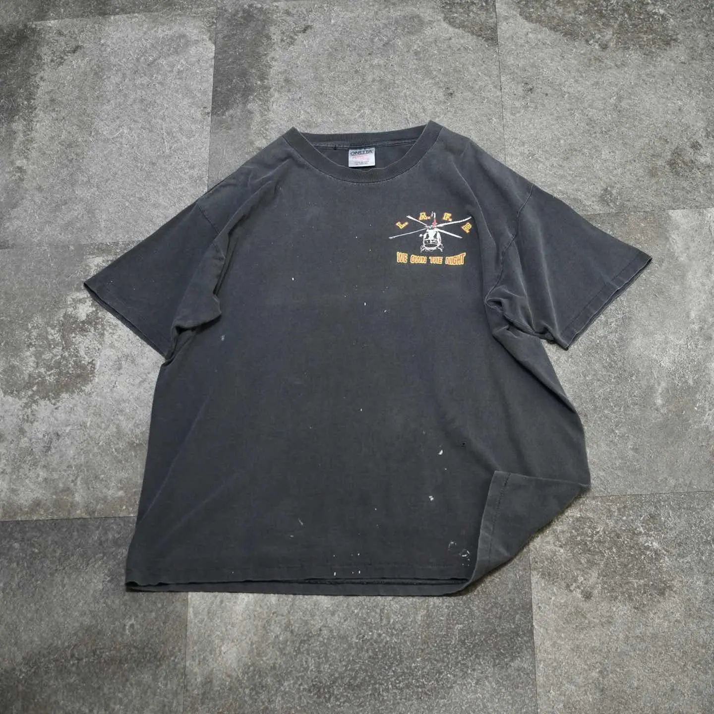 SIZE:XL 着丈73cm 肩幅60cm 身幅67cm 袖丈24cm(シングルステッチ) fabric/cotton made in USA 着用画像 177cm/64kg ロサンゼルス消防局のエアサポート部隊を モチーフにしたTシャツ。 プリントされたヘリコプターは、 Bell412型ヘリコプターで山火事や夜間レスキュー、 救急搬送に使用されていたようです。 程よく飛んだペンキ、フェードしたボディ そして割れたプリント。 個人的に思う、最高の状態で見つかった Tシャツです。 サイズバランスの良い点も◎ ※撮影状況により、実物と多少色が異なる場合が ございます。 ※古着を取り扱っているため、気づかない汚れや ほつれ等がある場合がございます。 予めご了承ください。 ※サイズは着用感で選んでおり、 表記サイズではございません。 表記サイズは説明欄の最初に記載しております。 古着 オーバーサイズ old vintage ヴィンテージ used 80's 90's アメリカ古着 ユーロ古着 メンズ レディース POLO RALPH LAUREN Eddie Bauer OLD GAP Eddie Bauer LANDS' END ランズエンド LLBean エルエルビーン オールドギャップ エディーバウアー ラルフローレン ブルックスブラザーズ Brooks Brothers 半袖Tシャツ Tシャツ プリントTシャツ 炭黒 チャコールグレー ブラック 黒 両面プリント などがお好きな方 #vintage #オーバーサイズ #old #used #90s #80s #古着 #ヴィンテージ #アメリカ古着 #ユーロ古着 #古着男子 #古着女子 #LLBean #エルエルビーン #EddieBauer #エディーバウアー #oldgap #オールドギャップ #LANDSEND #ランズエンド #NAUTICA #ノーティカ #ラルフローレン #POLORALPHLAUREN #ブルックスブラザーズ #BrooksBrothers #半袖Tシャツ #フェード #プリントTシャツ #Tシャツ #両面プリント #シングルステッチ