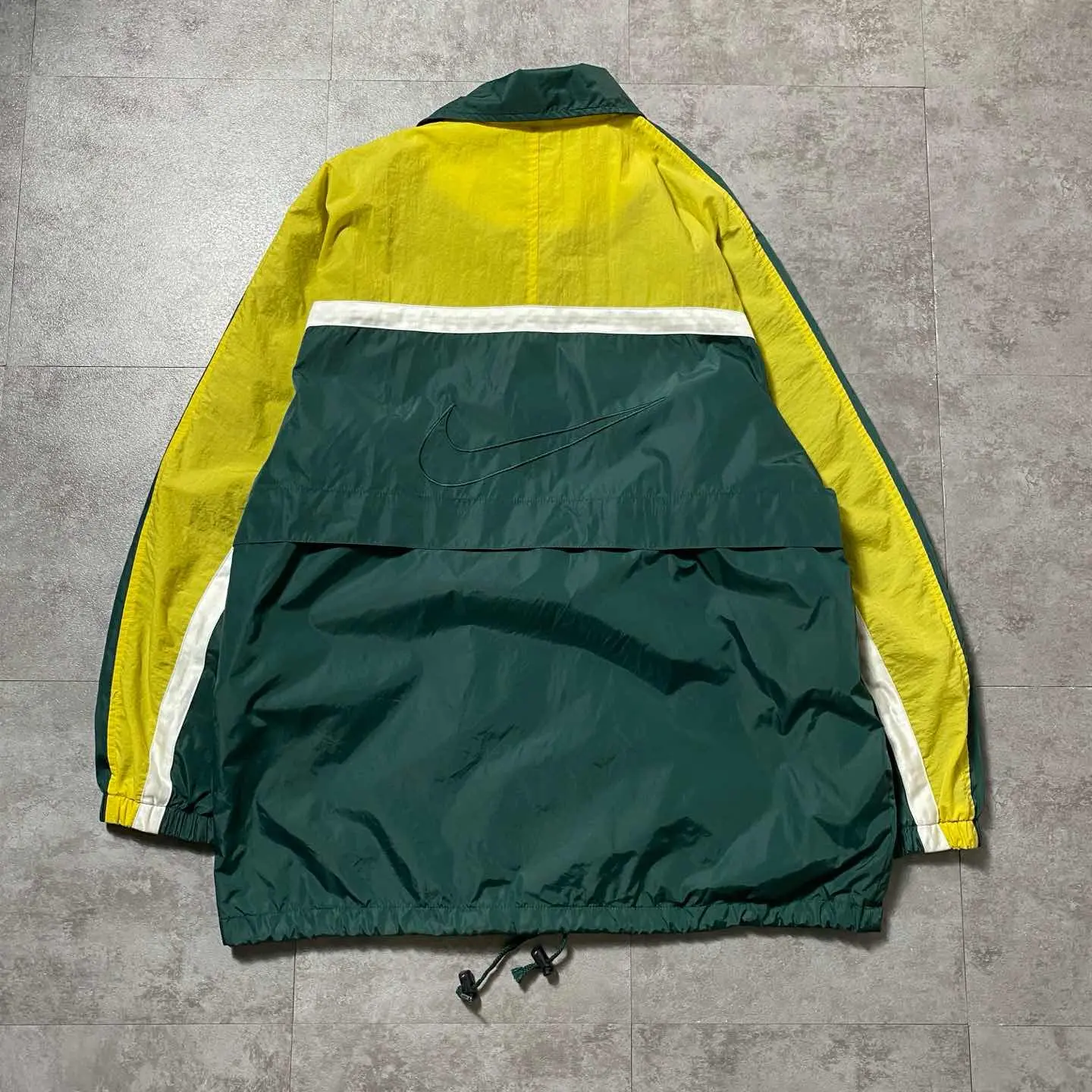 ○Size○ 表記→M(実際の着用感L〜XLサイズ相当) ・着丈78 ・身幅62 ・袖丈80(ラグランスリーブ) (cm) ○Color○ ・グリーン、イエロー ○Material○ ・100%ナイロン ○Condition○ ・右袖先付近に汚れ箇所あり ○Caution○ 当店で取り扱っている商材は全て『古着』となっております。 そのため、多少の状態難(ほつれ、傷、汚れ、リブの伸び、使用感、擦れ、色あせ、etc)がある場合がございます。 新品同様の完璧なお品物をお求めの方は当店でのお買い物を控えて頂きますよう宜しくお願いします。 また、購入された商品に関しましては、購入日時から起算して『72時間以内に』発送手続きの方を取らせて頂きます。 お急ぎの場合は購入前に当店オンラインストアの方にお問い合わせ頂きますよう宜しくお願いします。 25/1274