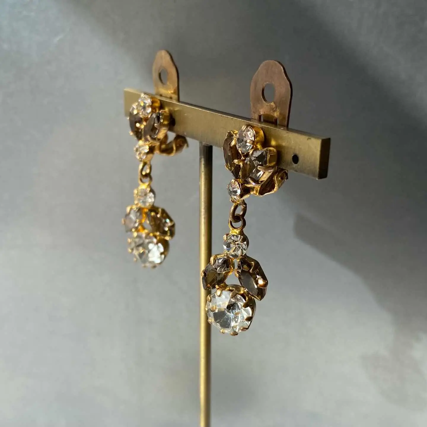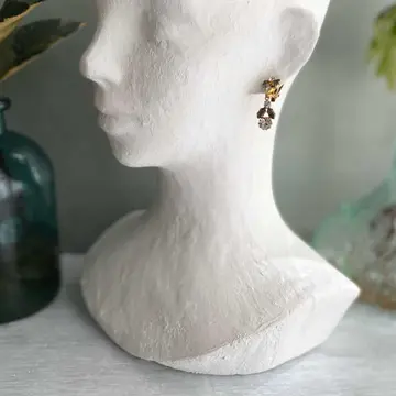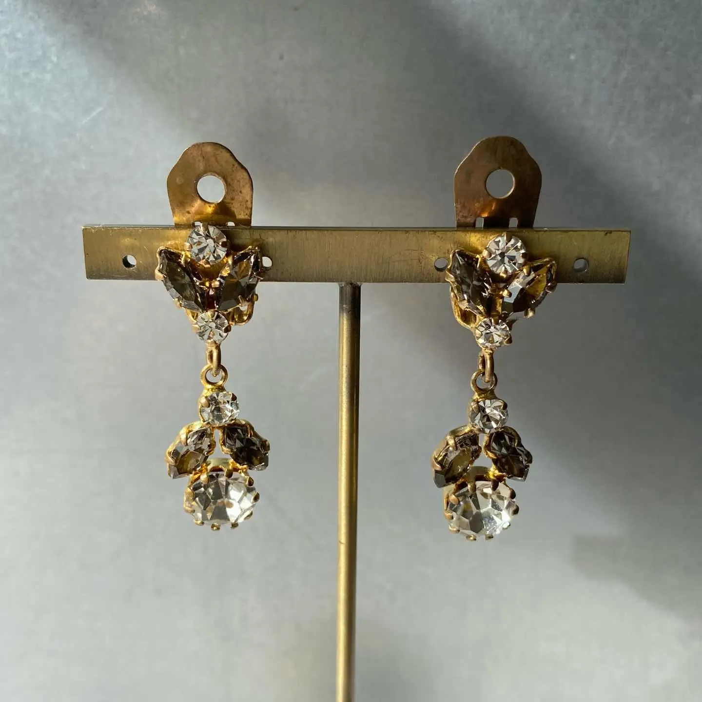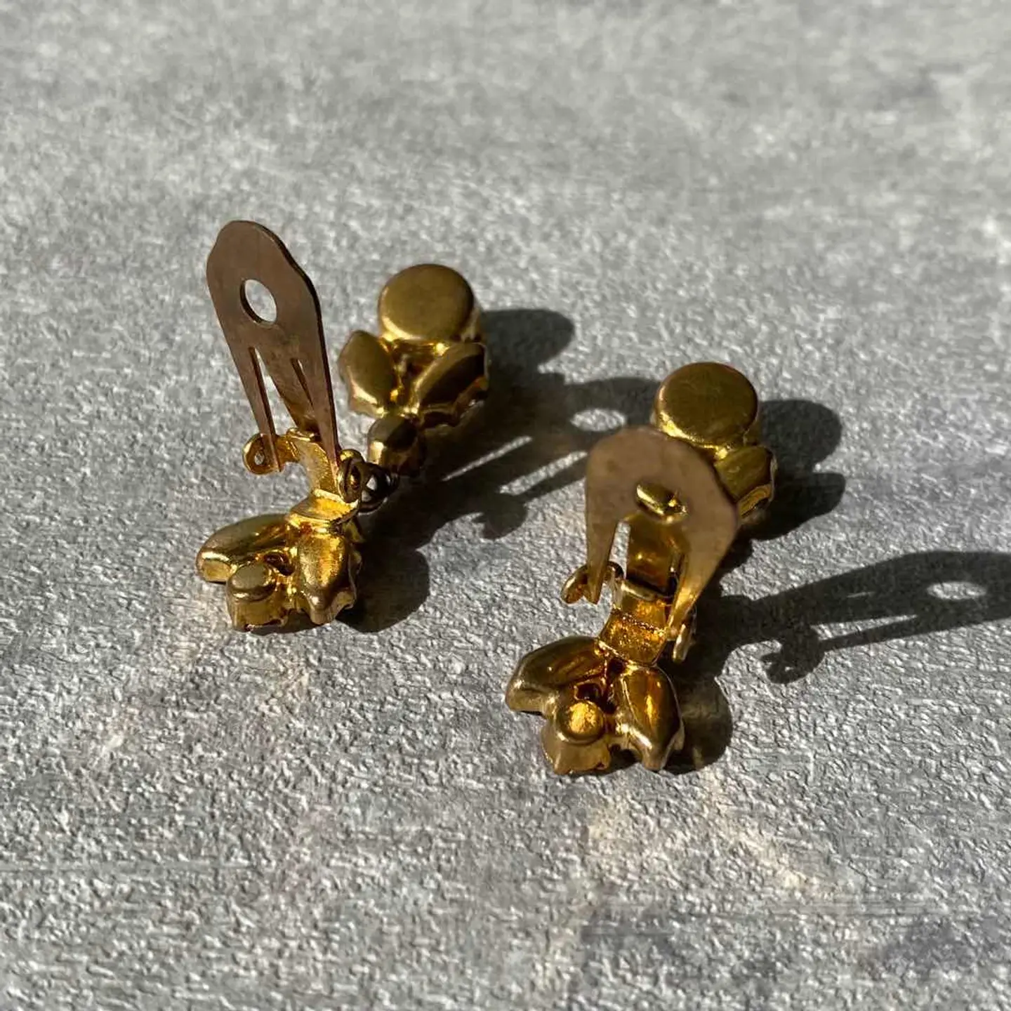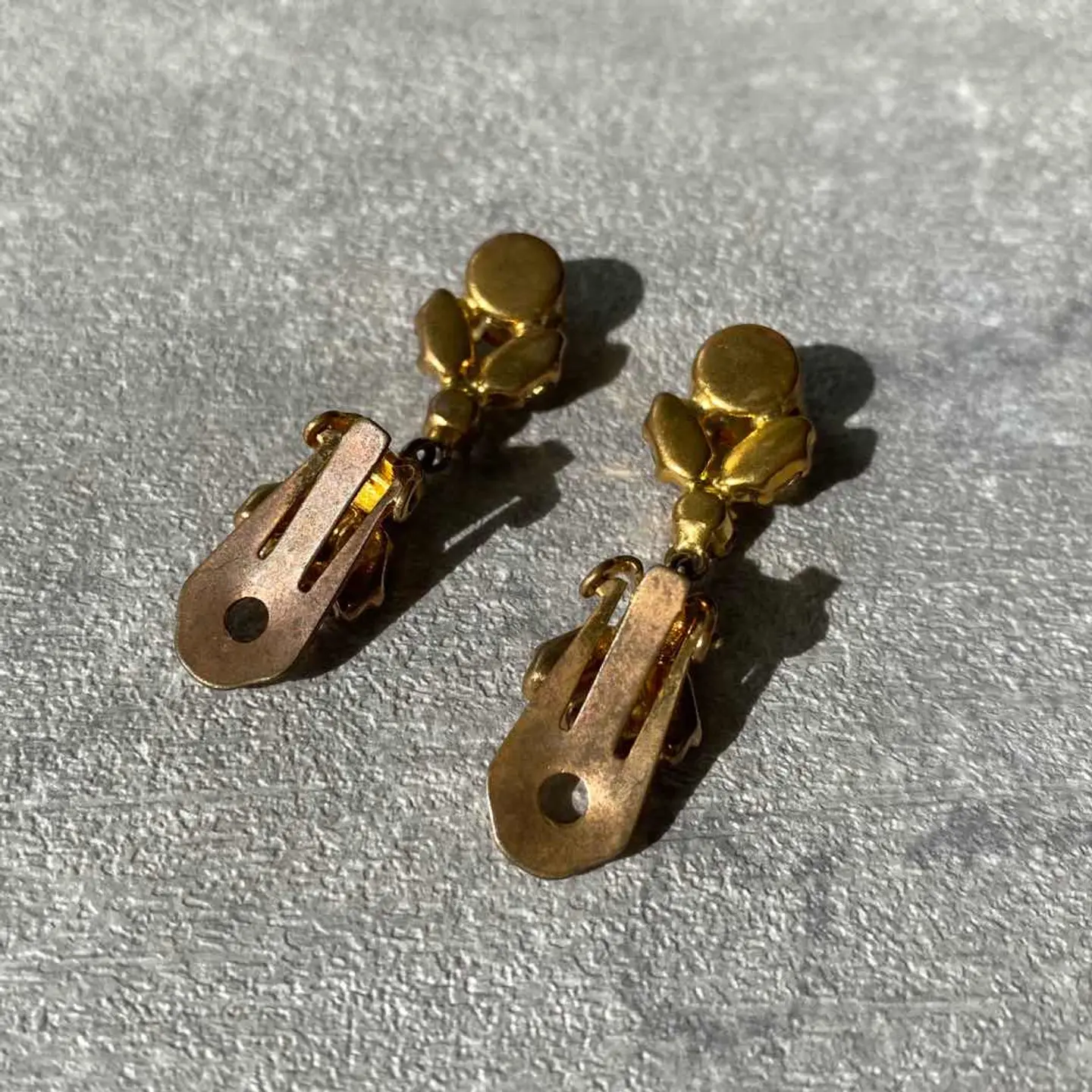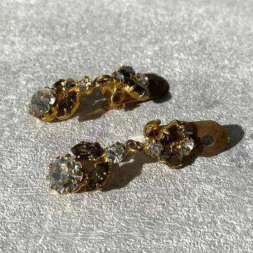 クリスタルがきらめくUSAヴィンテージイヤリング。古びたメタルとシックな色味のビジューがクラシカルな雰囲気。身に着けやすいサイズ感で古着やレトロコーデにもオススメです。 □Materials メタル(ゴールドメッキ)、ガラスストーン □Size 約H4.4×W1.2㎝ パーツ厚み 約8㎜ □Condition【C】 経年によるメッキ変色がみられます。中古品であることをご理解のうえお買い求めください。 【S】未使用 【A】未使用に近い 【B】やや使用感あり 【C】使用感あり Item No.2488