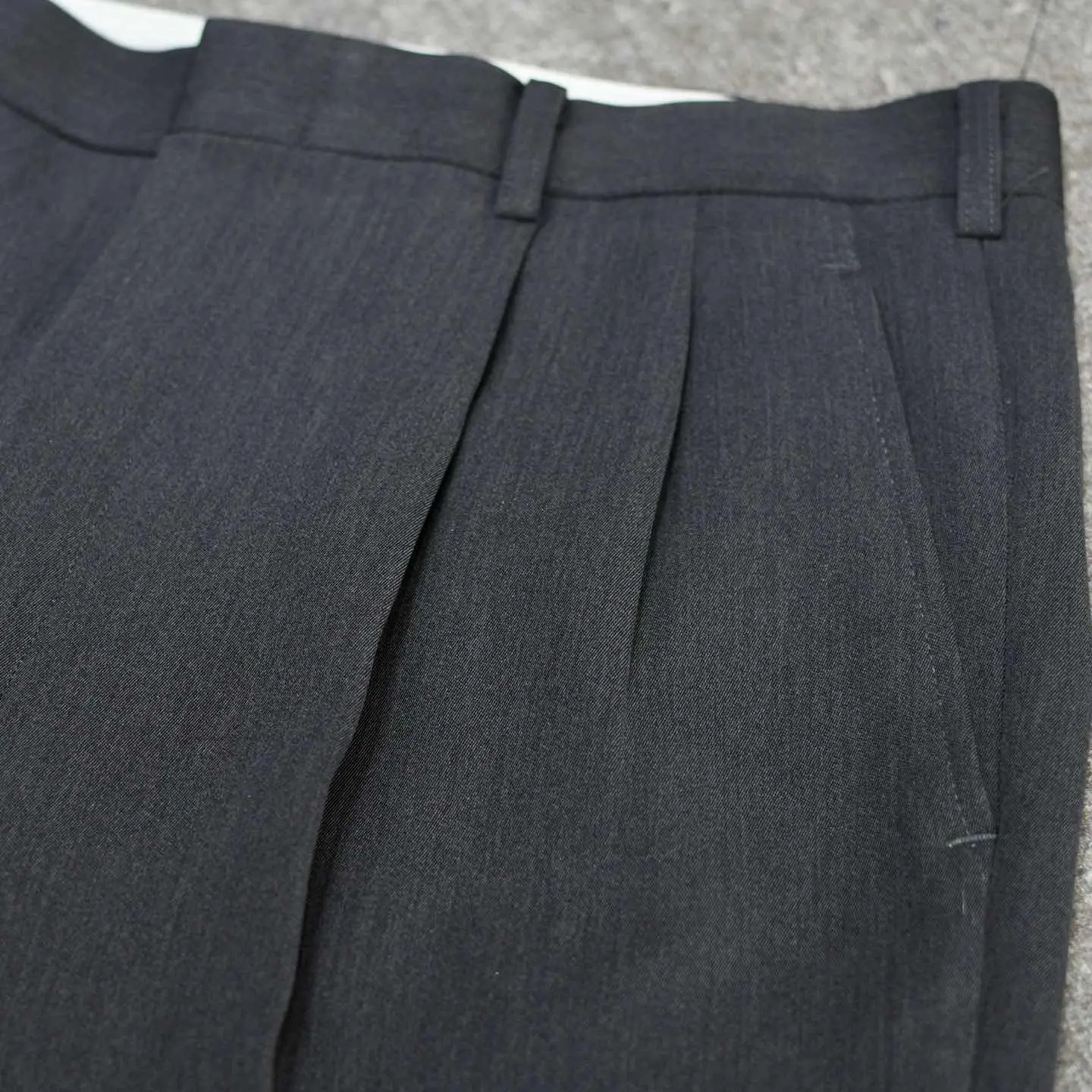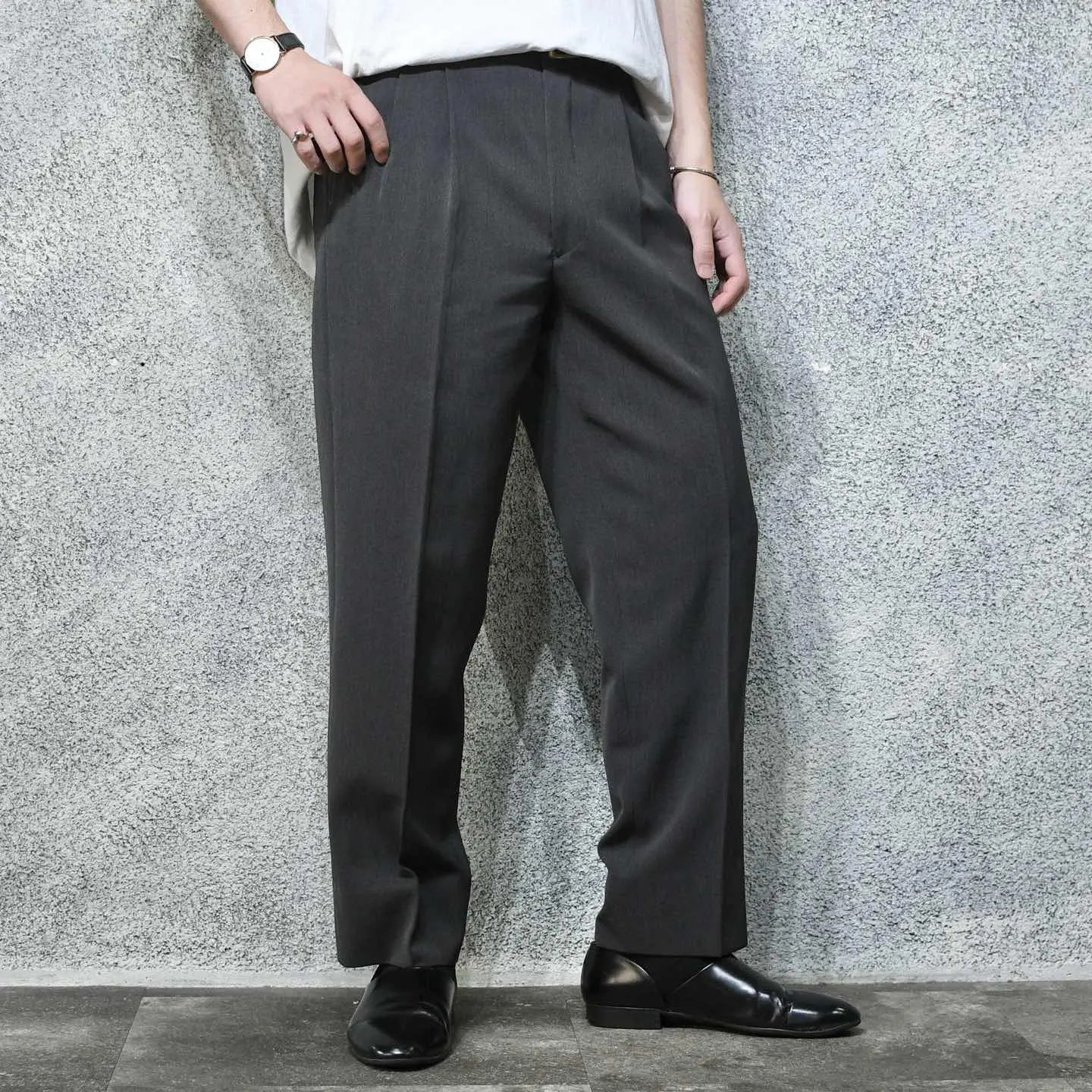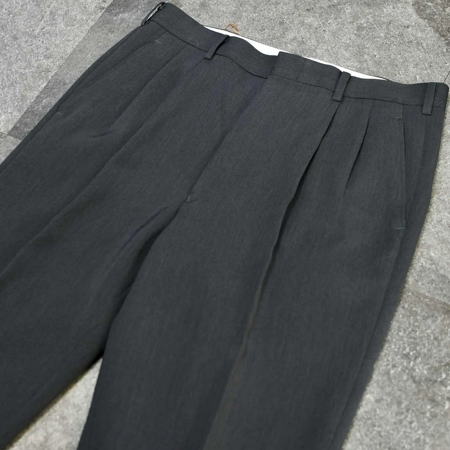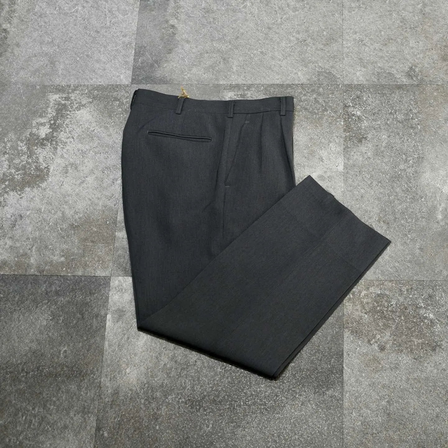 SIZE:- ウエスト80cm 総丈99cm 股下71cm わたり34cm 裾幅22cm fabric/質感よりpoly 着用画像 177cm/64kg "楽に様になるスラックス"として提案したい スラックス。 シワになりにくく、通年履けるさらっとした ポリ生地は、自分のような横着しがちな方にも 問題なく。 ポリ生地となると、どこかチープな印象が 否めない個体が多いですが、 こちらはヒップポケットの両玉縁ポケットなど、 作りにも拘りがうかがえる一本。 チャコールグレーの大人びた雰囲気も相まって、 気負う事なくタウンユースに穿ける スラックスです。 雨の日にも心配なく穿けるのも◎ ※裾上げ等のレングス直しにつきましては、 購入前に、必ずご連絡お願い致します。 また、購入後の直しには対応出来かねます。 ※撮影状況により、実物と多少色が異なる 場合がございます。 ※古着を取り扱っているため、気づかない汚れや ほつれがある場合がございます。 予めご了承ください。 ※サイズは着用感で選んでおり、 表記サイズではございません。 表記サイズは説明欄の最初に記載しております。 オーバーサイズ old vintage ヴィンテージ used 80's 90's アメリカ古着 ユーロ古着 メンズ レディース POLO RALPH LAUREN Eddie Bauer OLD GAP Eddie Bauer LANDS' END ランズエンド LLBean エルエルビーン オールドギャップ エディーバウアー ラルフローレン ブルックスブラザーズ Brooks Brothers ワイドパンツ 灰色 グレー などがお好きな方 #vintage #オーバーサイズ #old #used #90s #80s #古着 #ヴィンテージ #アメリカ古着 #ユーロ古着 #古着男子 #古着女子 #LLBean #エルエルビーン #EddieBauer #エディーバウアー #oldgap #オールドギャップ #LANDSEND #ランズエンド #NAUTICA #ノーティカ #ラルフローレン #POLORALPHLAUREN #ブルックスブラザーズ #BrooksBrothers #ワイドパンツ #タックパンツ #スラックス