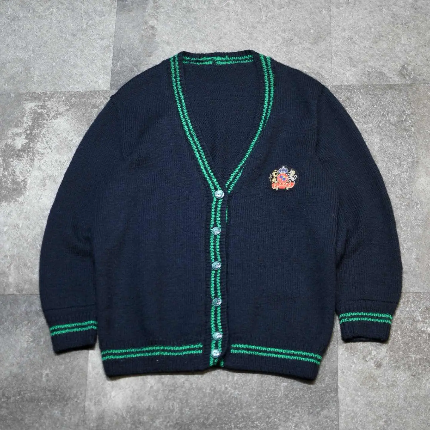 着丈68cm 肩幅48cm 身幅59cm 袖丈57cm fabric/質感よりwool・acryl 着用画像 177cm/64kg 実際に学校で着られていたであろう スクールカーディガン。 丸みを帯びた可愛いボタンや、縁に入る 緑のラインがアクセントになる逸品。 ※撮影状況により、実物と多少色が異なる場合が ございます。 ※古着を取り扱っているため、気づかない汚れや ほつれ等がある場合がございます。 予めご了承ください。 ※サイズは着用感で選んでおり、 表記サイズではございません。 表記サイズは説明欄の最初に記載しております。 古着 オーバーサイズ old vintage ヴィンテージ used 80's 90's アメリカ古着 ユーロ古着 メンズ レディース POLO RALPH LAUREN Eddie Bauer OLD GAP Eddie Bauer LANDS' END ランズエンド LLBean エルエルビーン オールドギャップ エディーバウアー ラルフローレン ブルックスブラザーズ Brooks Brothers アクリルカーディガン ウールカーディガン チルデンニット ニット セーター などがお好きな方 #vintage #オーバーサイズ #old #used #90s #80s #古着 #ヴィンテージ #アメリカ古着 #ユーロ古着 #古着男子 #古着女子 #LLBean #エルエルビーン #EddieBauer #エディーバウアー #oldgap #オールドギャップ #LANDSEND #ランズエンド #NAUTICA #ノーティカ #ラルフローレン #POLORALPHLAUREN #ブルックスブラザーズ #BrooksBrothers #アクリルカーディガン #カーディガン #デザインカーディガン #スクールカーディガン #ウールカーディガン #ニット #セーター