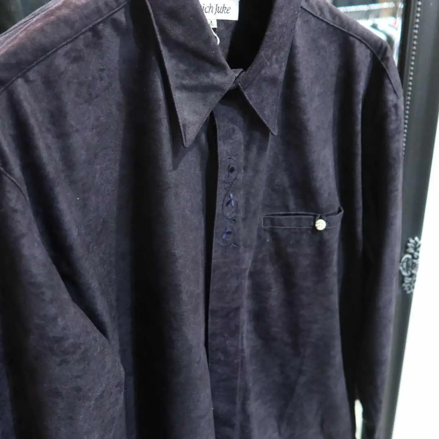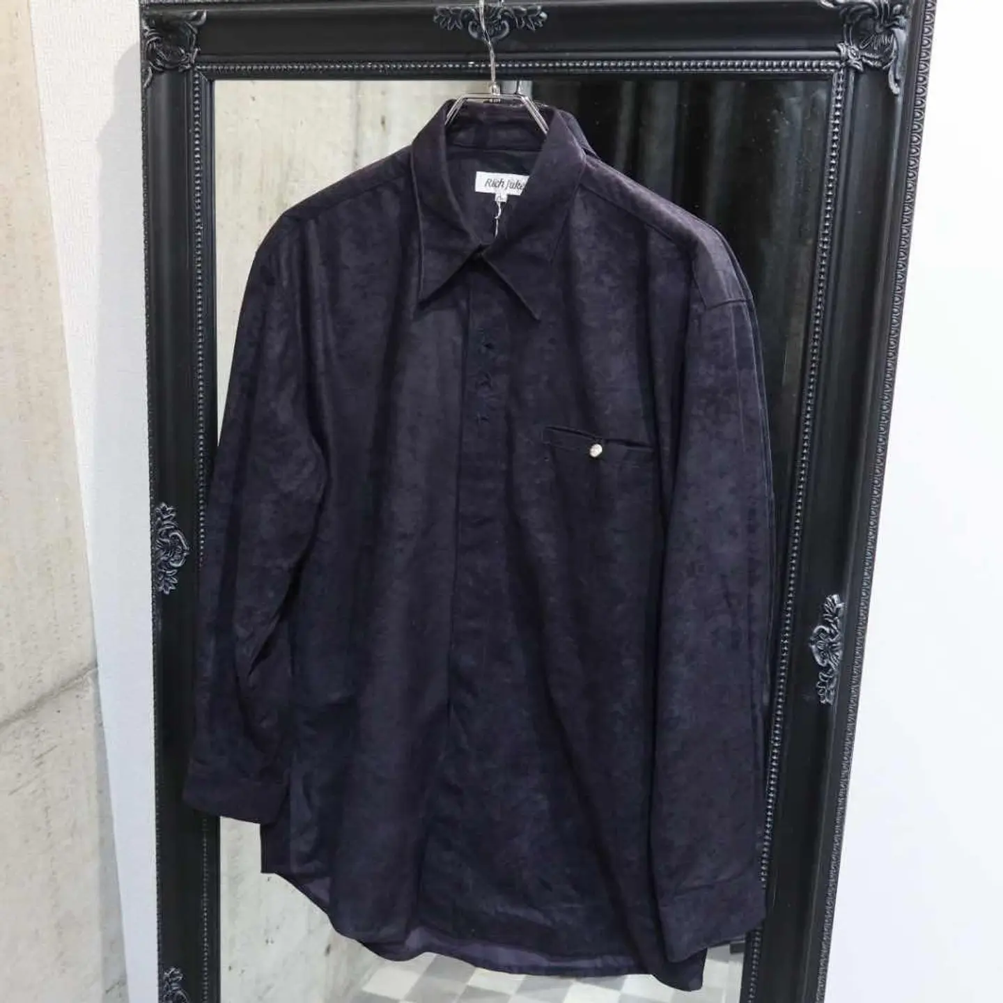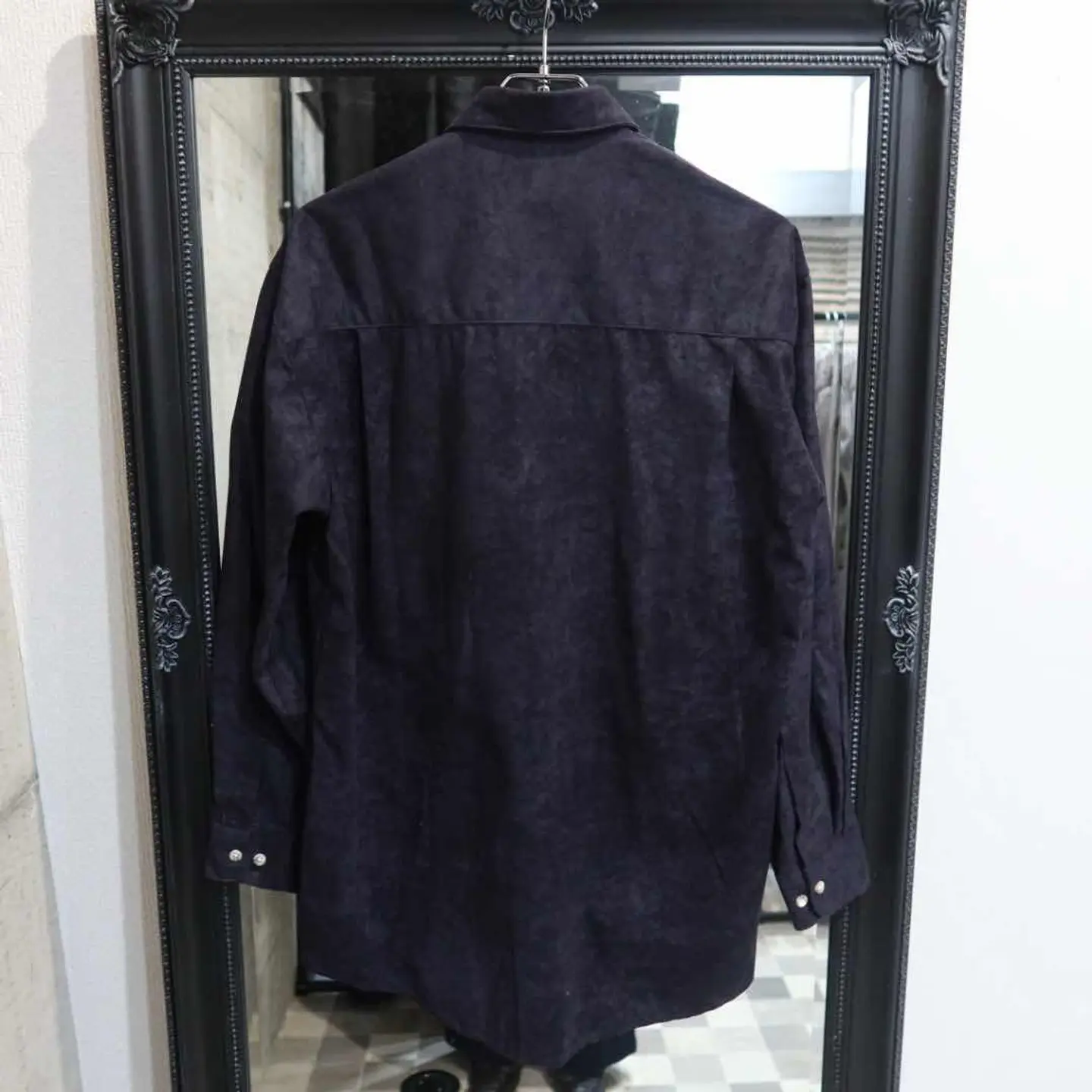 【商品名】 suede purple shirt 【アイテムについて】 スエード感がある生地ですが、レザーではなくポリエステルなのではないかと推察。ちなみに洗濯できました。 【サイズ】 肩幅 : 50 着丈 : 81 袖丈 : 56 身幅 : 58 【素材】 【コンディション】 傷や汚れはございません。