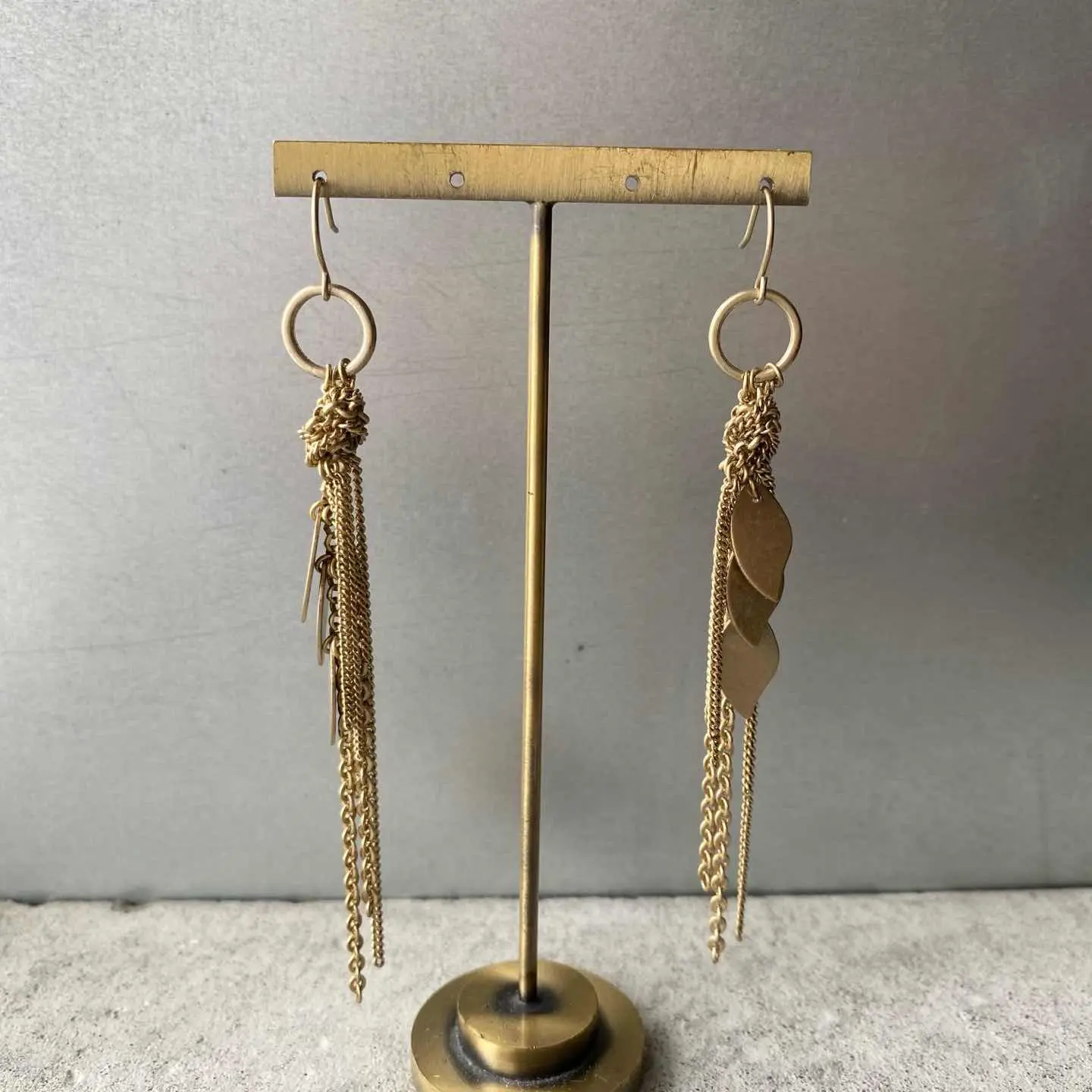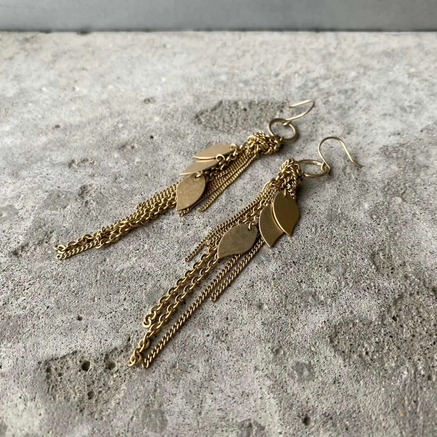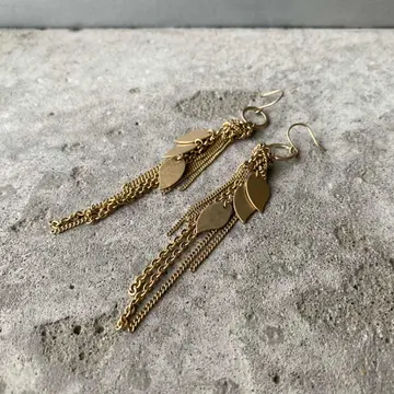 スタイリッシュな雰囲気のUSAヴィンテージピアス。チェーンとリーフパーツが揺らめく個性的なデザイン。肌馴染みの良いマットゴールドの色合いもポイント。シンプルなスタイルに合わせるだけでお洒落な雰囲気にしてくれます。 □Materials メタル(マットゴールドメッキ) □Size 約H10.5×W1㎝ □Condition【B】 目立ったダメージはございません。中古品であることをご理解のうえお買い求めください。ご購入前に必ずショッピングガイドのご確認をお願いいたします。 【S】未使用 【A】未使用に近い 【B】やや使用感あり 【C】使用感あり Item No.2983