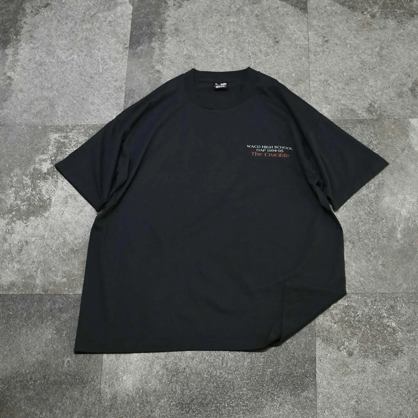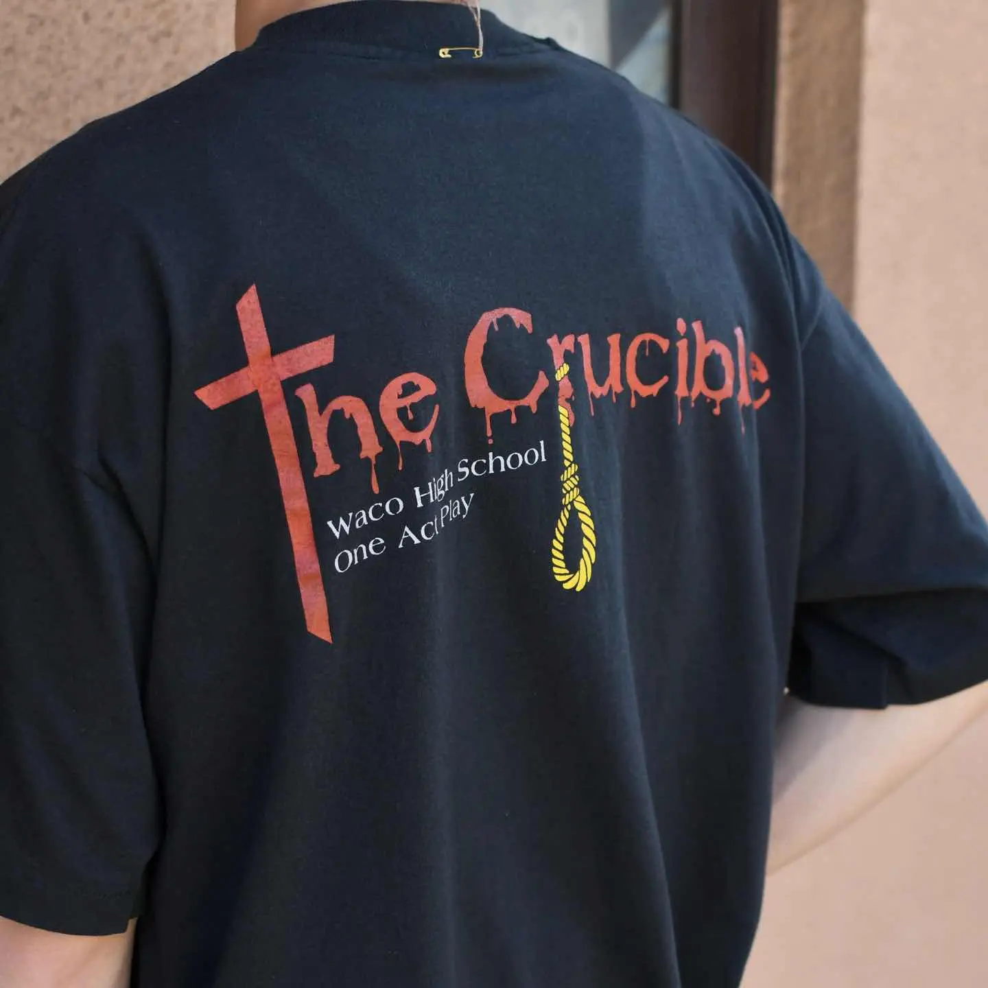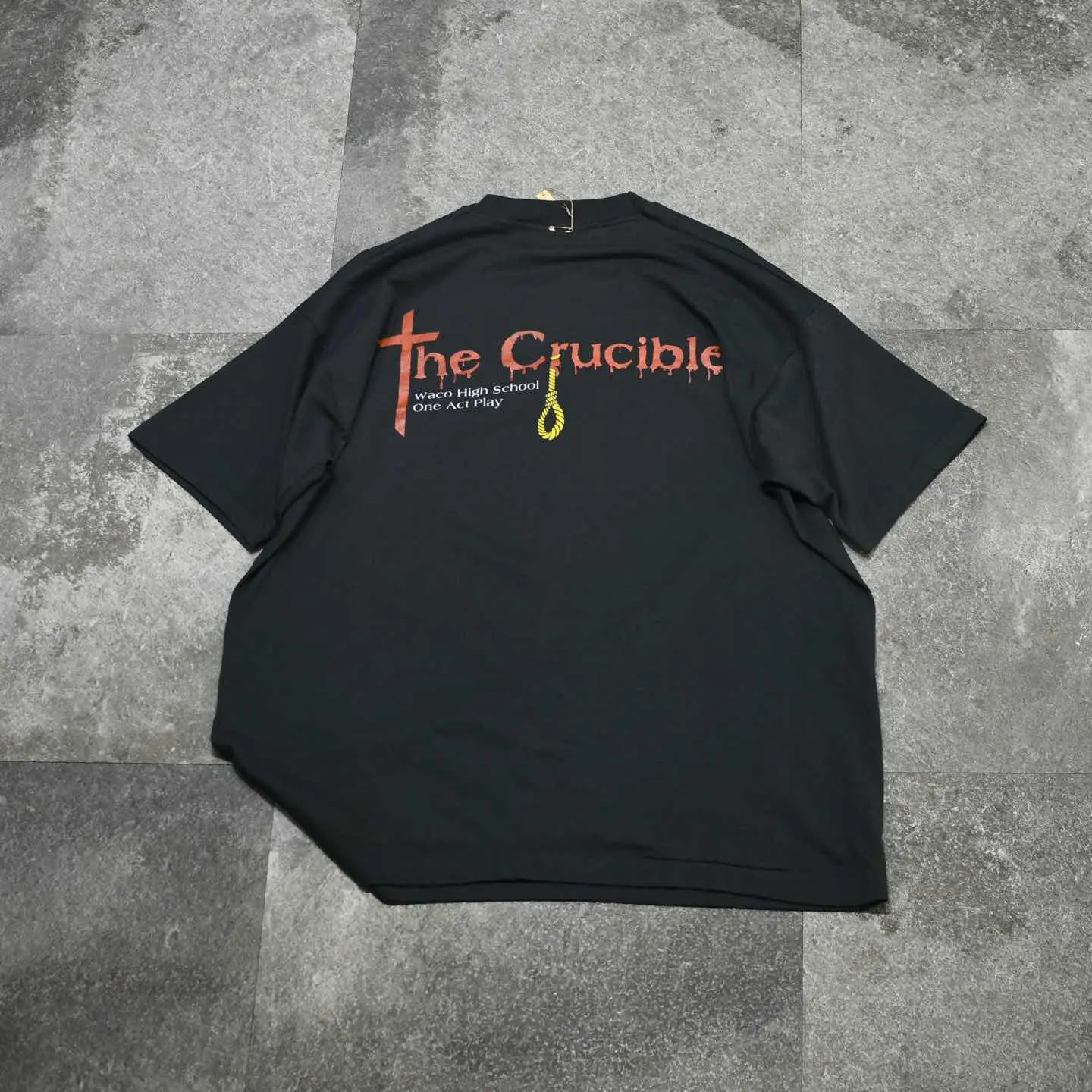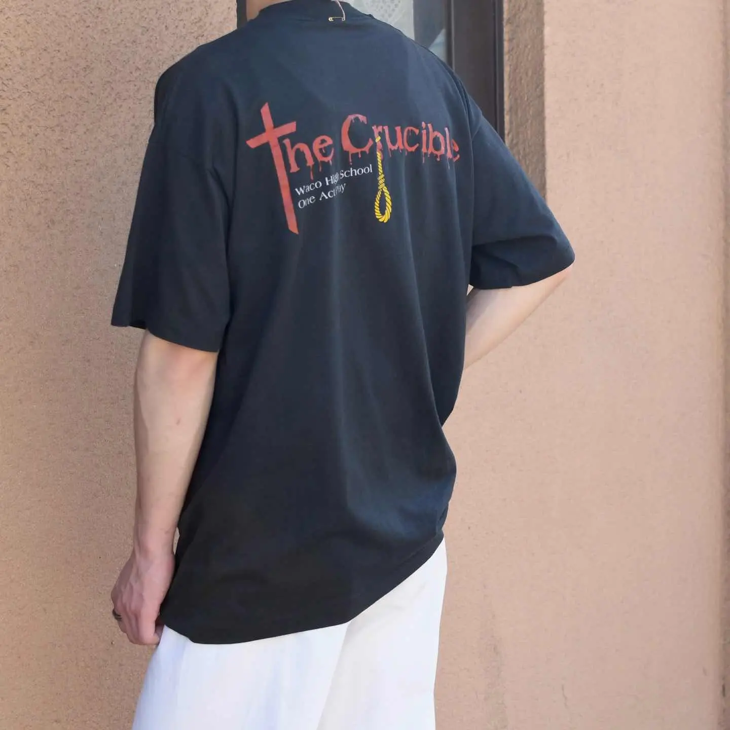 SIZE:XL 着丈71cm 肩幅60cm 身幅61cm 袖丈21cm(シングルステッチ) fabric/cotton・poly made in USA 着用画像 173cm/56kg アメリカ、テキサス州にあるウェーコ高校が 上演した”The Crucible”という魔女裁判を描いた 作品の記念Tシャツ。 バックプリントの字体やロープの輪など ダークな雰囲気に惹かれた1着です。 シンプルながら映えるプリントは、 どこかバンTのようでもあり、 野暮ったいパンツとも難なくまとまりそうです。 ※撮影状況により、実物と多少色が異なる場合が ございます。 ※古着を取り扱っているため、気づかない汚れや ほつれ等がある場合がございます。 予めご了承ください。 ※サイズは着用感で選んでおり、 表記サイズではございません。 表記サイズは説明欄の最初に記載しております。 古着 オーバーサイズ old vintage ヴィンテージ used 80's 90's アメリカ古着 ユーロ古着 メンズ レディース POLO RALPH LAUREN Eddie Bauer OLD GAP Eddie Bauer LANDS' END ランズエンド LLBean エルエルビーン オールドギャップ エディーバウアー ラルフローレン ブルックスブラザーズ Brooks Brothers ブラック 黒 両面プリント 半袖Tシャツ バックプリント などがお好きな方 #vintage #オーバーサイズ #old #used #90s #80s #古着 #ヴィンテージ #アメリカ古着 #ユーロ古着 #古着男子 #古着女子 #LLBean #エルエルビーン #EddieBauer #エディーバウアー #oldgap #オールドギャップ #LANDSEND #ランズエンド #NAUTICA #ノーティカ #ラルフローレン #POLORALPHLAUREN #ブルックスブラザーズ #BrooksBrothers #半袖Tシャツ #シングルステッチ #両面プリント #プリントTシャツ #バックプリント #Tシャツ #カレッジTシャツ
