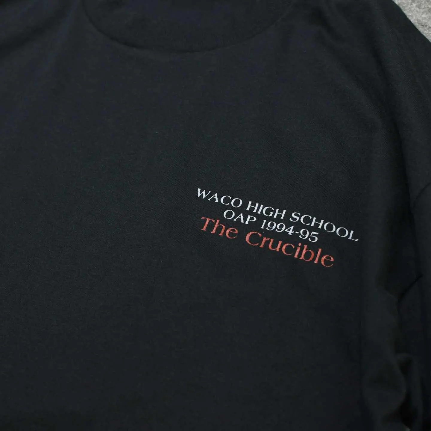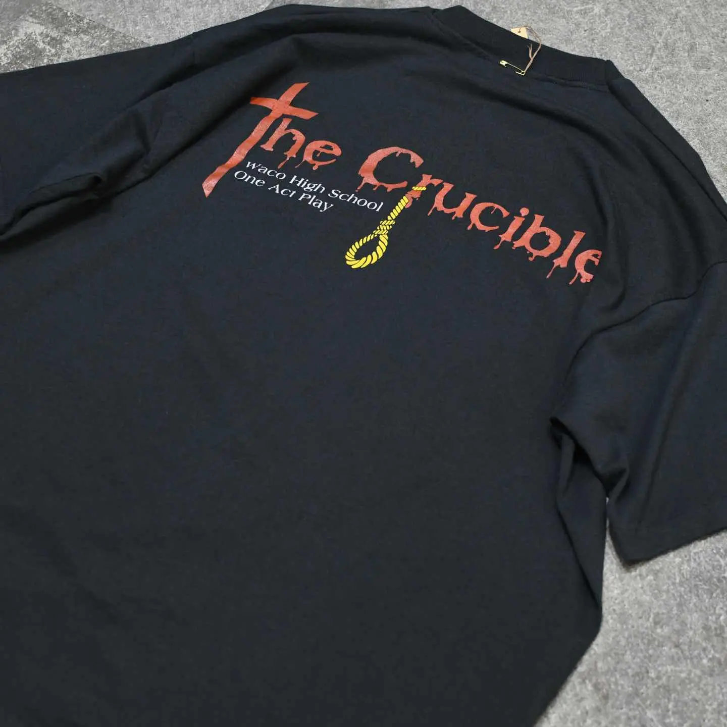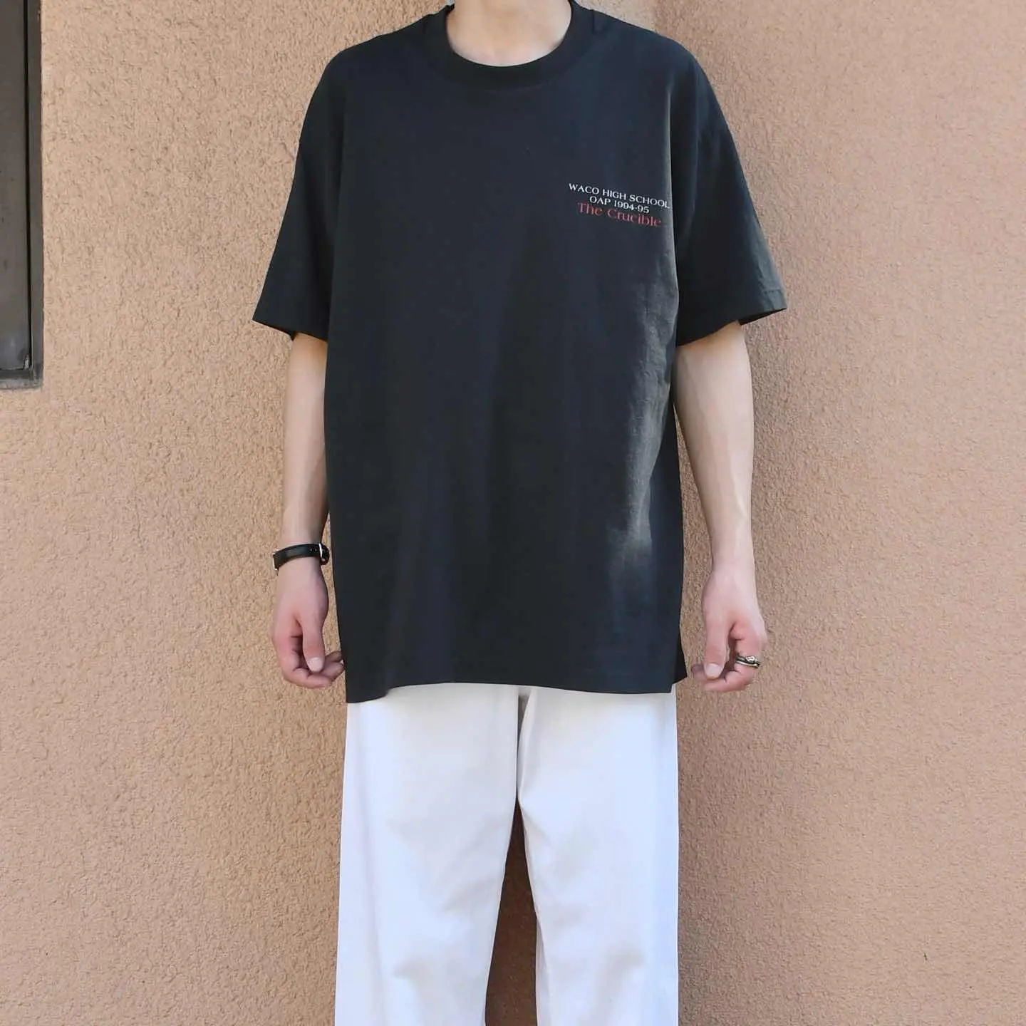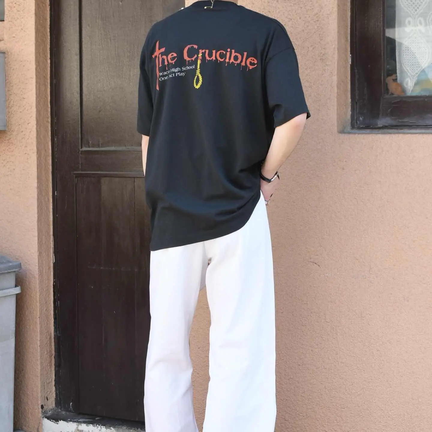 SIZE:XL 着丈71cm 肩幅60cm 身幅61cm 袖丈21cm(シングルステッチ) fabric/cotton・poly made in USA 着用画像 173cm/56kg アメリカ、テキサス州にあるウェーコ高校が 上演した”The Crucible”という魔女裁判を描いた 作品の記念Tシャツ。 バックプリントの字体やロープの輪など ダークな雰囲気に惹かれた1着です。 シンプルながら映えるプリントは、 どこかバンTのようでもあり、 野暮ったいパンツとも難なくまとまりそうです。 ※撮影状況により、実物と多少色が異なる場合が ございます。 ※古着を取り扱っているため、気づかない汚れや ほつれ等がある場合がございます。 予めご了承ください。 ※サイズは着用感で選んでおり、 表記サイズではございません。 表記サイズは説明欄の最初に記載しております。 古着 オーバーサイズ old vintage ヴィンテージ used 80's 90's アメリカ古着 ユーロ古着 メンズ レディース POLO RALPH LAUREN Eddie Bauer OLD GAP Eddie Bauer LANDS' END ランズエンド LLBean エルエルビーン オールドギャップ エディーバウアー ラルフローレン ブルックスブラザーズ Brooks Brothers ブラック 黒 両面プリント 半袖Tシャツ バックプリント などがお好きな方 #vintage #オーバーサイズ #old #used #90s #80s #古着 #ヴィンテージ #アメリカ古着 #ユーロ古着 #古着男子 #古着女子 #LLBean #エルエルビーン #EddieBauer #エディーバウアー #oldgap #オールドギャップ #LANDSEND #ランズエンド #NAUTICA #ノーティカ #ラルフローレン #POLORALPHLAUREN #ブルックスブラザーズ #BrooksBrothers #半袖Tシャツ #シングルステッチ #両面プリント #プリントTシャツ #バックプリント #Tシャツ #カレッジTシャツ