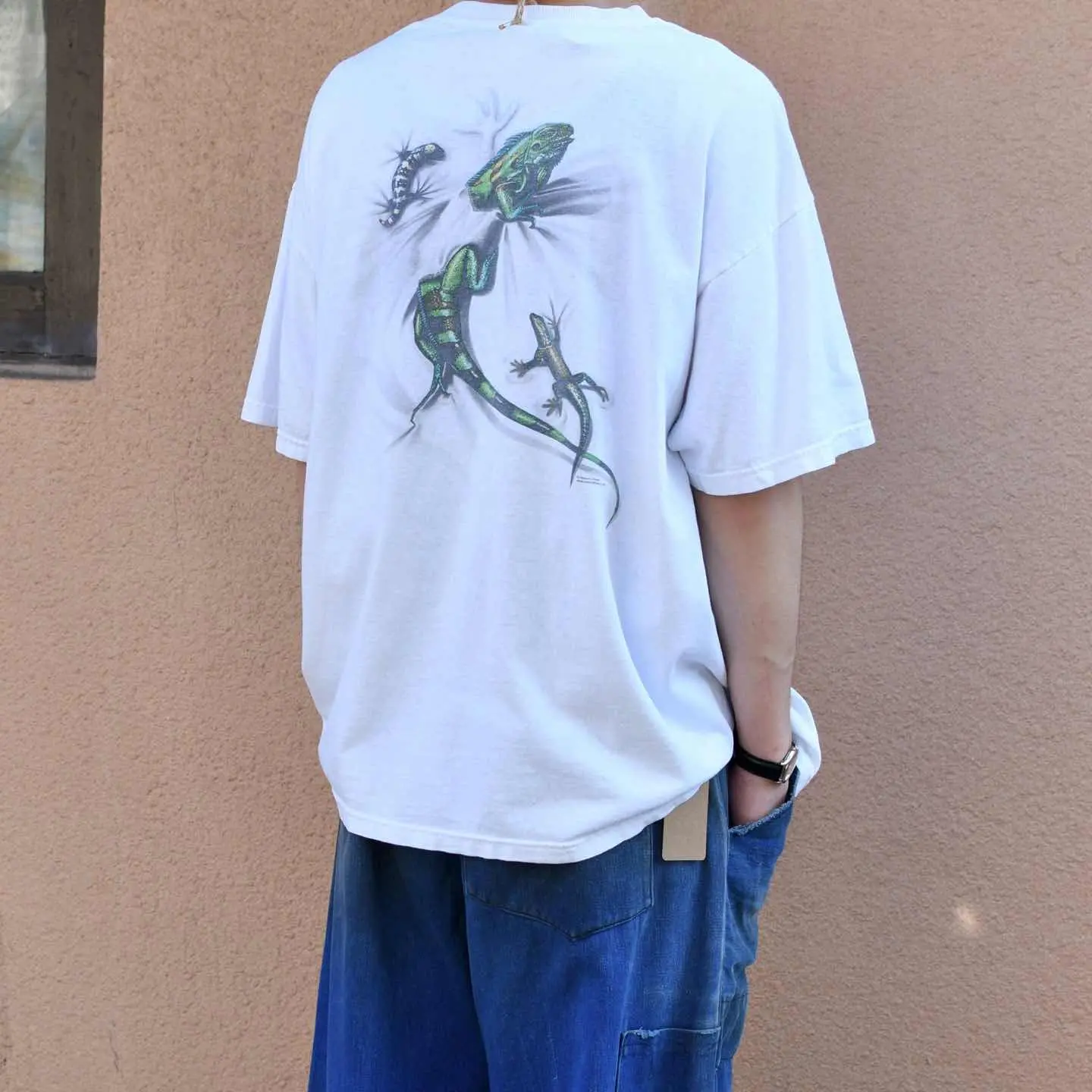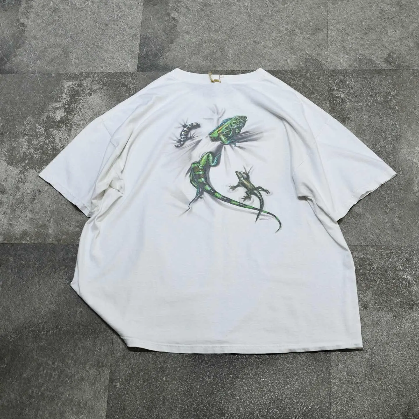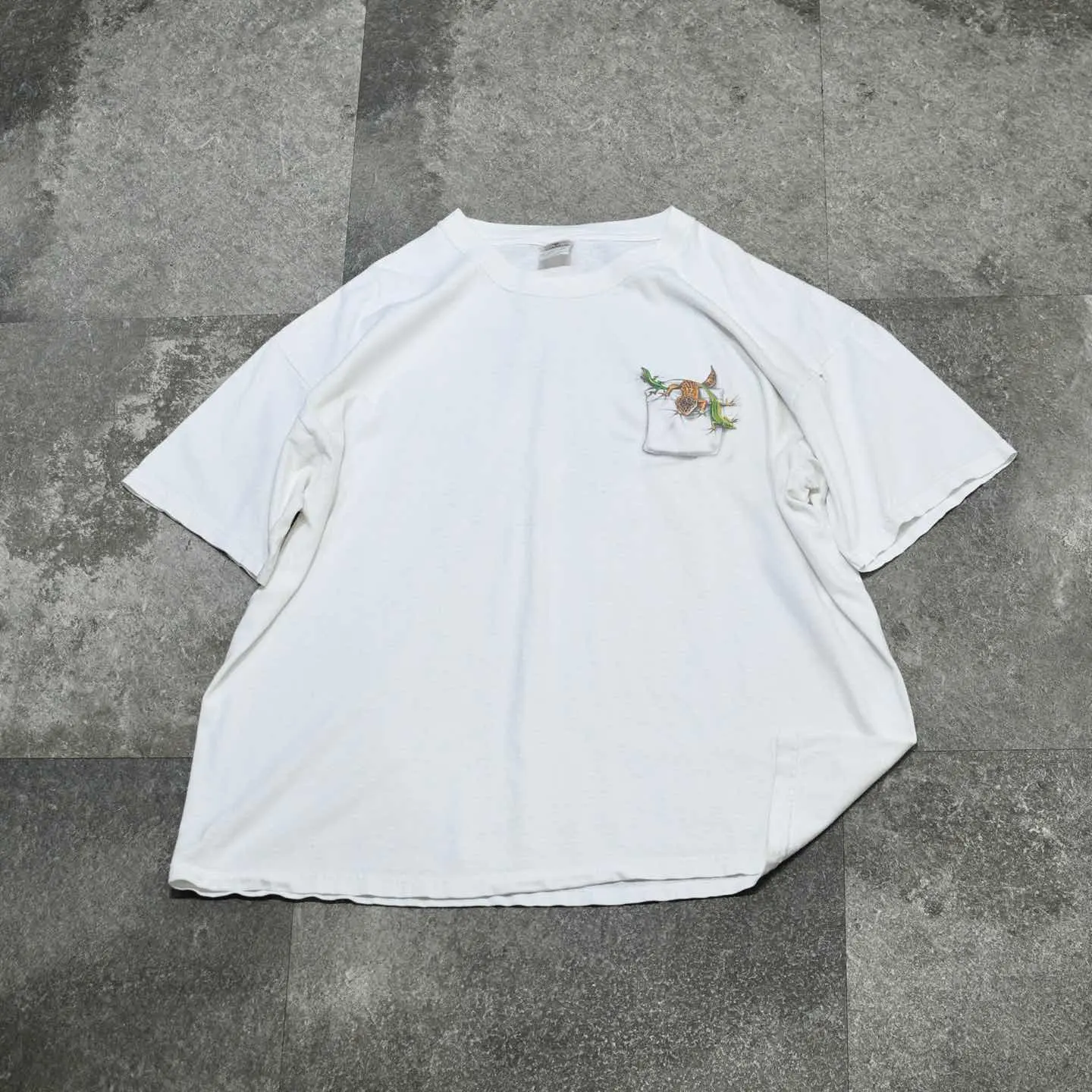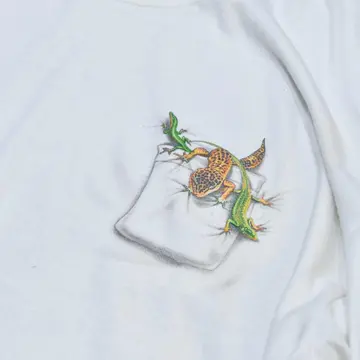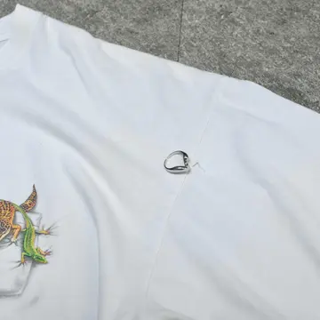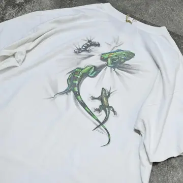 SIZE:XL 着丈68cm 肩幅64cm 身幅66cm 袖丈21cm(ダブルステッチ) fabric/cotton 着用画像 173cm/56kg 背面、そして胸元に棲むトカゲ。 可愛すぎて推しなシャツ。 サイズバランスの整った、癖の無いシルエットも◎ 欲しいやつ... ※左肩付近にダメージあり。 ※撮影状況により、実物と多少色が異なる場合が ございます。 ※古着を取り扱っているため、気づかない汚れや ほつれ等がある場合がございます。 予めご了承ください。 ※サイズは着用感で選んでおり、 表記サイズではございません。 表記サイズは説明欄の最初に記載しております。 古着 オーバーサイズ old vintage ヴィンテージ used 80's 90's アメリカ古着 ユーロ古着 メンズ レディース POLO RALPH LAUREN Eddie Bauer OLD GAP Eddie Bauer LANDS' END ランズエンド LLBean エルエルビーン オールドギャップ エディーバウアー ラルフローレン ブルックスブラザーズ Brooks Brothers 半袖Tシャツ アニマルプリント 白Tシャツ バックプリント などがお好きな方 #vintage #オーバーサイズ #old #used #90s #80s #古着 #ヴィンテージ #アメリカ古着 #ユーロ古着 #古着男子 #古着女子 #LLBean #エルエルビーン #EddieBauer #エディーバウアー #oldgap #オールドギャップ #LANDSEND #ランズエンド #NAUTICA #ノーティカ #ラルフローレン #POLORALPHLAUREN #ブルックスブラザーズ #BrooksBrothers #半袖Tシャツ #白Tシャツ #プリントTシャツ #アニマルプリント #アニマルTシャツ #Tシャツ #両面プリント #バックプリント