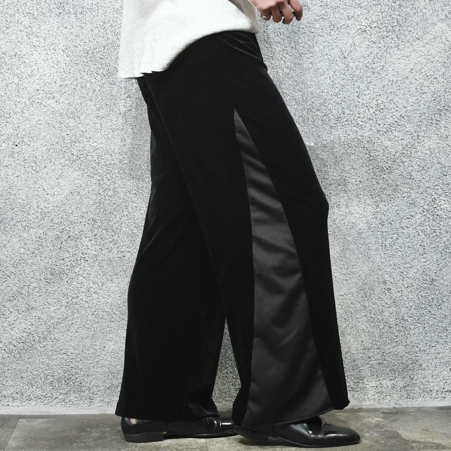 古着 リメイク ベロアパンツ イージーパンツ ワイドパンツ ブラック
