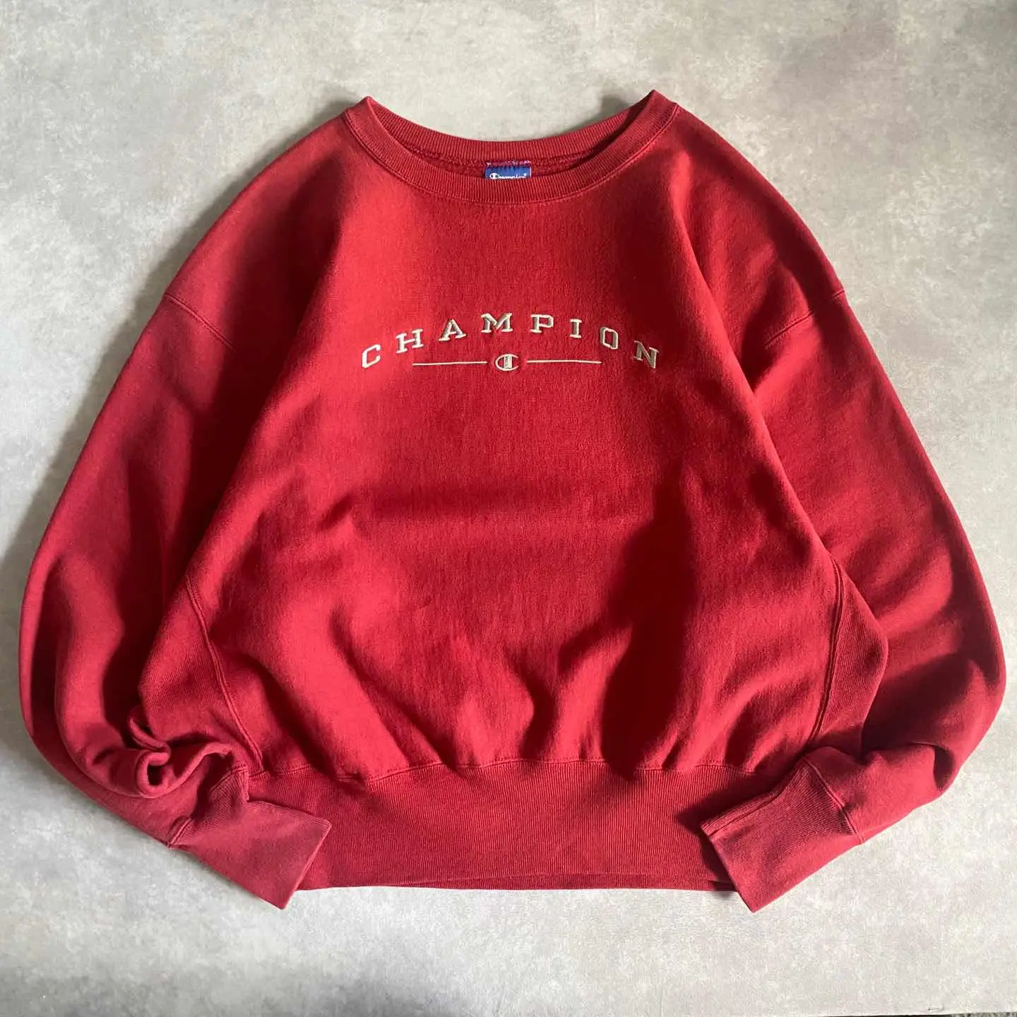 ○商品説明 champion reverse weave フロントにchampionと シルバーで刺繍された一枚。 最高に可愛いです。 気になった方は是非。 ○サイズ 表記 XL 平置き ・肩幅65cm ・身幅68cm ・袖丈65cm ・着丈64cm ○商品の状態 B A:使用感がほとんどなく、汚れやシミもなし B:多少使用感はあるが、汚れやシミも少ない C:使用感があり、汚れやシミがある D:使用感があり、大きな汚れや破れあり ○色 ワインレッド #champion #reverseweave #スウェットトレーナー #古着