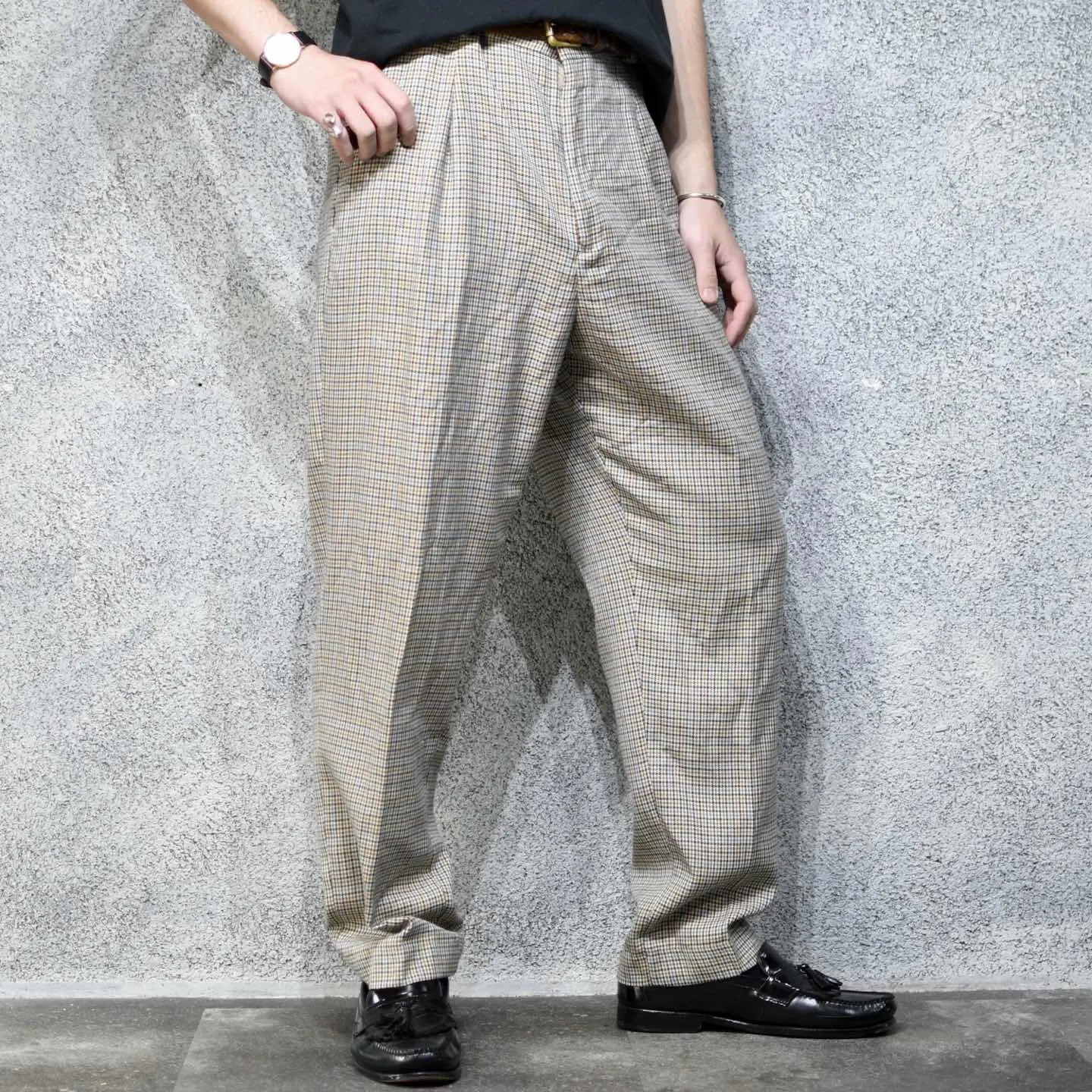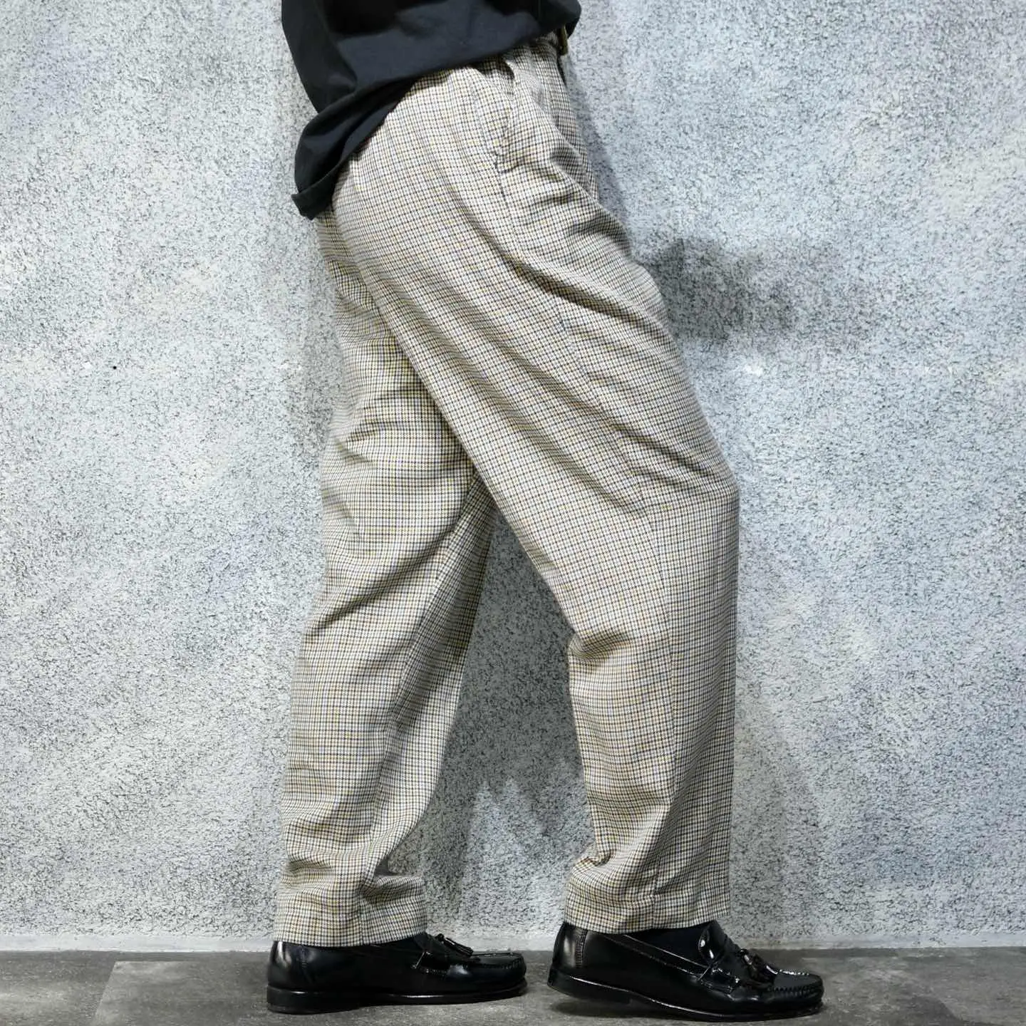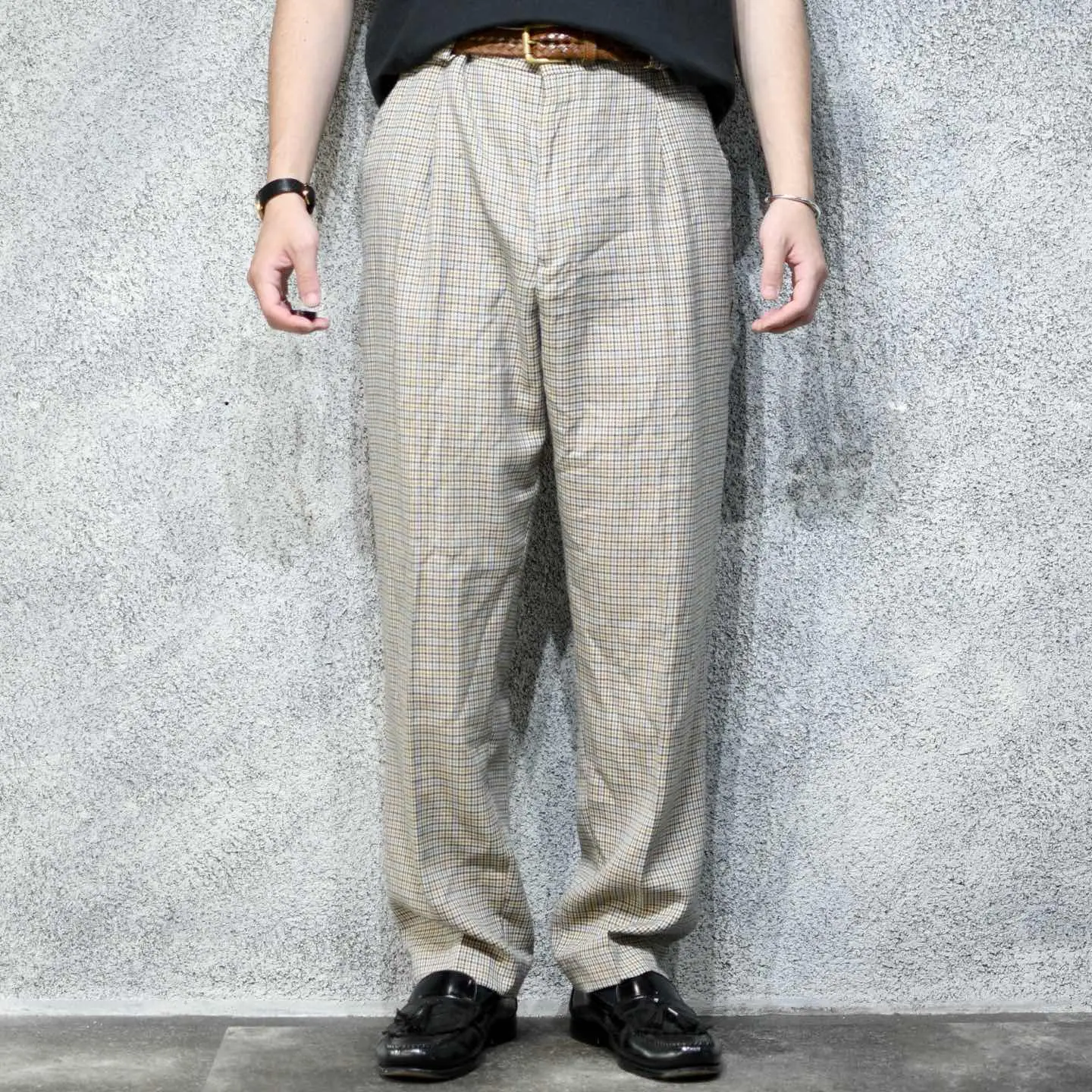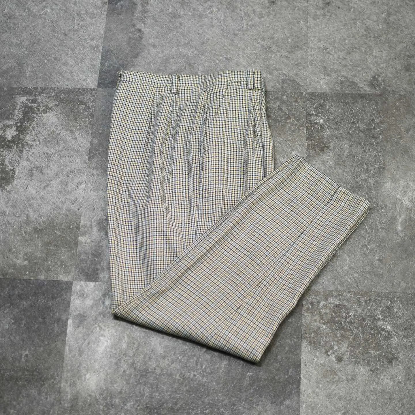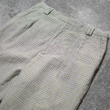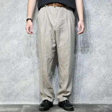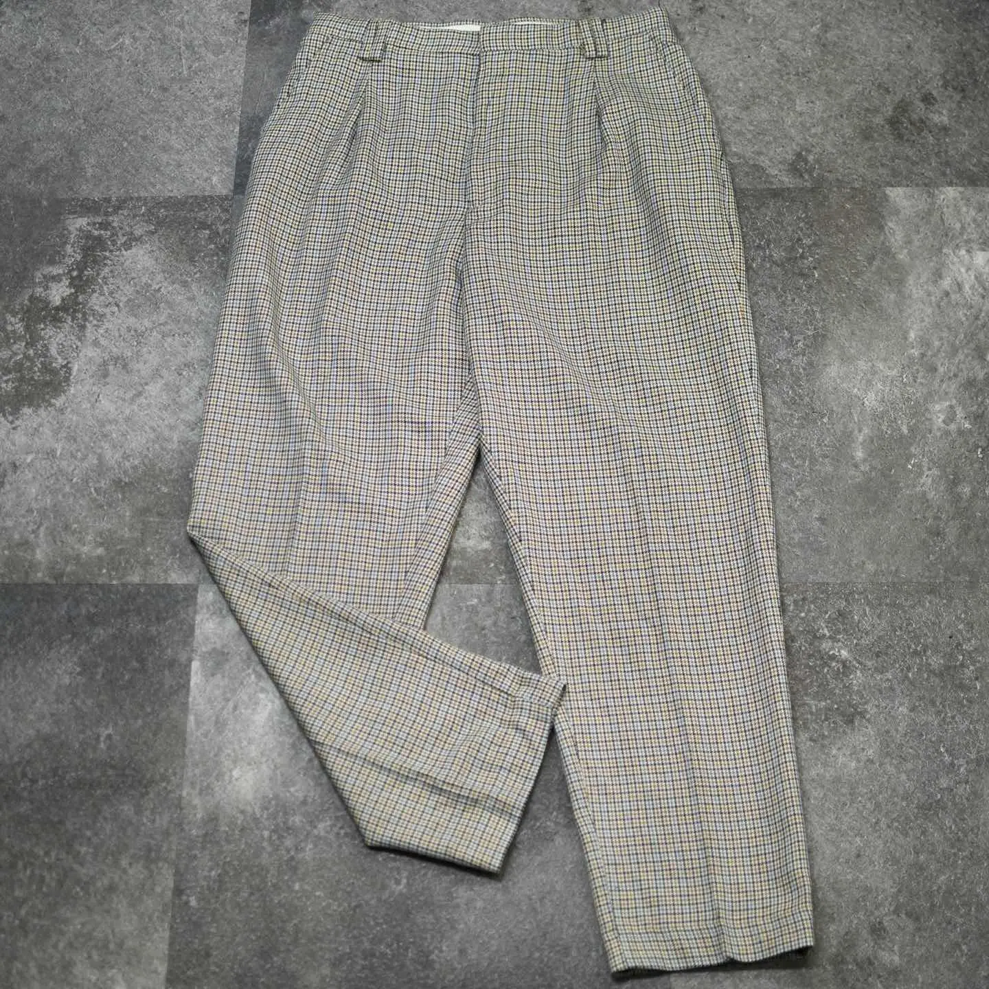 ウエスト81cm 総丈105cm 股下74cm わたり38cm 裾幅21cm fabric/poly・rayon 着用画像 177cm/64kg レーヨンを含んだ自然なシルエットと、 優しいチェック柄が特徴的なパンツ。 チェックパンツの中でも、細かなチェック柄で コーデに落とし込み易く、太過ぎたり細過ぎたり することの無いキレイなシルエットは、 幅広いコーデに落とし込める、汎用性にも長けた 1本。 個人的に好きな色味だからこそ、拘った1本です。 ※裾上げ等のレングス直しにつきましては、 別途料金が発生する場合がございます。 購入前に、必ずご連絡お願い致します。 また、購入後の直しには対応出来かねます。 ※撮影状況により、実物と多少色が異なる 場合がございます。 ※古着を取り扱っているため、気づかない汚れや ほつれがある場合がございます。 予めご了承ください。 ※サイズは着用感で選んでおり、表記サイズではございません。 古着 オーバーサイズ old vintage ヴィンテージ used 80's 90's アメリカ古着 ユーロ古着 メンズ レディース POLO RALPH LAUREN Eddie Bauer OLD GAP Eddie Bauer LANDS' END ランズエンド LLBean エルエルビーン オールドギャップ エディーバウアー ラルフローレン ブルックスブラザーズ Brooks Brothers ベージュ ワイドパンツ テーパードパンツ などがお好きな方 #vintage #オーバーサイズ #old #used #90s #80s #古着 #ヴィンテージ #アメリカ古着 #ユーロ古着 #古着男子 #古着女子 #LLBean #エルエルビーン #EddieBauer #エディーバウアー #oldgap #オールドギャップ #LANDSEND #ランズエンド #NAUTICA #ノーティカ #ラルフローレン #POLORALPHLAUREN #ブルックスブラザーズ #BrooksBrothers #ワイドパンツ #レーヨンパンツ #スラックス #チェックパンツ #タックパンツ #テーパードパンツ