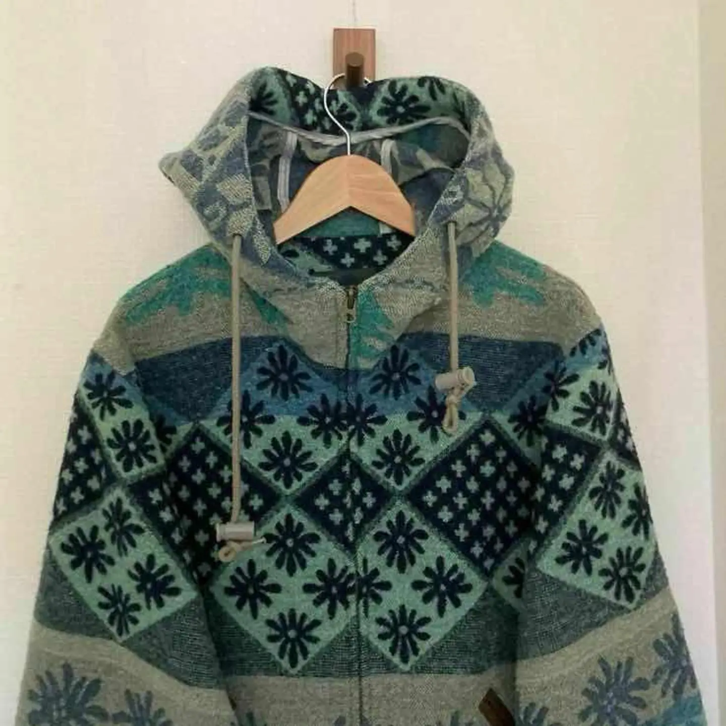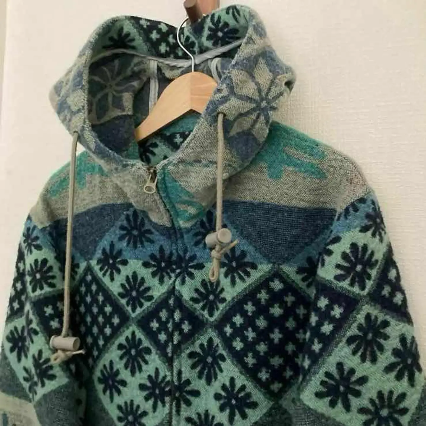 ブランド Crescent Max 商品名 Crescent Max ウール混パーカー フーディー ジップアップ 花柄 レトロ古着 サイズ Mサイズ 肩幅49.5㎝ 袖丈60㎝ 身幅56㎝ 着丈73㎝ カラー グリーン系 特記事項 ※表面にやや毛玉あり。 #ふくしるべのパーカー
