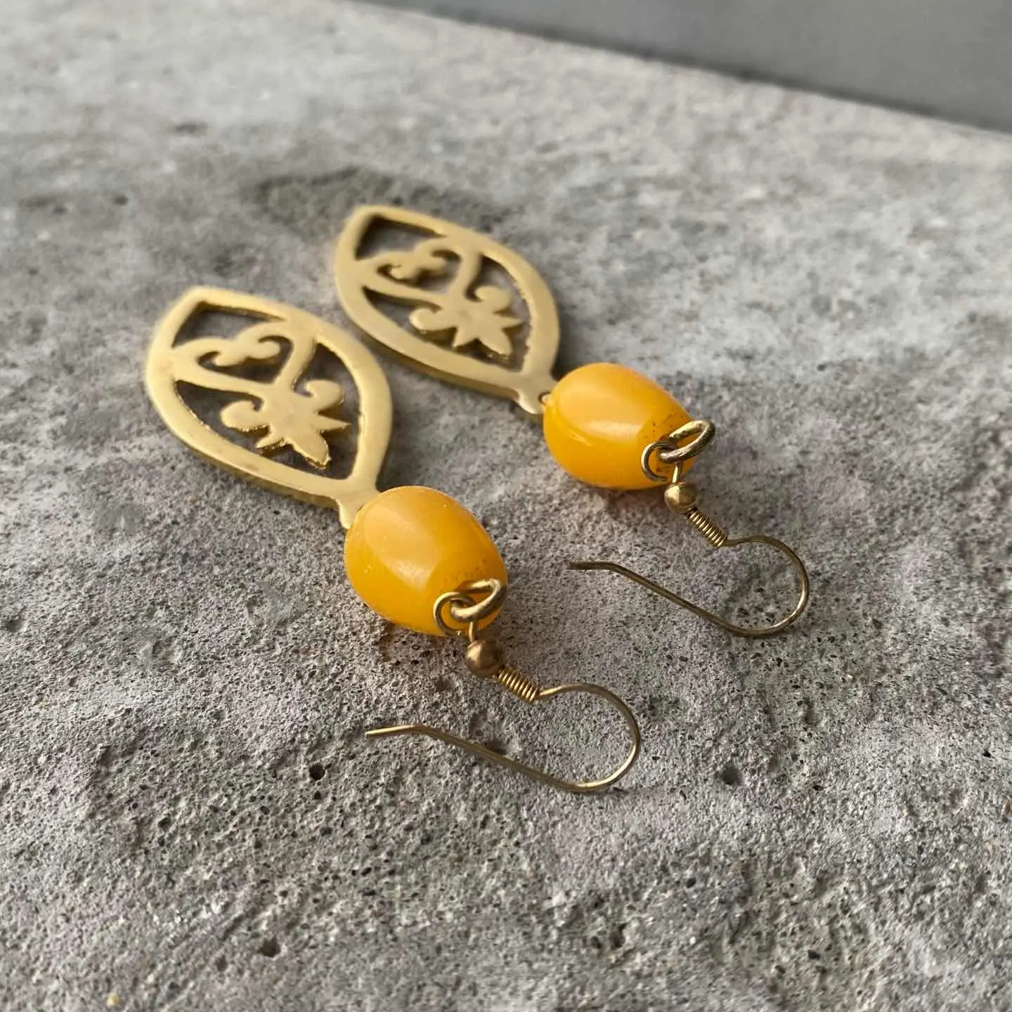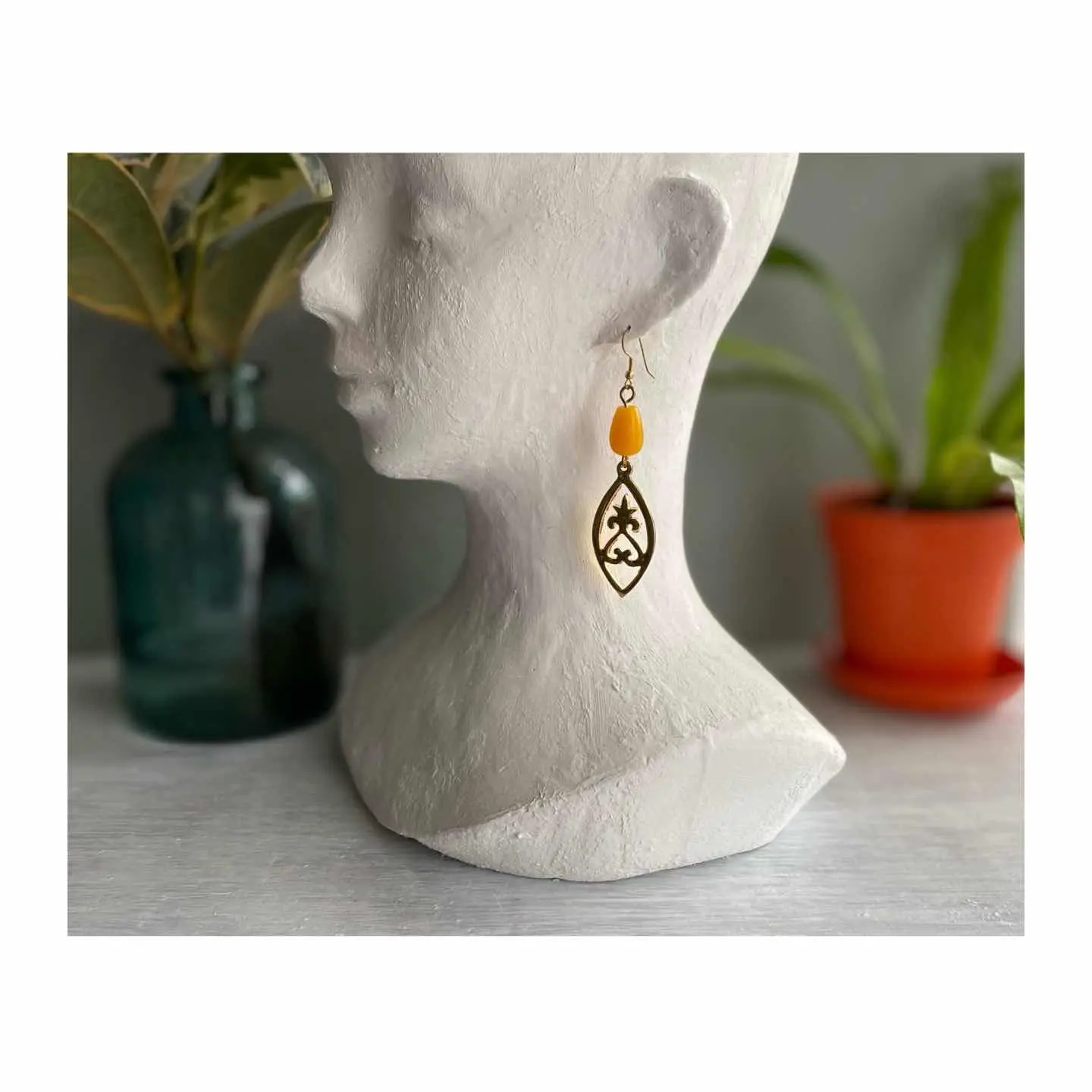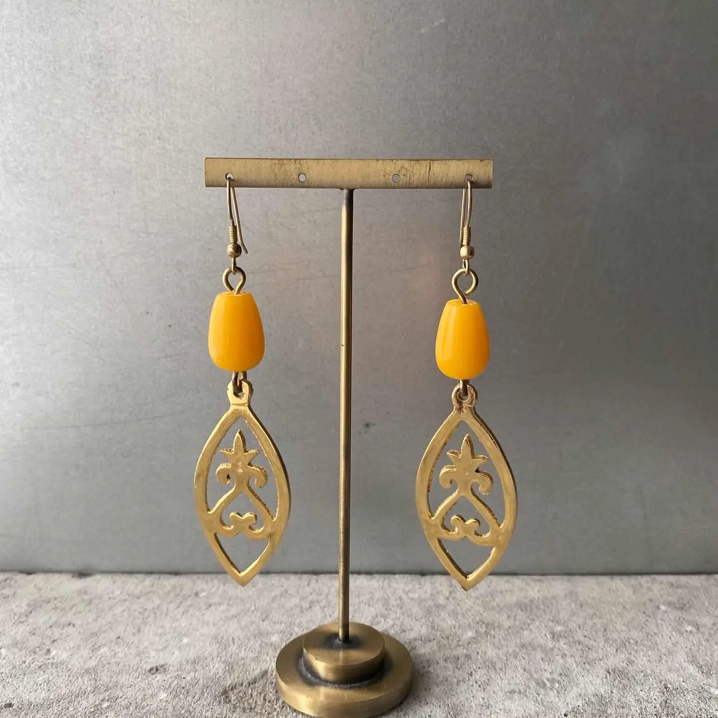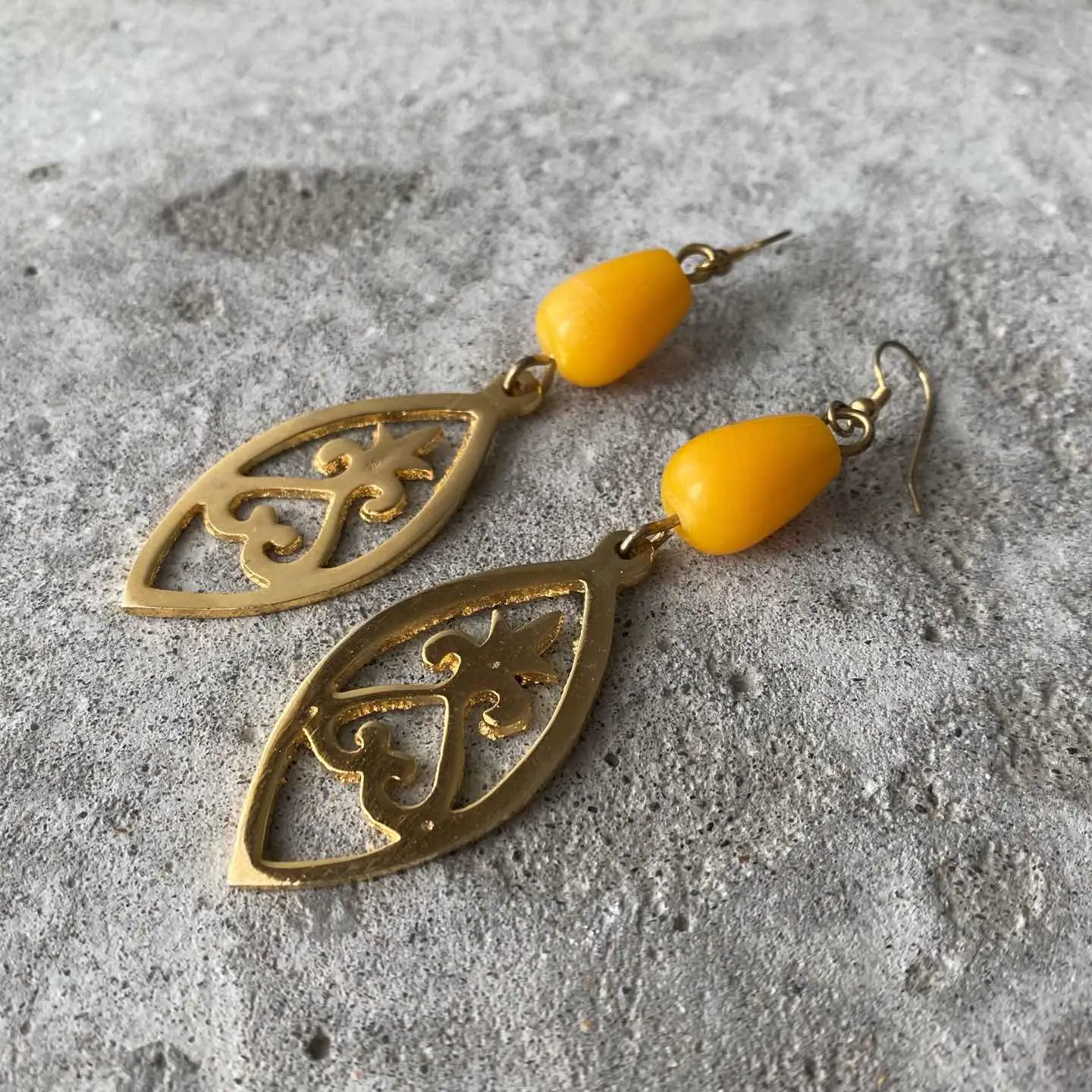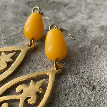 クラシカルな雰囲気のUSAヴィンテージピアス。イエローのビーズと大きなメタルパーツがマッチした魅力的なデザイン。大ぶりで存在感がありスタイリングのアクセントに。お顔周りを明るい雰囲気にしてくれます。 □Materials メタル(ゴールドメッキ)、プラスチック □Size 約H9.5×W2.4㎝ □Condition【C】 画像の通りメタル部分に変色や剥がれ、多少のスレがみられます。中古品であることをご理解のうえお買い求めください。ご購入前に必ずショッピングガイドのご確認をお願いいたします。 【S】未使用 【A】未使用に近い 【B】やや使用感あり 【C】使用感あり Item No.2992