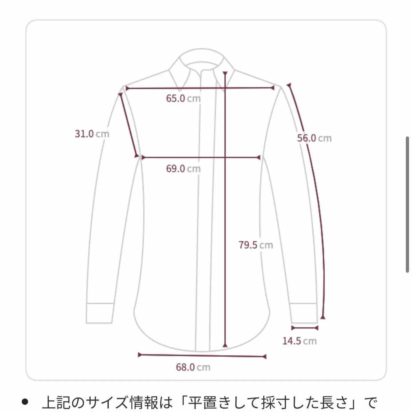 | 着丈 | 肩幅 | 身幅 | 袖丈 |