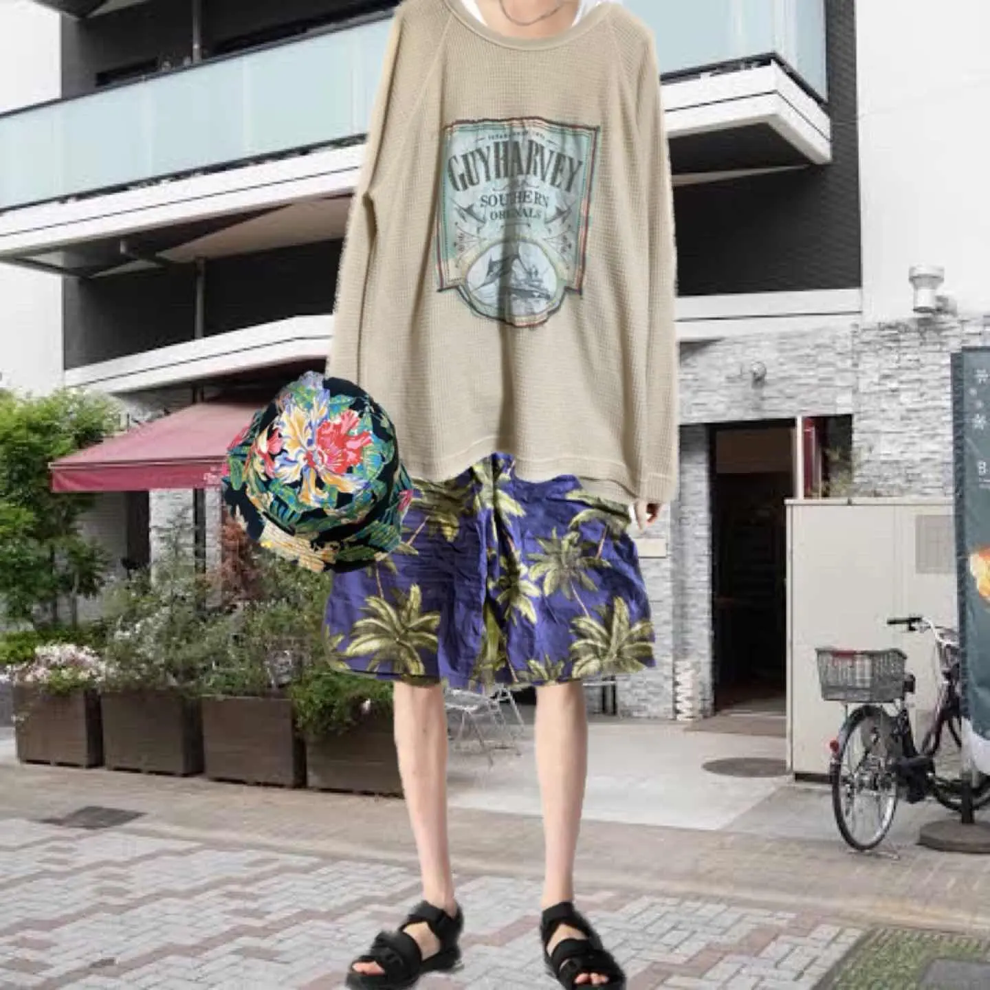 90s アメリカ製 ハワイimportKJC シャドーパーツツリーHP ハーフパンツの希少価値は、温暖化によりどんどんあがってます、 コーデ確認下さい!!今年季節感出したいがまだ暑いって方は、確実やってる、上長袖!! 下ハーパンスタイル!!です!! アメカジリメイクワッフルアメリカ製に 更にこの、アメリカ激レアあわせれば、かなりお洒落! 【概要↓】 【個性的なスタイルを実現!】 90年代のヴィンテージアイテムとして、アメリカ製の激レアパームツリーハーフパンツが入荷しました!特に注目すべきは、そのユニークなデザインと高品質な素材。パームツリーのプリントが夏らしさを演出し、カジュアルなコーディネートにもぴったりです。大人っぽく決まる。膝上スタイルなので、ガンガン履きこなしましょう^_^ アメリカ製は、どんどん市場から消えていき、希少価値が上がってきてますので、今お買い求め安い時にご購入するのをおすすめします、 ▷size◁ 平置き片面採寸【㎝表記】 表記size 調節可能↓ 【※ウエストのみ、メジャーで一周採寸】 ウエスト60㎝から90 ㎝まで対応、 股上27 股下22 モデル170㎝/普通体型 ▷material◁ 着心地良しのコットン ゴワゴワタイプではなく、サラサラなのに圧倒的タフなハワイマテリアル ▷condition◁ ダメージないし、良い ※入念にチェックは、しておりますが、vintage/usedの特性ご理解下さい ⚪︎検品、洗濯、検品3重チェックしてます 安心してお買い求め下さい