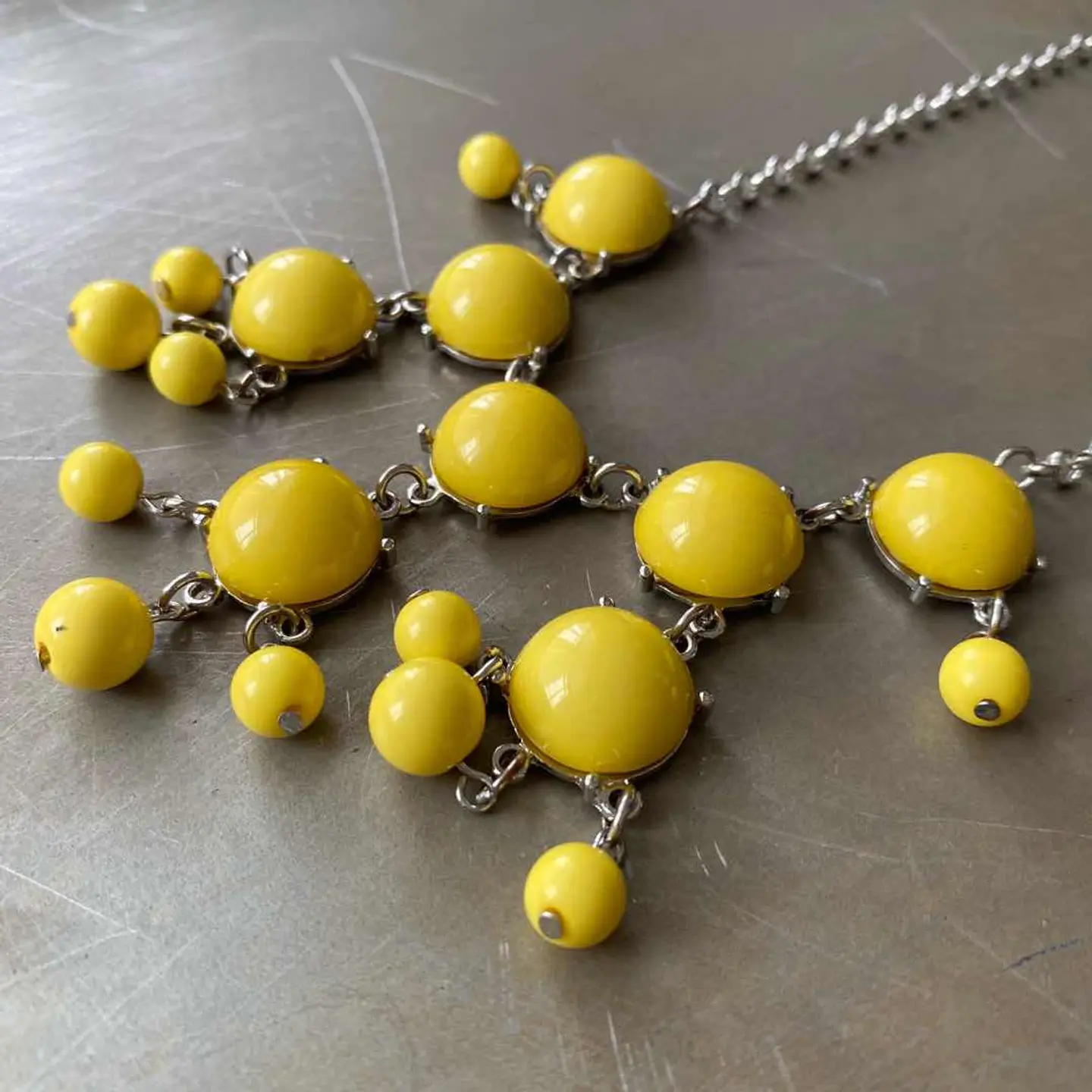Vintage 70s-80s USA retro yellow glass beads necklace