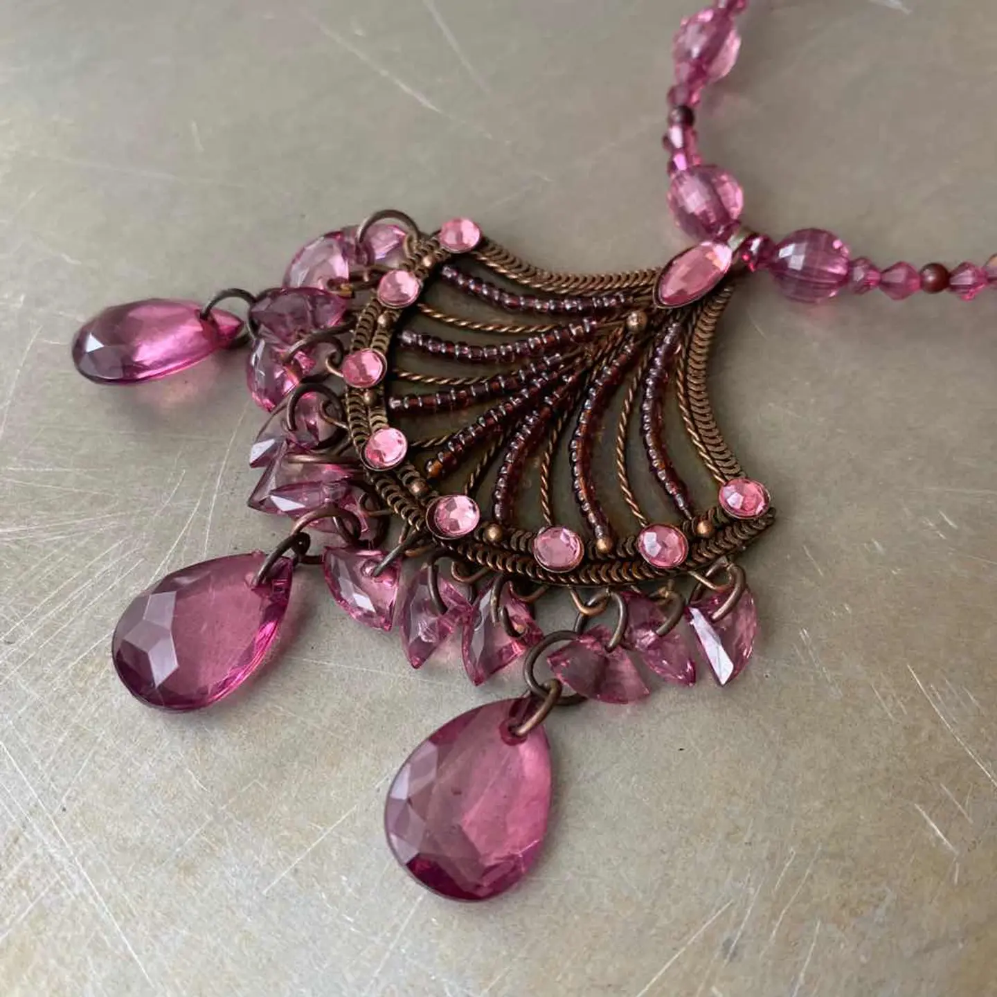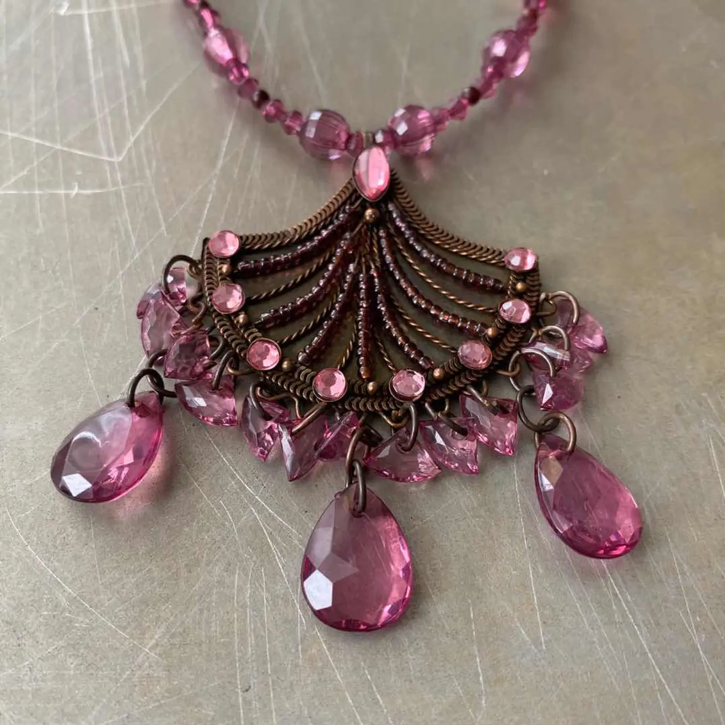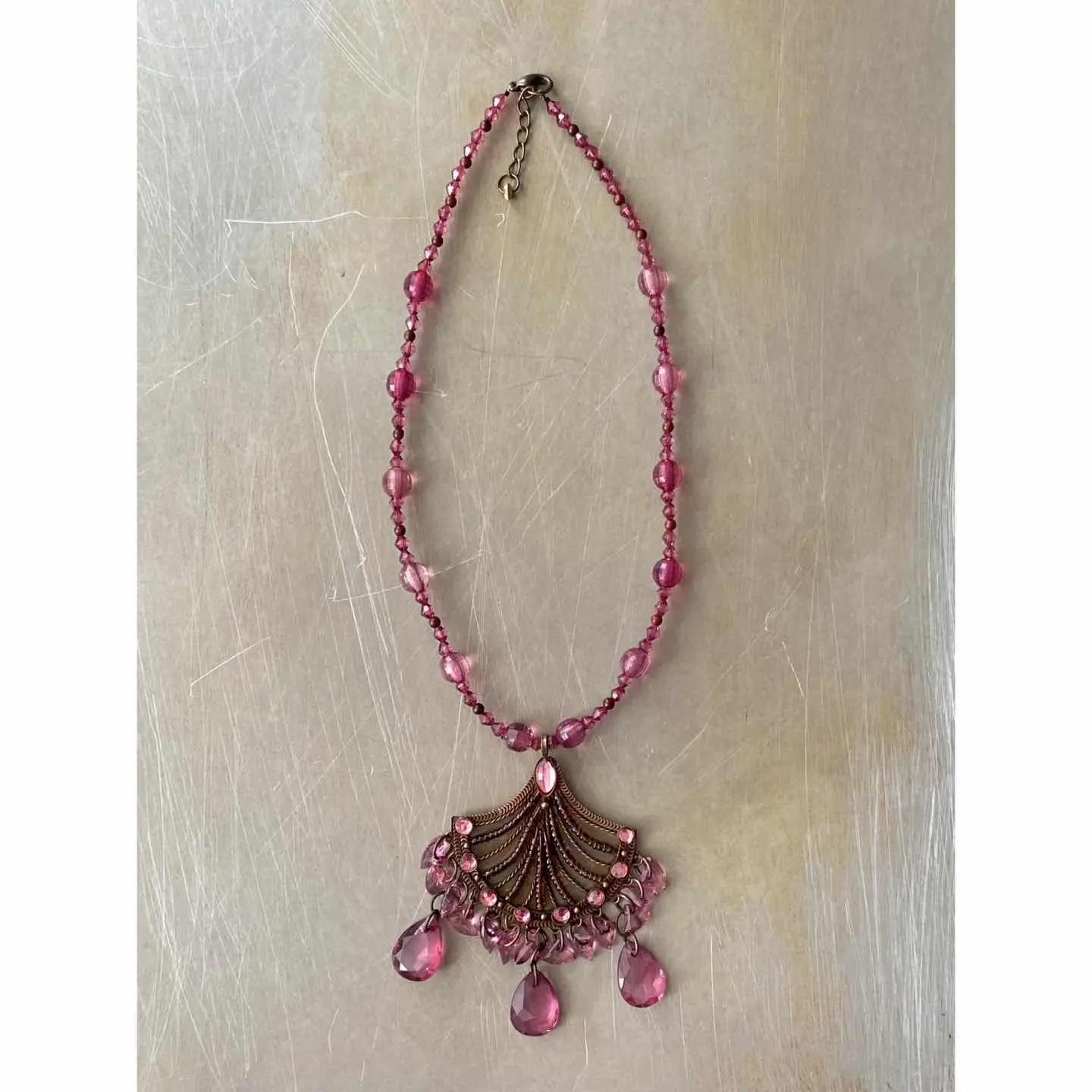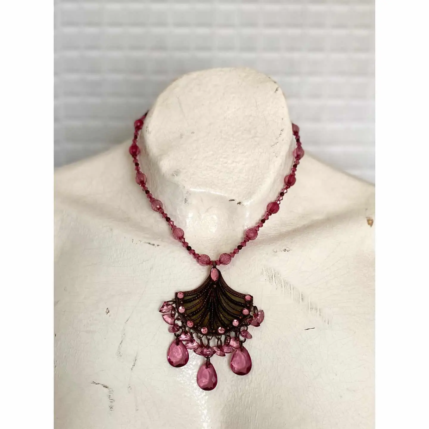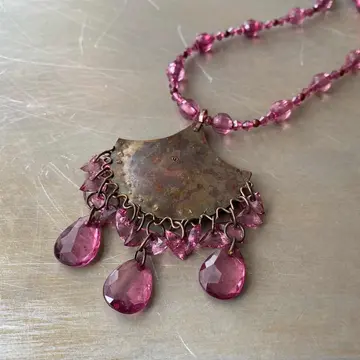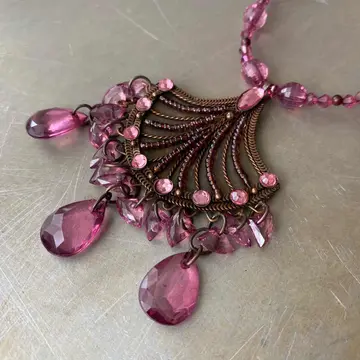 クラシカルな雰囲気のUSAヴィンテージネックレス。いくつものビジューが繊細に揺らめく大きなチャームが魅力的なデザイン。存在感がありお顔まわりを華やかに彩ってくれます。 □Materials メタル、プラスチックビーズ □Size 全長 約40㎝+アジャスター3㎝ ビーズ幅 約8㎜ チャーム 約H8×W6㎝ □Condition【C】 画像の通りメタル部分に変色やビジュー表面にはスレがれがみられます。古びた雰囲気がお好きな方におすすめです。中古品であることをご理解のうえお買い求めください。ご購入前にショッピングガイドのご確認をお願いいたします。 【S】未使用 【A】未使用に近い 【B】やや使用感あり 【C】使用感あり Item No.3268