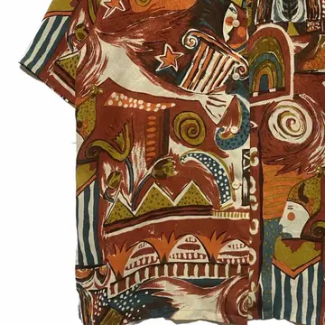 premiervintage 60s超美品オーダーメーカーキュビズムピカソシャツ 60年代のオーダーメイド専門のブランド、信じられないレベルの丁寧な作りで有名なブランドで、さらにこの時代のマテリアルじゃないと出せないキュビズムアートです。 キュビズムアートとは有名なピカソの絵の技法の事、古着好きにはかなりたまらない激レア商品のため、市場になかな出回りません さらにそれがオーダーメイドブランドだったらどうなります?あなただけの1着は確定です。 柄シャツは確実にヴィンテージを買った方が誰とも被りませんのでかなりお勧めです さらに、程良いサイジングがコーディネートのように、アメカジにも 1950スタイルにもマッチします。ぜひこの機会にご購入ください。 ▷color◁ 総柄写真参照テラコッタに属します、 ※お使いのブラウザにより、色が異なって見える場合がございます、 ▷size◁ 平置き片面採寸【㎝表記】 表記sizeXL 位 人によります。 着丈70 身幅60 肩幅54 袖丈30DSのため肩落ちから採寸 ※多少の誤差はご容赦下さい 【着用画像データ】 身長170㎝ Mジャストの私がゆったり着れます参考に!! ▷material◁ materialメーカーが作ったアンティークポリ 現代塗料ないので、作れないのと、このプリンのりは、現代の生地では、絶対できません、アンティークポリ自体が廃盤なんで ▷condition◁ 美品、これ、限定5着ない、 premierです、美品では絶対手にはいりません、当店限定です。 割引は、自己紹介にらあります、コメント無視する方には、絶対譲りません、