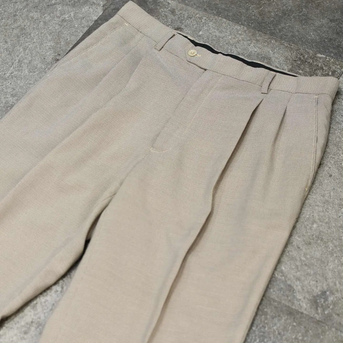 古着 ツイード ネップ タックパンツ スラックス ウールパンツ ブラウン 茶色