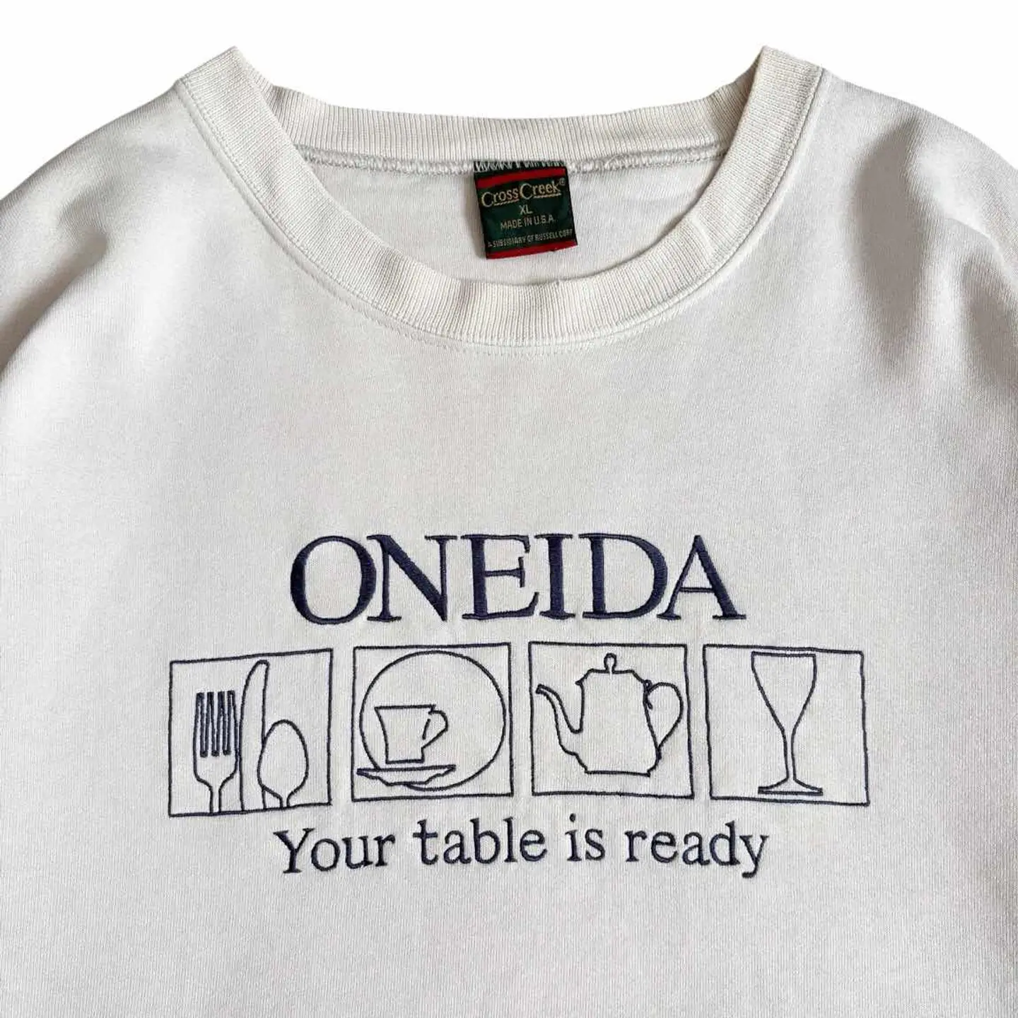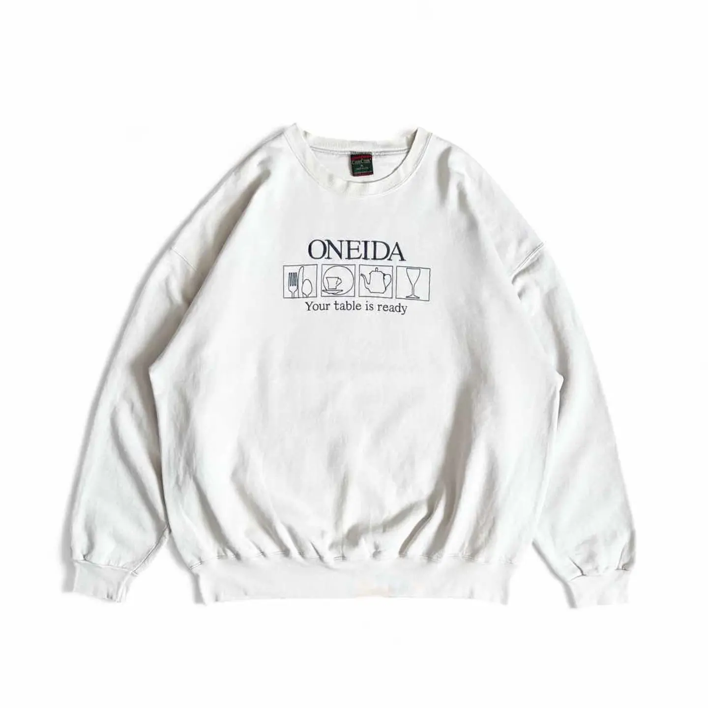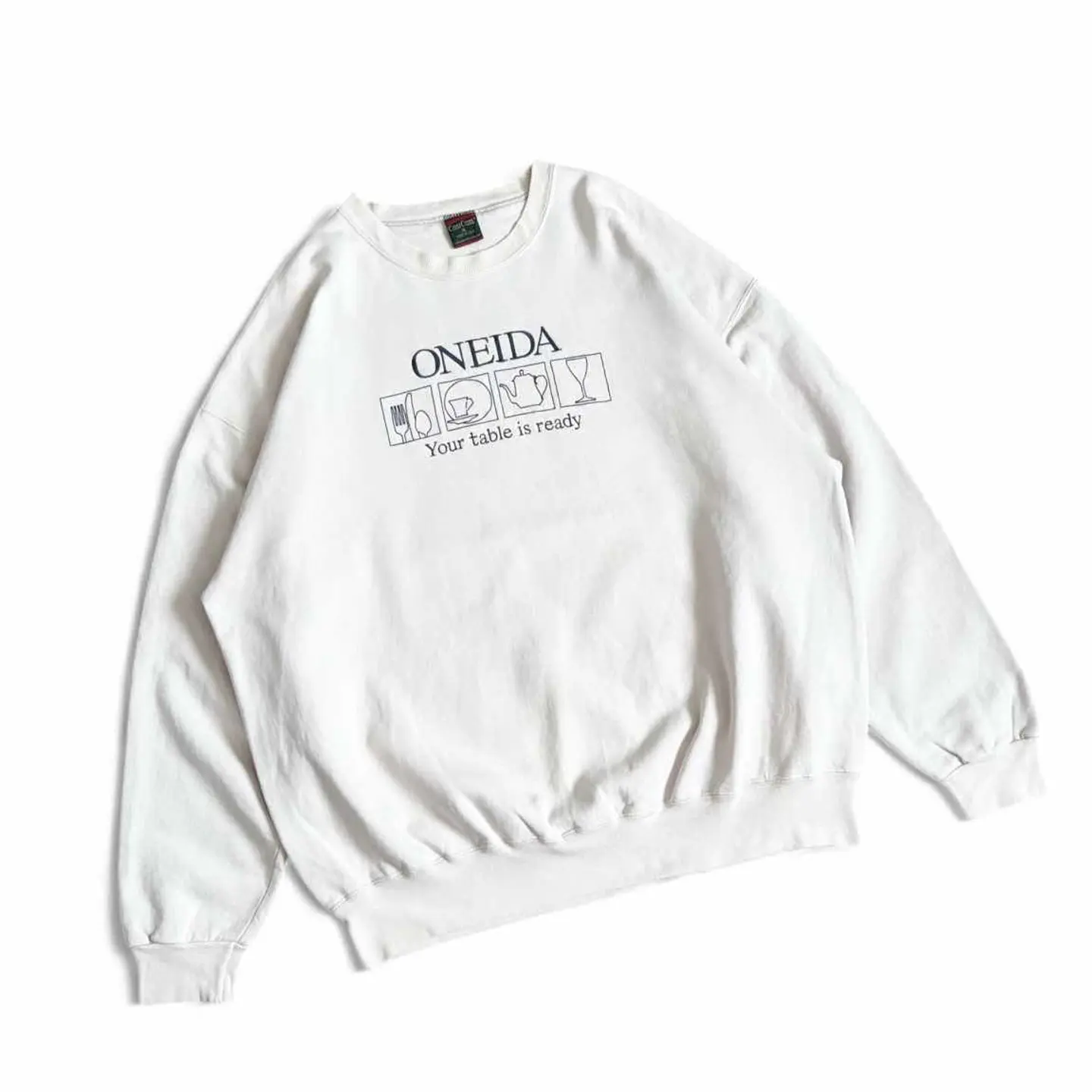 ○商品説明 90s USA製 CrossCreek 可愛らしい一枚になります。 Your table is ready "テーブルの準備ができました。" ビビッときた方は是非。 ○サイズ 表記 XL 平置き ・肩幅68cm ・身幅67cm ・袖丈59cm ・着丈72cm ○商品の状態 B A:使用感がほとんどなく、汚れやシミもなし B:多少使用感はあるが、汚れやシミも少ない C:使用感があり、汚れやシミがある D:使用感があり、大きな汚れや破れあり ○色 クリーム #90s#USA製#CrossCreek#スウェット