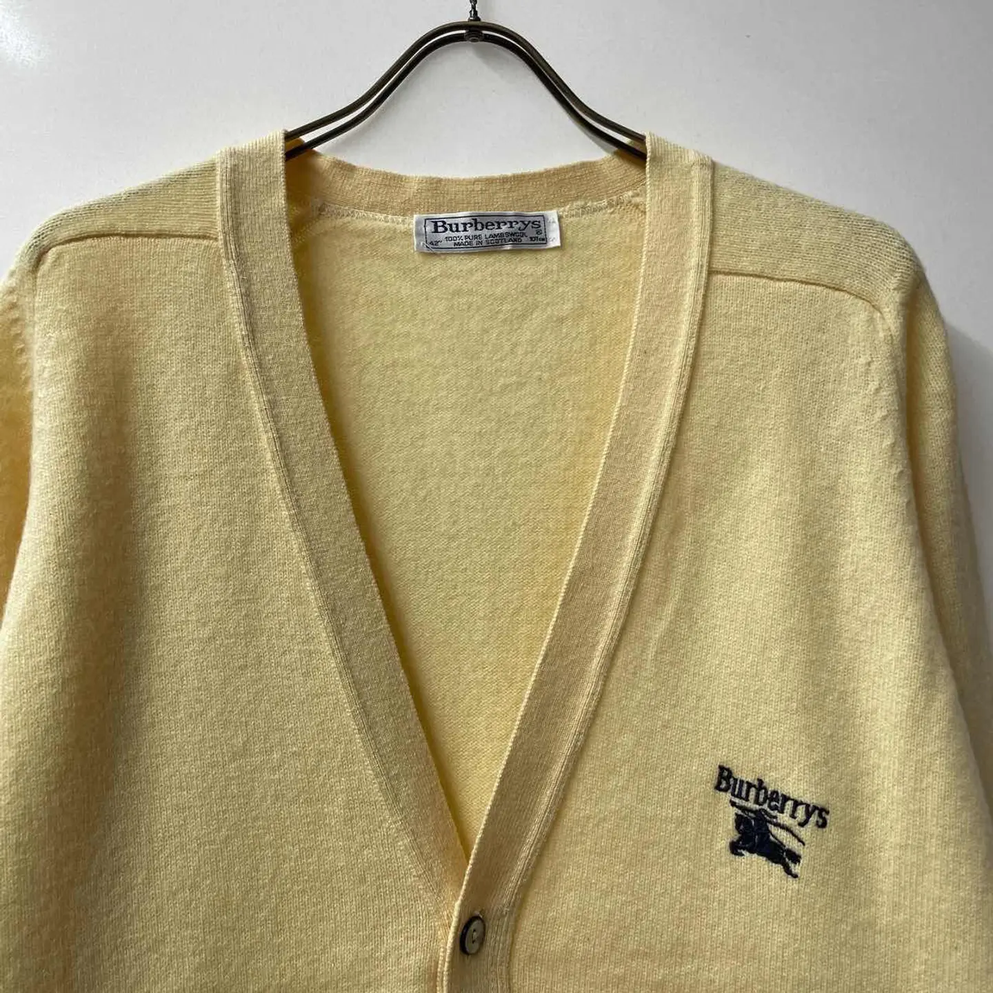 【サイズ表記】 42 【サイズ(cm)】 肩幅ラグランスリーブ 袖丈ラグランスリーブ 裄丈82 袖口(平置)8 腕周(平置)29 着丈69 身幅54 【商品詳細】 生産国 :Scotland ブランド:burberrys カラー :レモンイエロー 素材 :100%pure lambswool 【コンディション】 B 【S】新品、展示品、デッドストックなど。 【A】若干の使用感はあるが、状態の良いUESD。 【B】使用感はあるが、目立つダメージや大きな汚れはない。 【C】使用感と部分的に少しダメージや汚れ有。 【D】使用感と部分的に大きなダメージや汚れ有。 ※古着故の多少の着用感うや細かい汚れがございます。古着に理解のない方のご購入はお控えください。また、撮影状況により、色味に若干の差異が生ずることがございます。 【その他】 こちらの商品は古着商品となります。全て1点のみの在庫のご用意となりますのでご注意ください。#vintage #古着 #90s