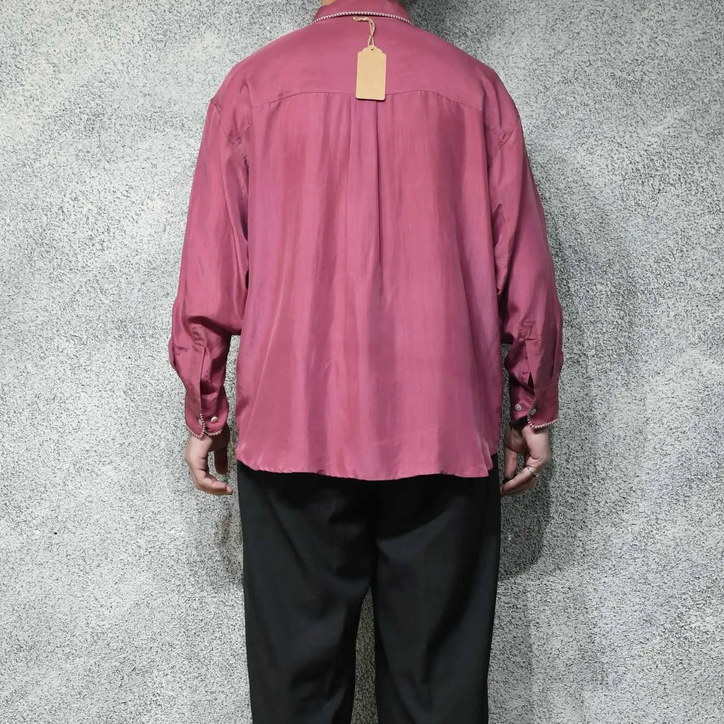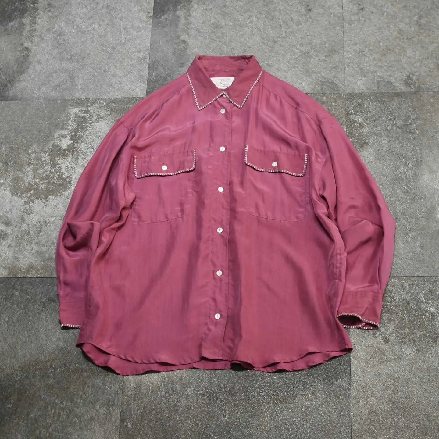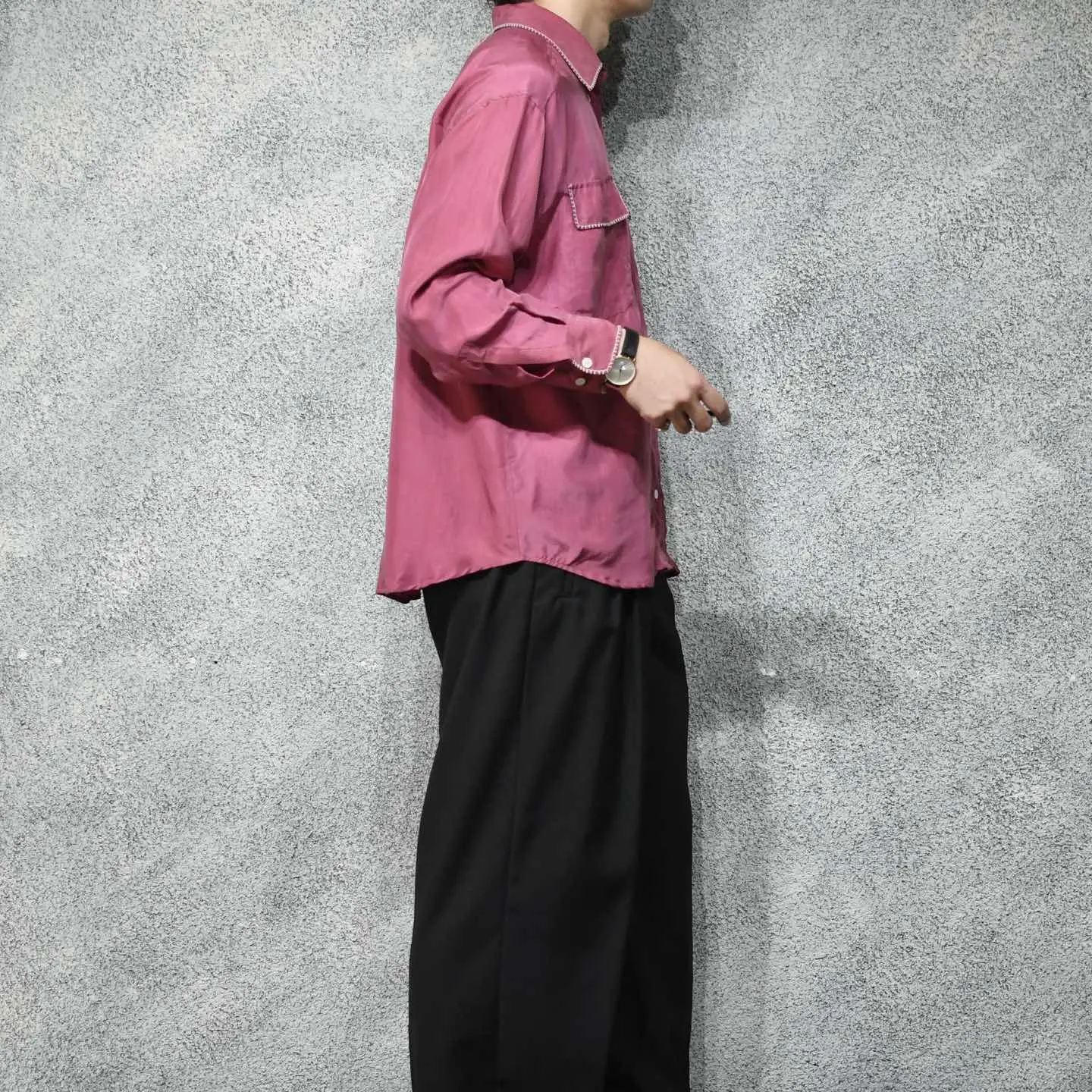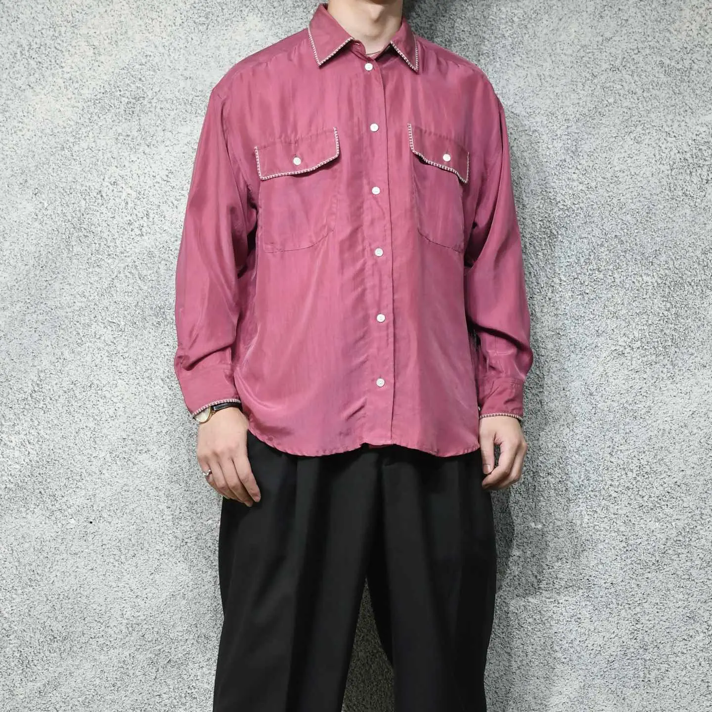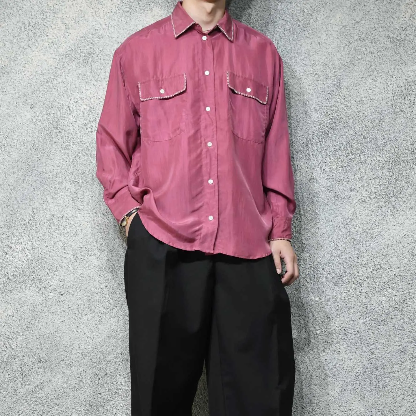 SIZE:- 着丈73cm 肩幅57cm 身幅65cm 袖丈54cm fabric/質感よりsilk 着用画像 177cm/64kg 襟やポケットの縁、そして袖に入るステッチは、 どこかヴィンテージライクで惹かれました。 メンズでも袖を通しやすい、フェードしたような ピンク色で、さらにシルクの上品な雰囲気から スラックスなどと一緒に、身に纏いたいなと。 柄シャツはちょっと着にくさを感じるけど、 単色シャツは物足りない、 そんな方にもおすすめしたい、程よい個性を 持ち合わせた逸品です。 テーラードジャケットなどの中に仕込んでも◎ ※撮影状況により、実物と多少色が異なる場合が ございます。 ※古着を取り扱っているため、気づかない汚れや ほつれ等がある場合がございます。 ※サイズは着用感で選んでおり、 表記サイズではございません。 表記サイズは説明欄の最初に記載しております。 オーバーサイズ old vintage ヴィンテージ used 80's 90's アメリカ古着 ユーロ古着 メンズ レディース POLO RALPH LAUREN OLD GAP Eddie Bauer LANDS' END ランズエンド LLBean エルエルビーン オールドギャップ エディーバウアー ラルフローレン ブルックスブラザーズ Brooks Brothers ピンク などがお好きな方 #vintage #オーバーサイズ #old #used #90s #80s #古着 #ヴィンテージ #アメリカ古着 #ユーロ古着 #LLBean #エルエルビーン #EddieBauer #エディーバウアー #oldgap #オールドギャップ #LANDSEND #ランズエンド #NAUTICA #ノーティカ #ラルフローレン #POLORALPHLAUREN #ブルックスブラザーズ #BrooksBrothers #シルクシャツ #長袖シャツ #シャツ #デザインシャツ