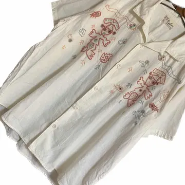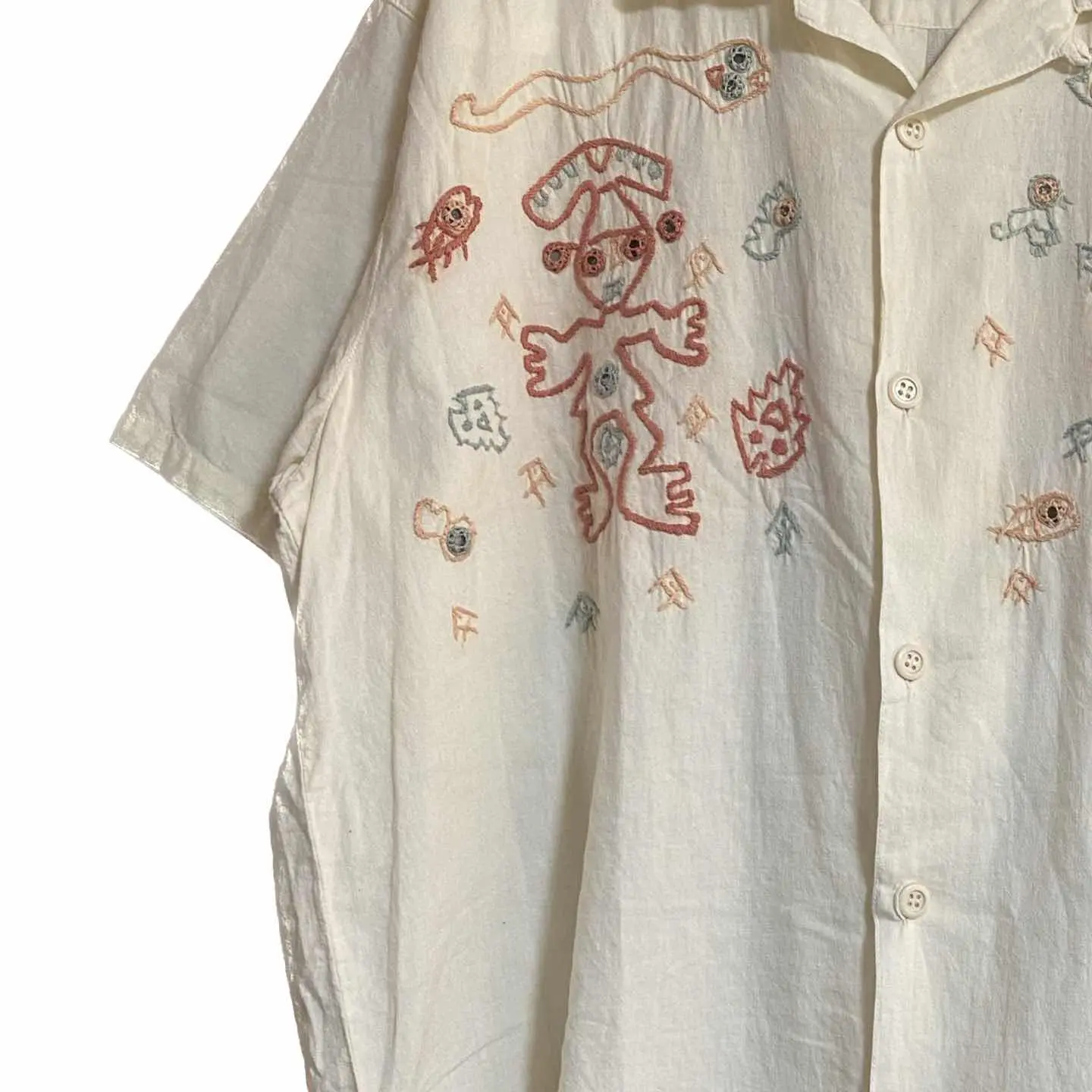 70s R.B.U シャツ リメイク猫目ボタン オルテガ 刺繍