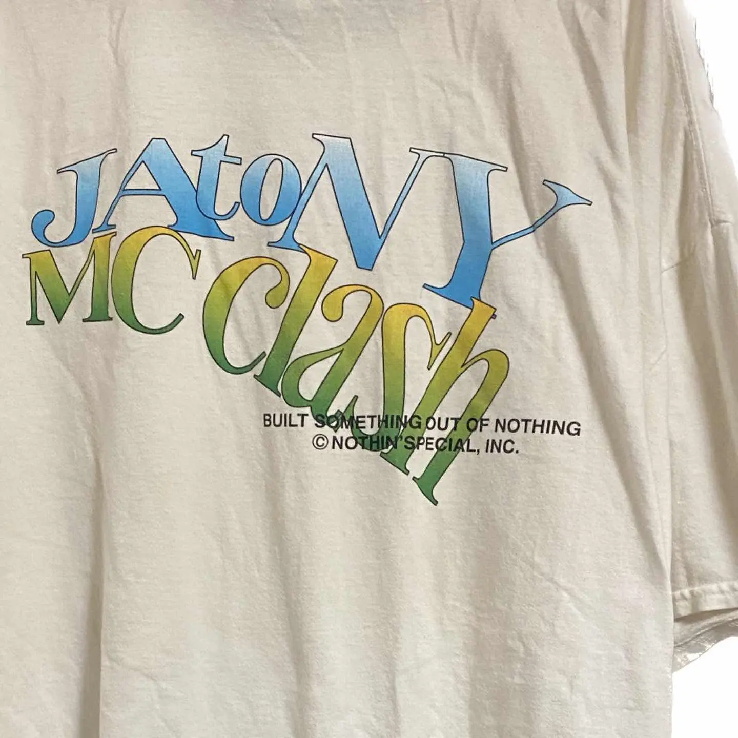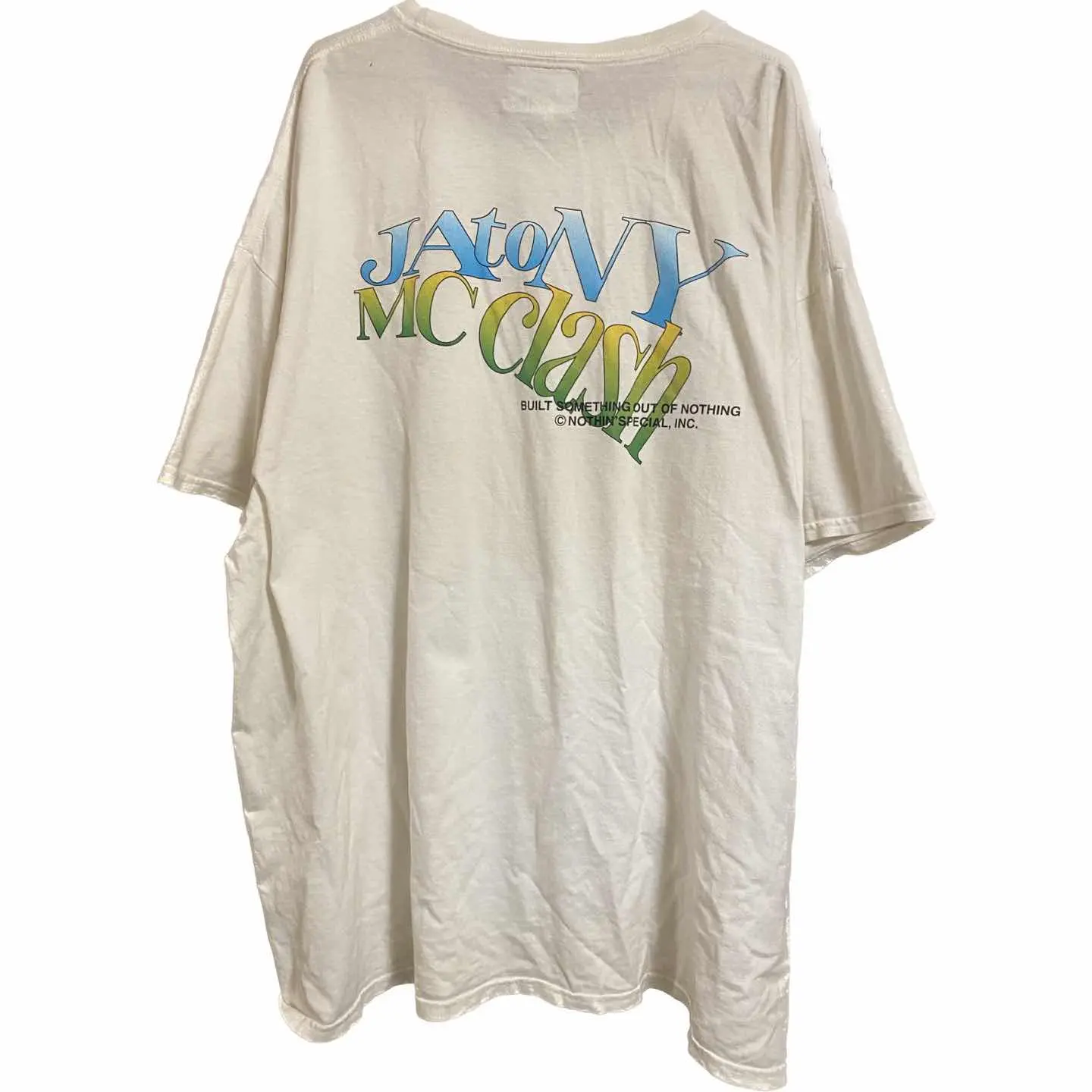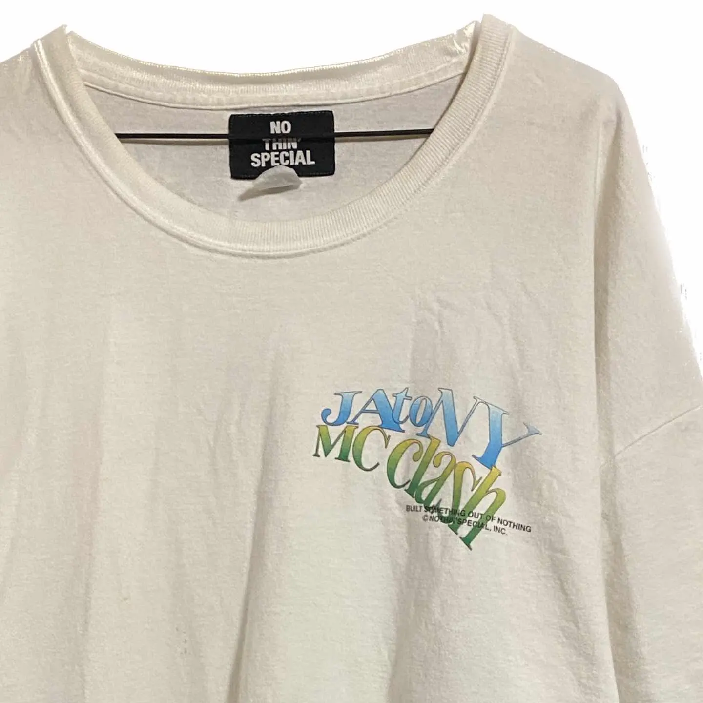 NOTHIN' SPECIAL/ナッシン スペシャル 1st 3タグ別注コラボT NOTHIN' SPECIAL/ナッシン スペシャル 2015年にNew Yorkにて設立したレーベル。NYの空気感を感じさせるモノづくりをコンセプトに、"Built Something Out of Nothing"と表現されている通り、何も無いところから楽しみを生み出してきたNYサブカルチャーからインスパイされたブランド の、NYコラボライン、希少アイテム、 1st 3タグを。岡山デニムヒッコリーと決め込んで フレイムスリーブスウェット、を仕込み アメカジ、ホッドロッド、ワーク、バイカー、ストリートをミックスしました。 単車乗ってる時バックプリントは。かなりお洒落なのと、インパクト拘り全てが、垣間見ます。 しかも。詳しい方は、一撃で、 おっ、NY別注こらぼ1stプリントだって、一目おかれることでしょう こだわりがあるファッションは、確実にかっこいいので、お試しあれ!! ※ラスト何度も言ってますが、こういう風な、重ね着はビックTシャツじゃないとできません。 最近ジャストも人気ありますが、僕はどっちも好きです。ただ流行ってるとか、抜きで、 こだわりがあるものを着るのが確実にかっこいいです、自分のスタンスでどんなものでも取り入れた方がコーディネートのレベルは上がります、 【カラー】ホワイト 【サイズ】XXXL表記 Fと思ってよいです 着丈83 身幅72 肩幅70DS 袖丈45 DSなんで、ハンガーかけ採寸 170センチMサイズです、私が来て ビックサイズです。かなり落ち着くサイジングですね。インナーフレイムスリーブスウェットXLサイジング参考に、 【マテリアル】 コットン 【状態】 レギュラー古着、誤解ないようにお伝えしときますが当店は、とことん状態にこだわっていますので、巷の レギュラー古着よりは、確実に2倍ぐらいは状態ですね、