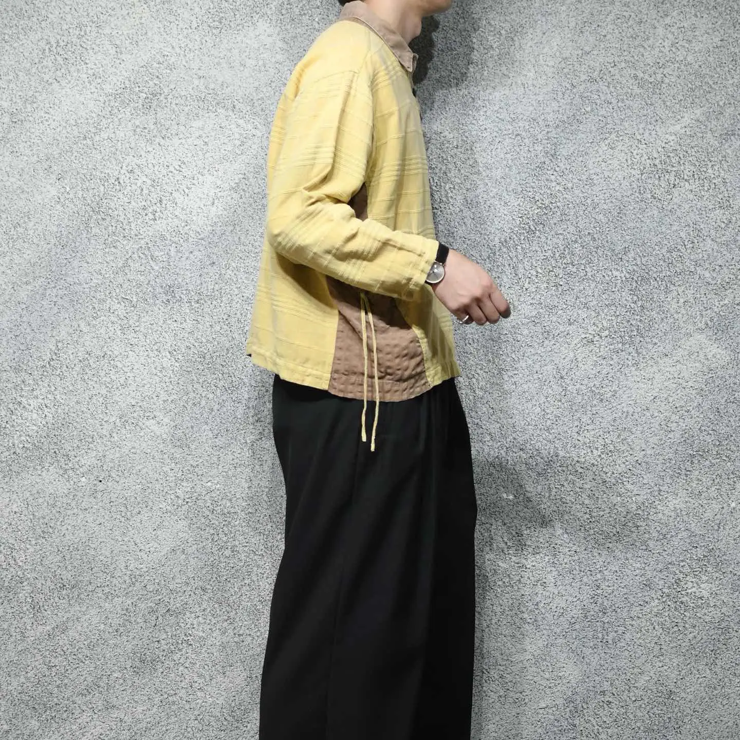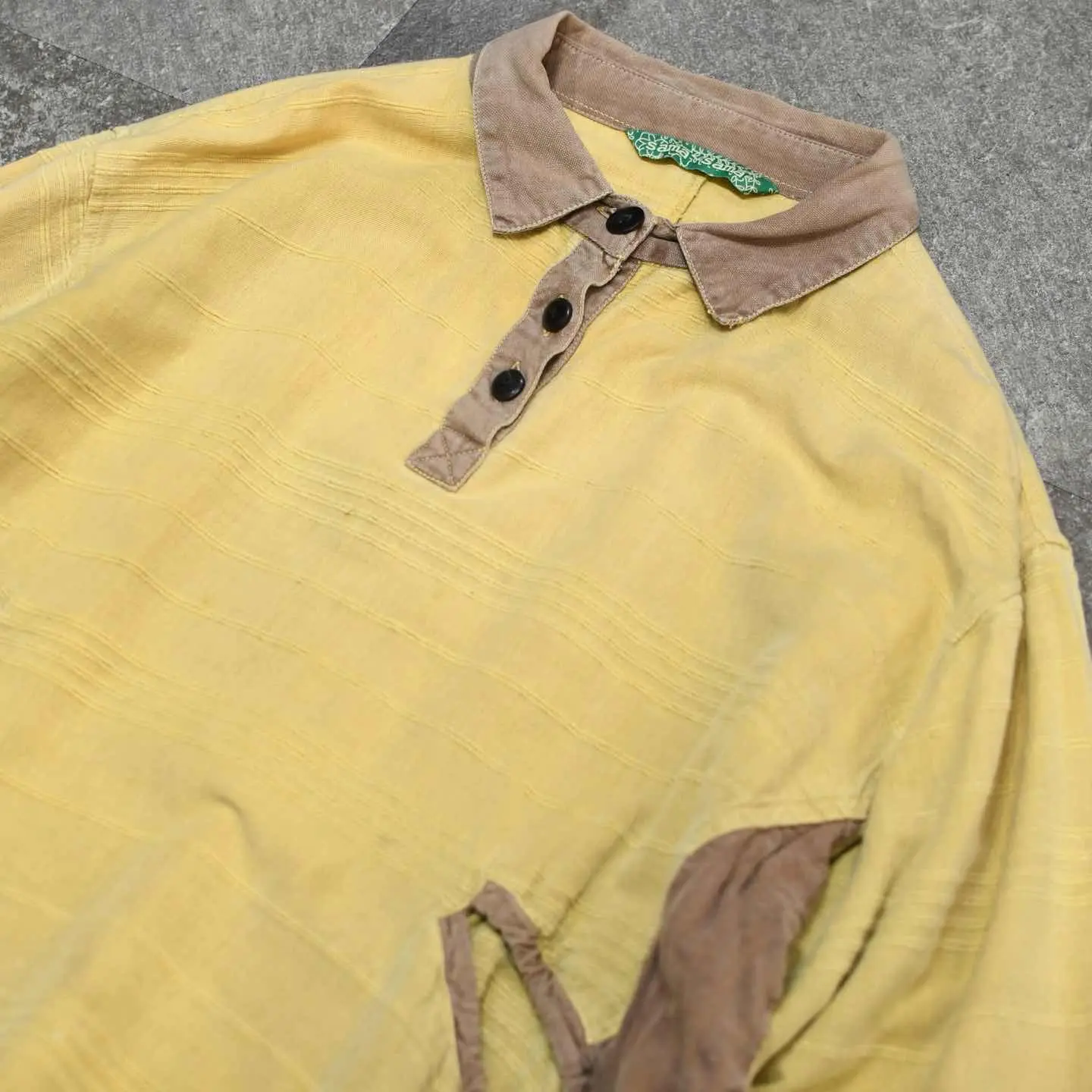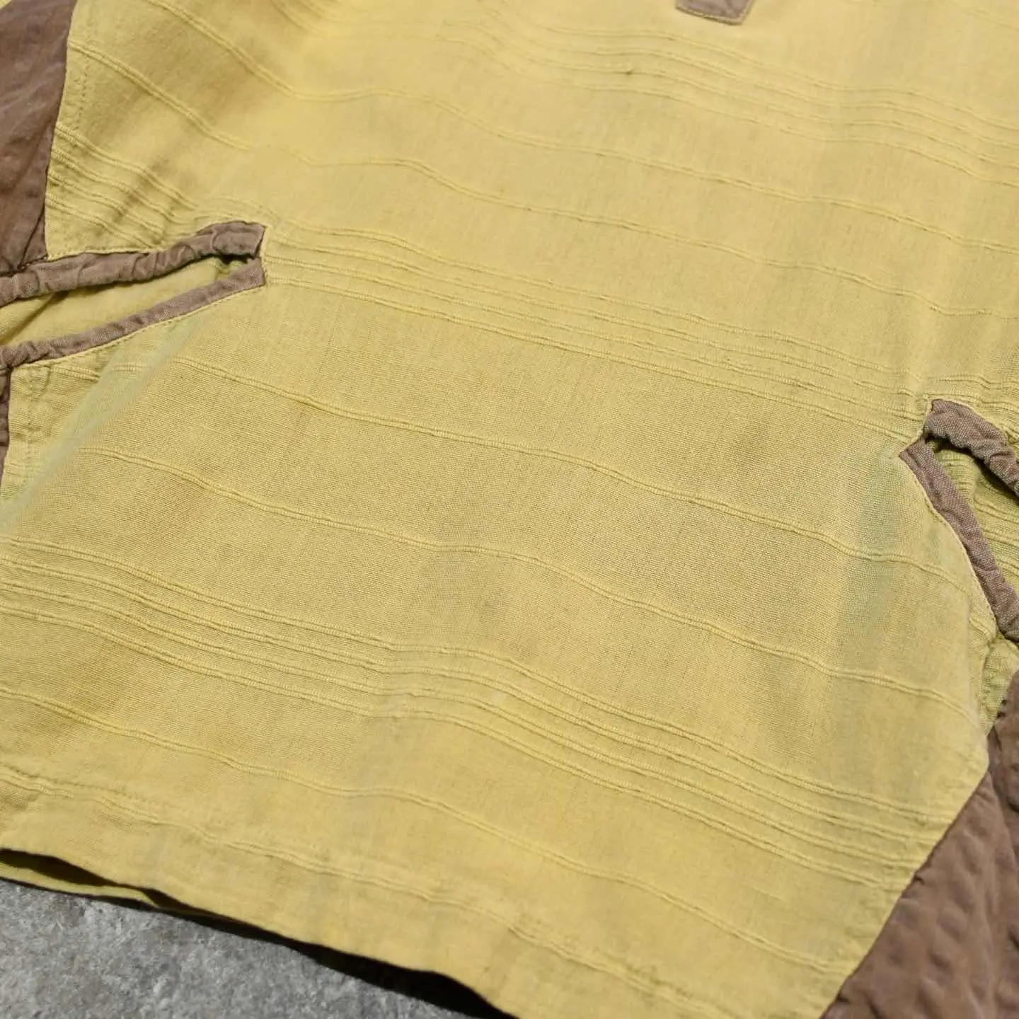SIZE:- 着丈62cm 肩幅57cm 身幅66cm 袖丈53cm fabric/質感よりcotton 着用画像 177cm/64kg ざっくりとした粗織りのコットン生地で、 風通しの良いプルオーバーシャツ。 何故だかポケットの口が 絞れる仕様になっているのも面白いですし、 ゆったりとした身幅に対して 長過ぎない丈感という 気の利いたシルエットなのも◎ 何処かエスニック調な雰囲気を纏いつつも、 其れに寄り過ぎず、カジュアルに落とし込める 逸品です。 ※トップボタン付け替え、 フロントに軽度の汚れあり。 ※撮影状況により、実物と多少色が異なる場合が ございます。 ※古着を取り扱っているため、気づかない汚れや ほつれ等がある場合がございます。 ※サイズは着用感で選んでおり、 表記サイズではございません。 表記サイズは説明欄の最初に記載しております。 古着 オーバーサイズ old vintage ヴィンテージ used 80's 90's アメリカ古着 ユーロ古着 POLO RALPH LAUREN Eddie Bauer OLD GAP LANDS' END ランズエンド LLBean エルエルビーン オールドギャップ エディーバウアー ラルフローレン ブルックスブラザーズ Brooks Brothers 長袖シャツ シャツ ポロシャツ 民族 などがお好きな方 #vintage #オーバーサイズ #old #used #90s #80s #古着 #ヴィンテージ #LLBean #エルエルビーン #EddieBauer #エディーバウアー #oldgap #オールドギャップ #LANDSEND #ランズエンド #NAUTICA #ノーティカ #ラルフローレン #POLORALPHLAUREN #ブルックスブラザーズ #BrooksBrothers #デザインシャツ #プルオーバー #ポロシャツ #シャツ #エスニック #民族