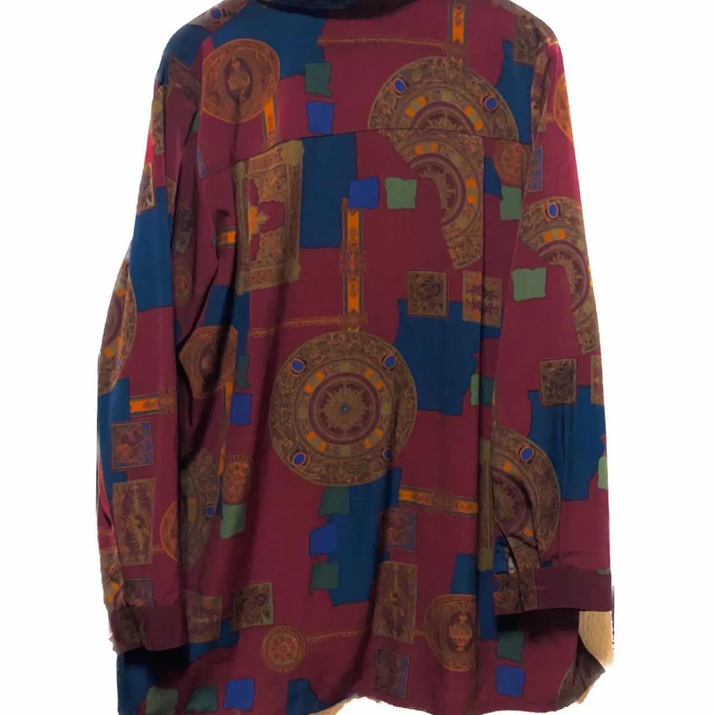 激レア極上品1981年vintage ベロタグ ヨーロピアン幾何学シャツ まずはコーディネートをご覧ください このサイズ感 おしゃれすぎます。タックインでも タックアウトでも決まる それは80年代に多いゴールデンラインといわれる着丈!! ワークパンツにドライボーンズ意識した、コーディネートにして仕上げました さらに デッドストックを仕入れたので新品同様です!! クールすぎるヨーロピアンの スペースうまく使った 幾何学柄が、柄シャツ、好きな人なら即決間違いないのですが、 苦手な方も ぜひ試して欲しいです 幾何学ヨーロピアン最高級の柄なので ぜひこの機会にお試しください ラストに、1番の、アピールポイント写真に載せますがno56354 81とすぐ、わかるシリアルとも言えるようなナンバーは、希少価値が高いので、激レアさんもぜひ、この機会によろしくお願いします、 ▷color◁ ダークネスボルド クールすぎる。80年代、独特の柄 ※ブラウザで異なる場合ありますがかなり実物には、近づけてます、 ▷size◁ 平置き片面採寸【㎝表記】 表記size M表記だが、Lくらいだから、Lとします、 着丈/75 身幅/62 ←↓クリアならXLのかたもいけます、 肩幅/50 袖丈 /60 DSは袖はハンガー採寸 ※多少の誤差は理解下さい 170/Mジャスト体型の私が着て、✔️参考に ジャスト オーバーサイズ✔️ ビックサイズ 【素材】 アンティークポリ 【状態】 新品同様、ストック引き受けたんで ^_^ 検品、洗濯、検品で、3回チェックして発送しますので、ご安心して、お買い求め下さい!!