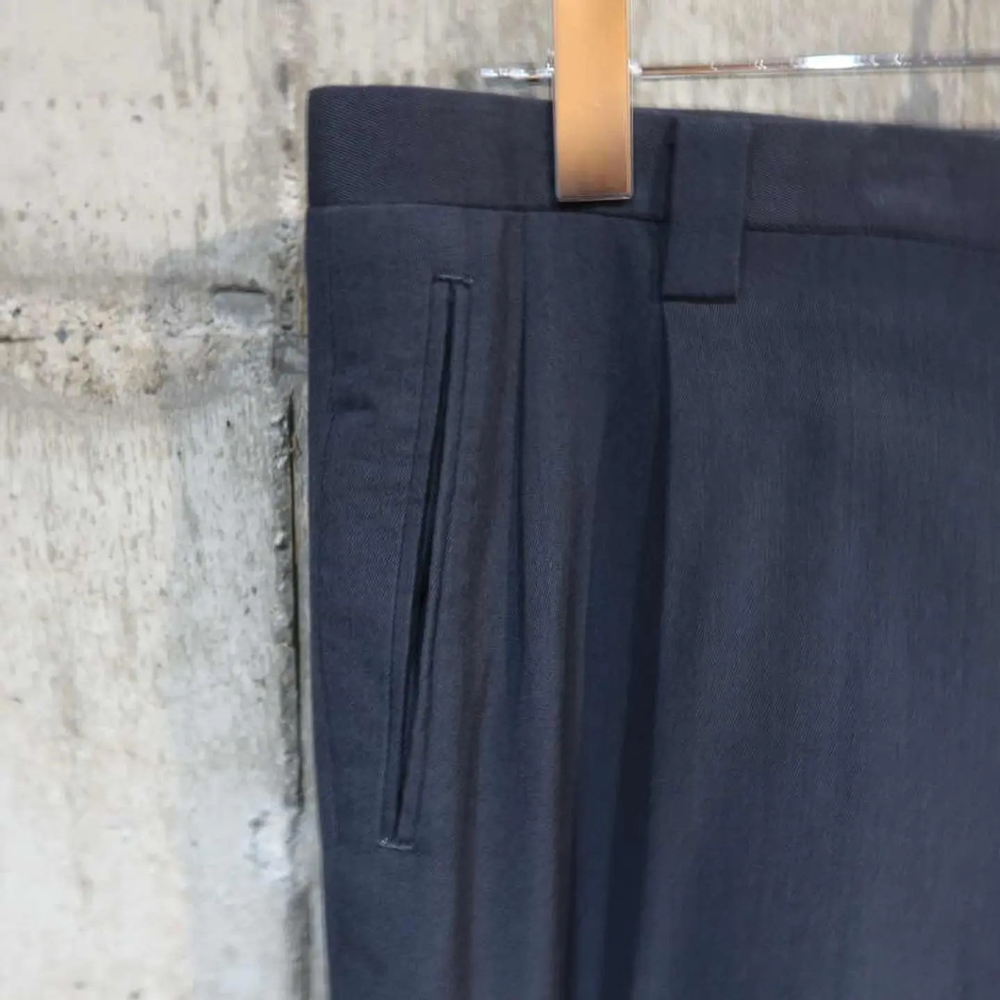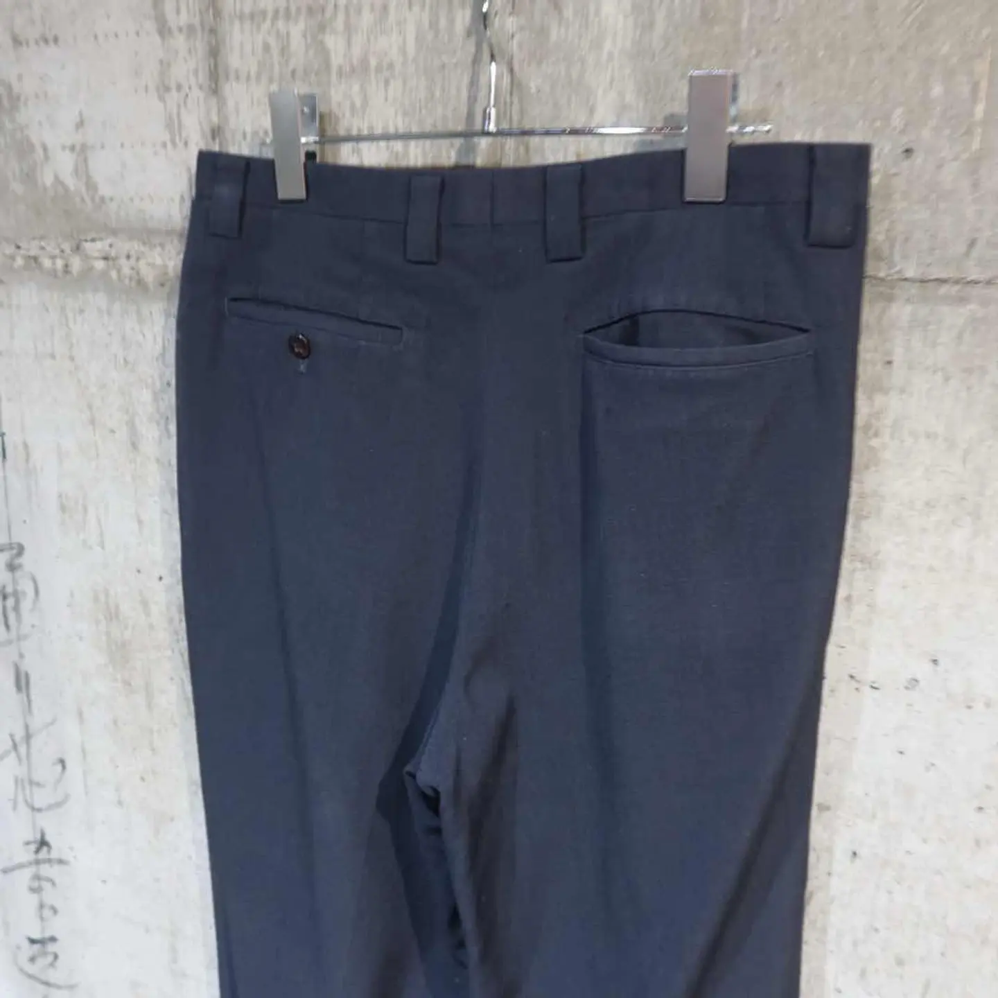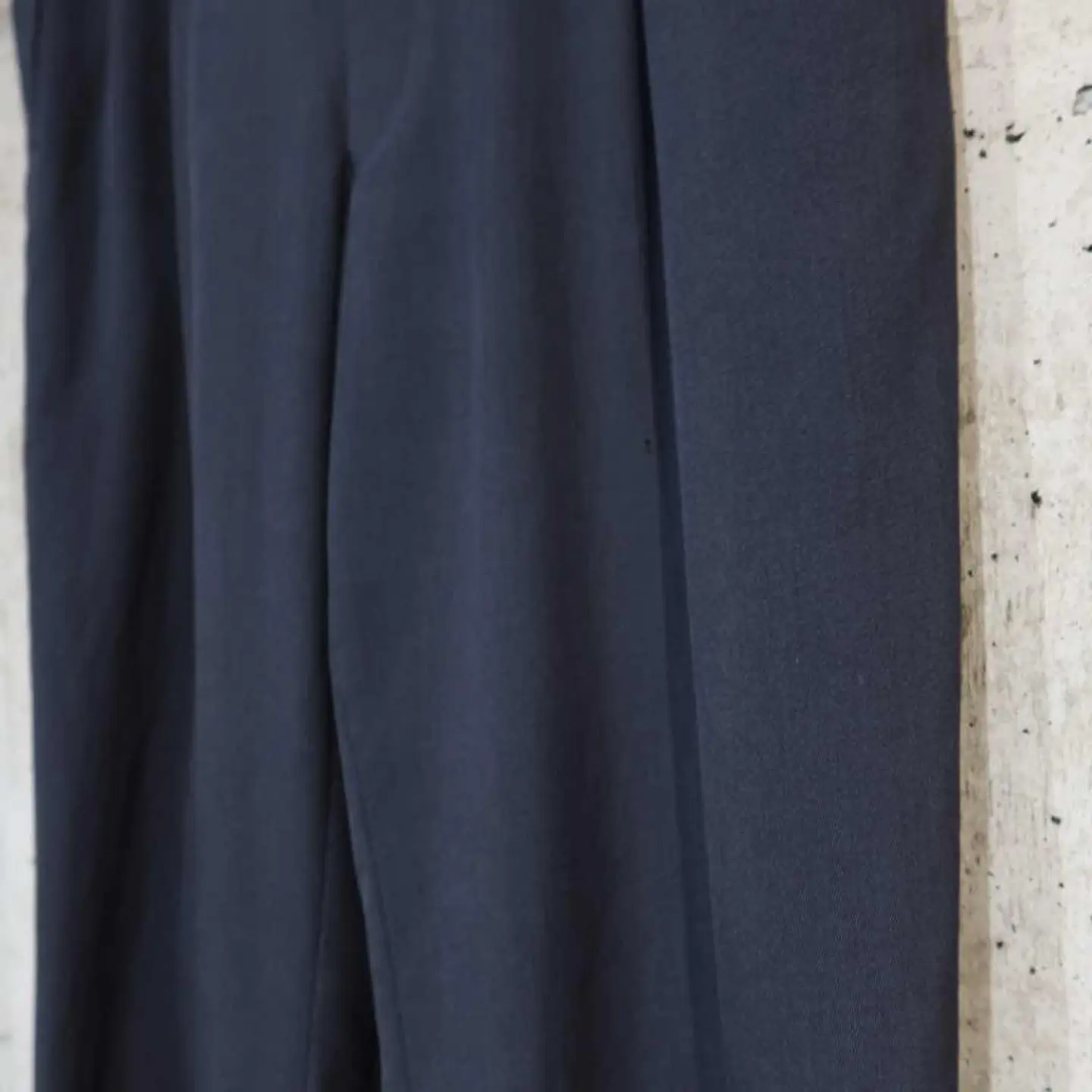 【サイズ】 股上 : 29 股下 : 67 ウエスト幅 : 41 わたり幅 : 30 裾幅 : 22 総丈 : 92 【素材】 ウール コットン 【コンディション】 小穴あり 4枚目をご覧ください #古着 #スラックス #秋物 #ネイビー
