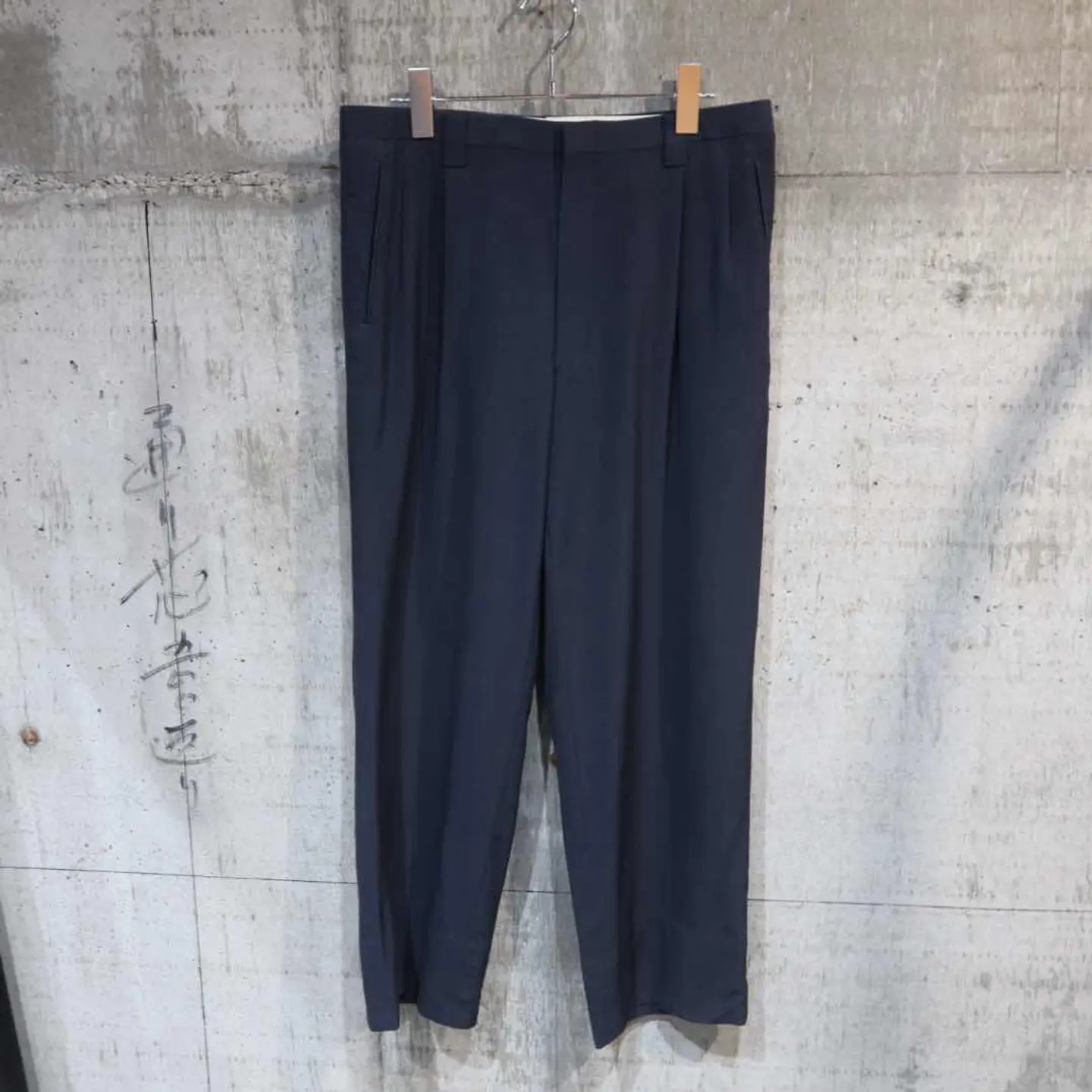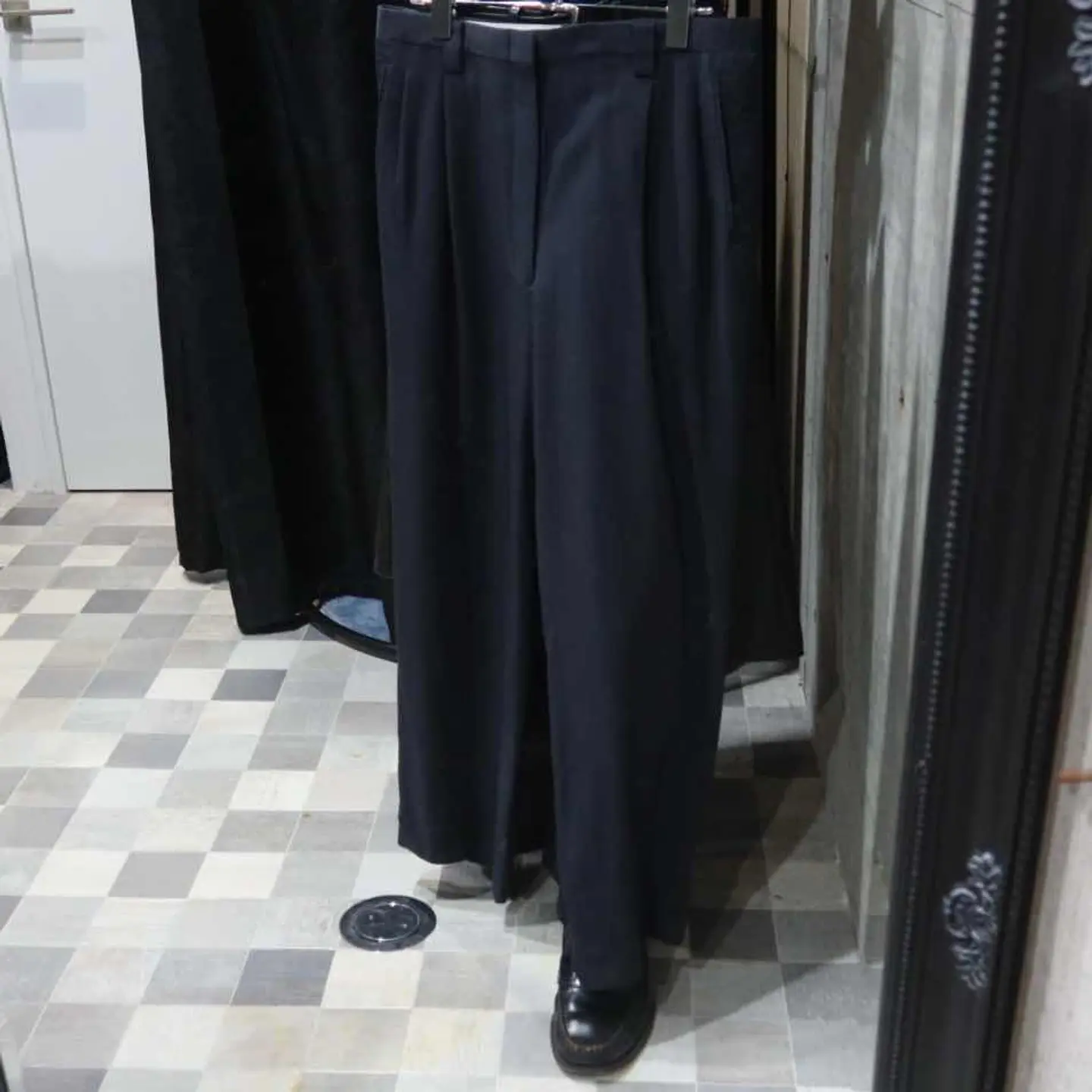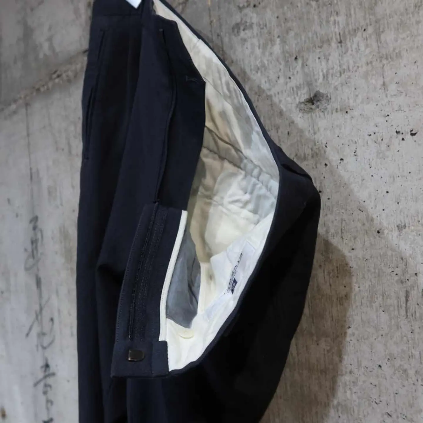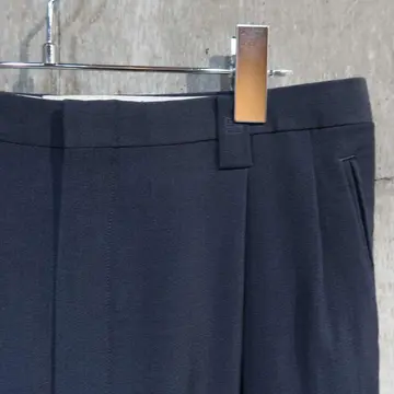 【サイズ】 股上 : 29 股下 : 67 ウエスト幅 : 41 わたり幅 : 30 裾幅 : 22 総丈 : 92 【素材】 ウール コットン 【コンディション】 小穴あり 4枚目をご覧ください #古着 #スラックス #秋物 #ネイビー